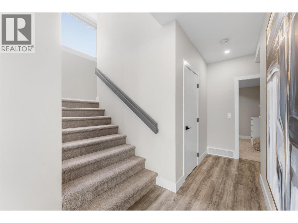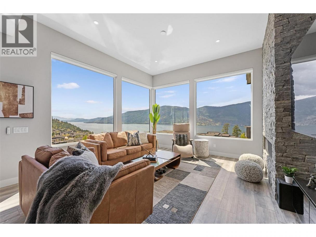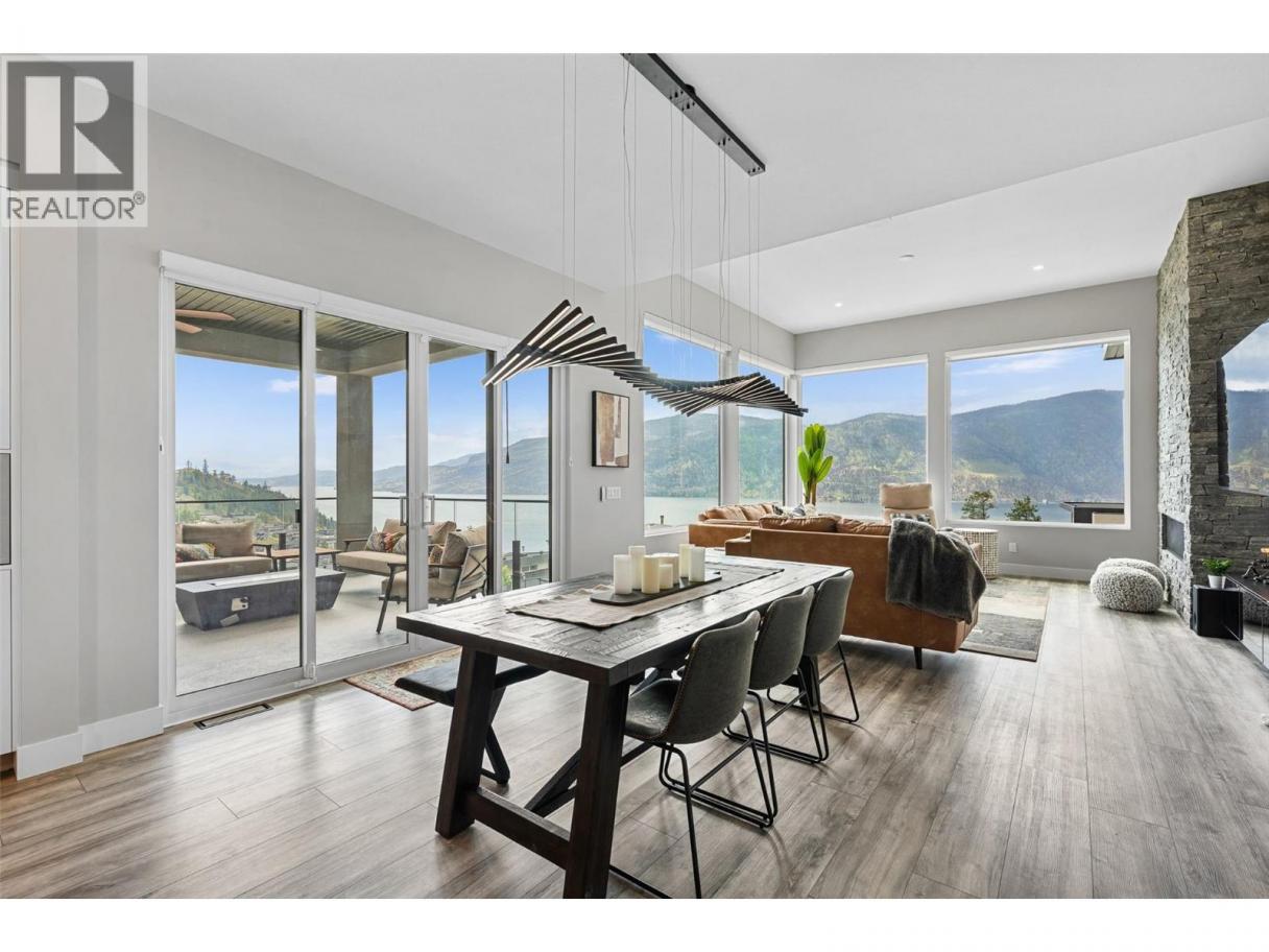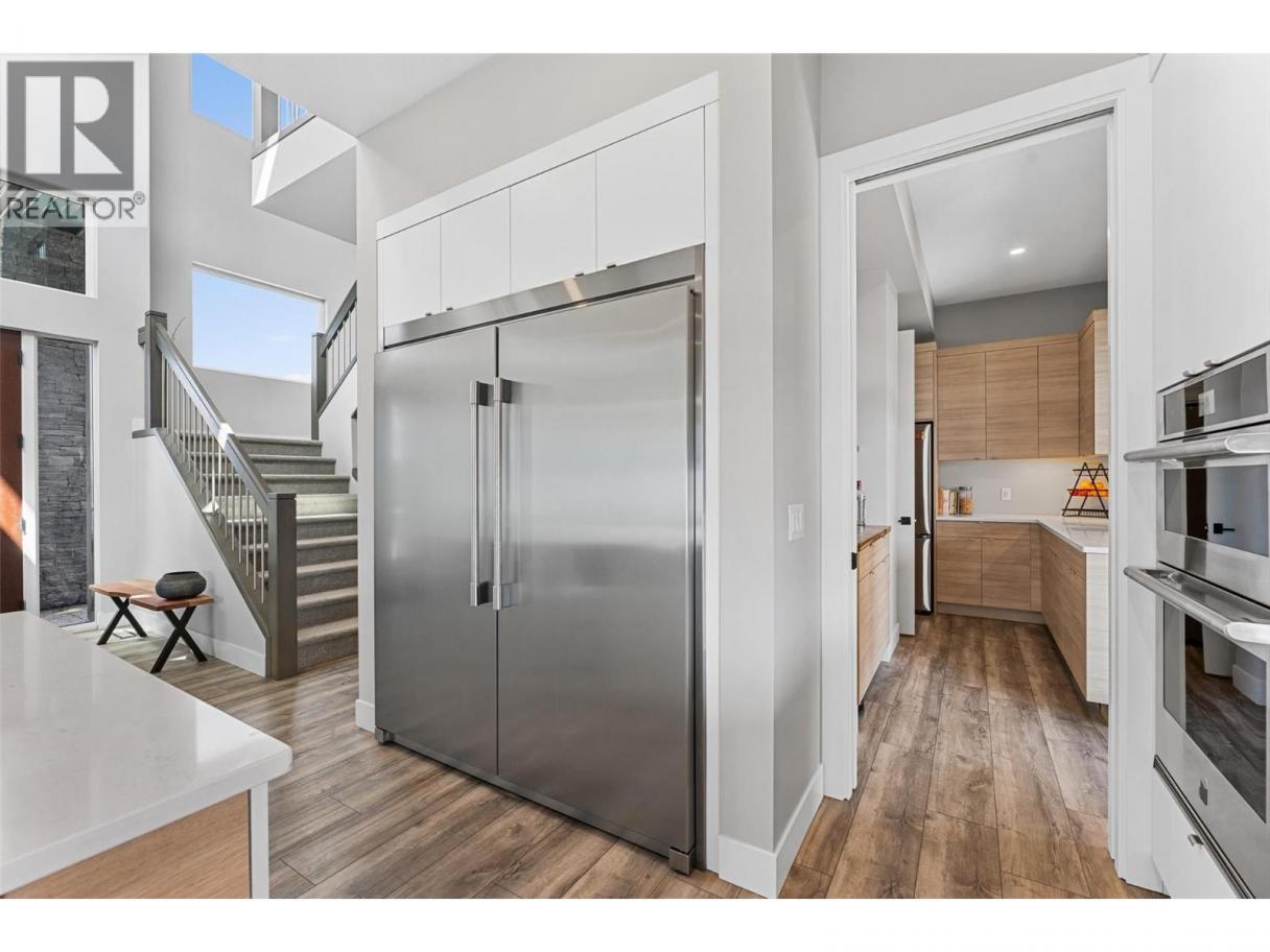 Gorgeous modern home in McKinley Beach where elevated Okanagan living meets thoughtful design & panoramic lake views. Situated on a rare 0.374-acre lot, this estate boasts a spacious family layout with resort-style amenities, expansive indoor-outdoor living, & a self-contained 2 bed/1 bath legal suite. The main level impresses with soaring ceilings, a chef’s kitchen featuring JennAir appliances, a massive island, & a seamless connection to the covered deck—perfect for al fresco dining. The luxurious primary suite enjoys sweeping lake &valley views, a spa-inspired ensuite, & a walk-through dressing room. A bright office, large pantry, powder room, & laundry complete this level. Downstairs, entertain in style with a rec room, wet bar with pass-through windows, wine cellar, & direct walkout access to the backyard oasis, featuring a heated saltwater pool, hot tub, & built-in firepit. Three additional beds & two baths offer flexibility. Upstairs, a versatile loft space is ideal for a home office or gym. The legal suite offers privacy & comfort with a separate deck, laundry, & private entrance. A highlight of this home is the 1300+ sq ft garage with cabinets, separate heat, & hard wired for network. Located minutes from the marina, airport, UBCO, wineries, & golf. Residents enjoy exclusive access to McKinley’s amenity centre with gym, pool, hot tub, pickleball, & more. This is a rare opportunity to own one of the most versatile & beautifully appointed homes in McKinley Beach. (id:6769)