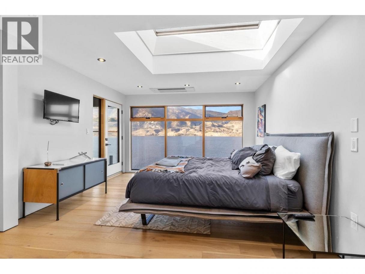 This stunning 5-bedroom, 3.5-bath lakefront Net Zero home blends sustainable design with timeless high-end finishes and exceptional views, delivering a true year-round lakeside lifestyle. Wake up to glassy morning water, paddle or swim from your dock, spend the day boating and hosting friends, then unwind with sunset dinners and stargazing evenings. Custom architectural details include a European glass front door, glass floor feature, porcelain tile, white oak wire-brushed hardwood flooring, Italian wallpaper, steel-framed glass sliders, white oak barn doors, and integrated LED lighting. The chef’s kitchen features custom white oak cabinetry with integrated handles, Dekton recycled porcelain countertops from Spain, roll-out pantry drawers, soft-close and touch-latch hardware, under-cabinet lighting, automatic drawer microwave, double-drawer dishwasher, concealed hood fan, and integrated panel-front Fisher & Paykel appliances with custom “Nest” carved detailing. The lower level offers a legal, licensed 2-bedroom suite ideal for short-term rental, guests, or extended family. Built with green, zero off-gassing materials, airtight construction, enhanced insulation, solar panels, and a custom staircase. Complete the experience with an 80-foot dock, wake-boat lift, storage for all your lake toys, and effortless waterfront entertaining all summer long, with easy access to beaches, dining, wineries, and everyday amenities nearby. (id:6769)