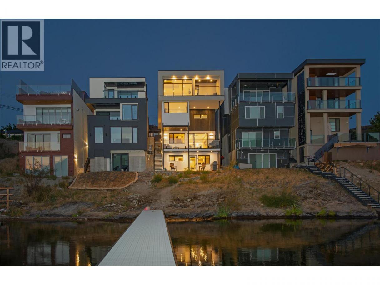 This stunning 4-bedroom, 3.5-bath lakefront Net Zero home blends sustainable design with timeless high-end finishes and exceptional views, delivering a true year-round lakeside lifestyle. Wake up to glassy morning water, paddle or swim from your dock, spend the day boating and hosting friends, then unwind with sunset dinners and stargazing evenings. Custom architectural details include a European glass front door, glass floor feature, porcelain tile, white oak wire-brushed hardwood flooring, Italian wallpaper, steel-framed glass sliders, white oak barn doors, and integrated LED lighting. The chef’s kitchen features custom white oak cabinetry with integrated handles, Dekton recycled porcelain countertops from Spain, roll-out pantry drawers, soft-close and touch-latch hardware, under-cabinet lighting, automatic drawer microwave, double-drawer dishwasher, concealed hood fan, and integrated panel-front Fisher & Paykel appliances with custom “Nest” carved detailing. The lower level offers a legal, licensed 1-bedroom suite with office/den currently used as a bedroom that is ideal for short-term rental, guests, or extended family. Built with green, zero off-gassing materials, airtight construction, enhanced insulation, solar panels, and a custom staircase. Complete the experience with an 80-foot dock, wake-boat lift, storage for all your lake toys and effortless waterfront entertaining all summer long, with easy access to beaches, dining, wineries and everyday amenities nearby. (id:6769)