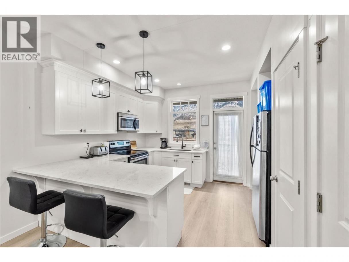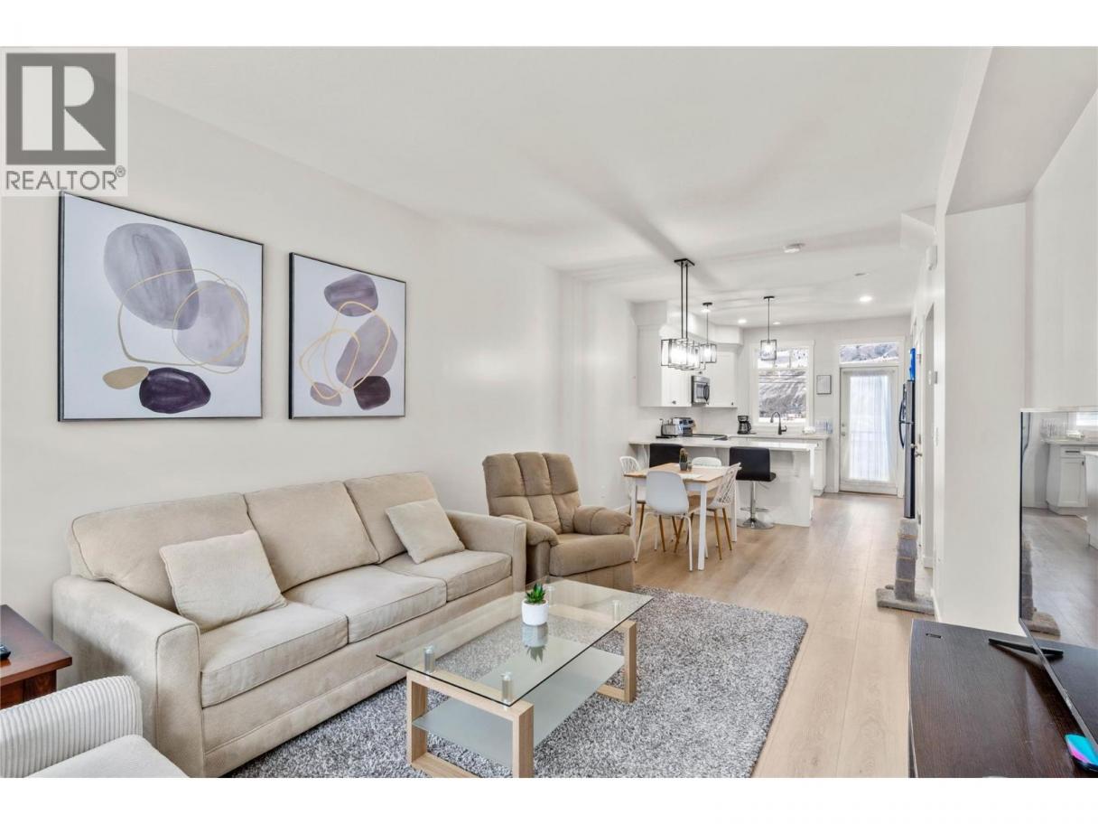 Welcome to #16 at Cortland Park, part of the Orchards Walk Development. This stunning corner unit townhouse has been fully renovated by the current owners and truly shows like new. From top to bottom, you’ll appreciate the thoughtful upgrades, including all-new flooring, fresh paint, modern lighting, quartz countertops in both the kitchen and bathrooms, and a new hot water tank - so you can move in with total peace of mind. This cozy three-level home offers the perfect blend of low-maintenance living and unbeatable convenience, with amenities and recreation just minutes away. The lower level features a large tandem two-car garage and a walk-out door leading directly to the grassy backyard common area, ideal for pets and kids. On the main level, the home feels bright and inviting, thanks to a large living room window that floods the space with natural light. The open dining and kitchen areas are perfect for everyday living and entertaining, with access to a covered rear deck for year-round enjoyment, and rounded out with a convenient 2pc bathroom. Upstairs you'll find all three bedrooms and two full bathrooms, the two rear facing windows boast a great view of the mountains and the South Thompson River. Laundry is also conveniently on the top floor with the bedrooms. Take advantage of this “like-new” home without the added cost of GST in a family oriented neighbourhood. Stylish, turn-key, and move-in ready - this one is a must-see. (id:6769)