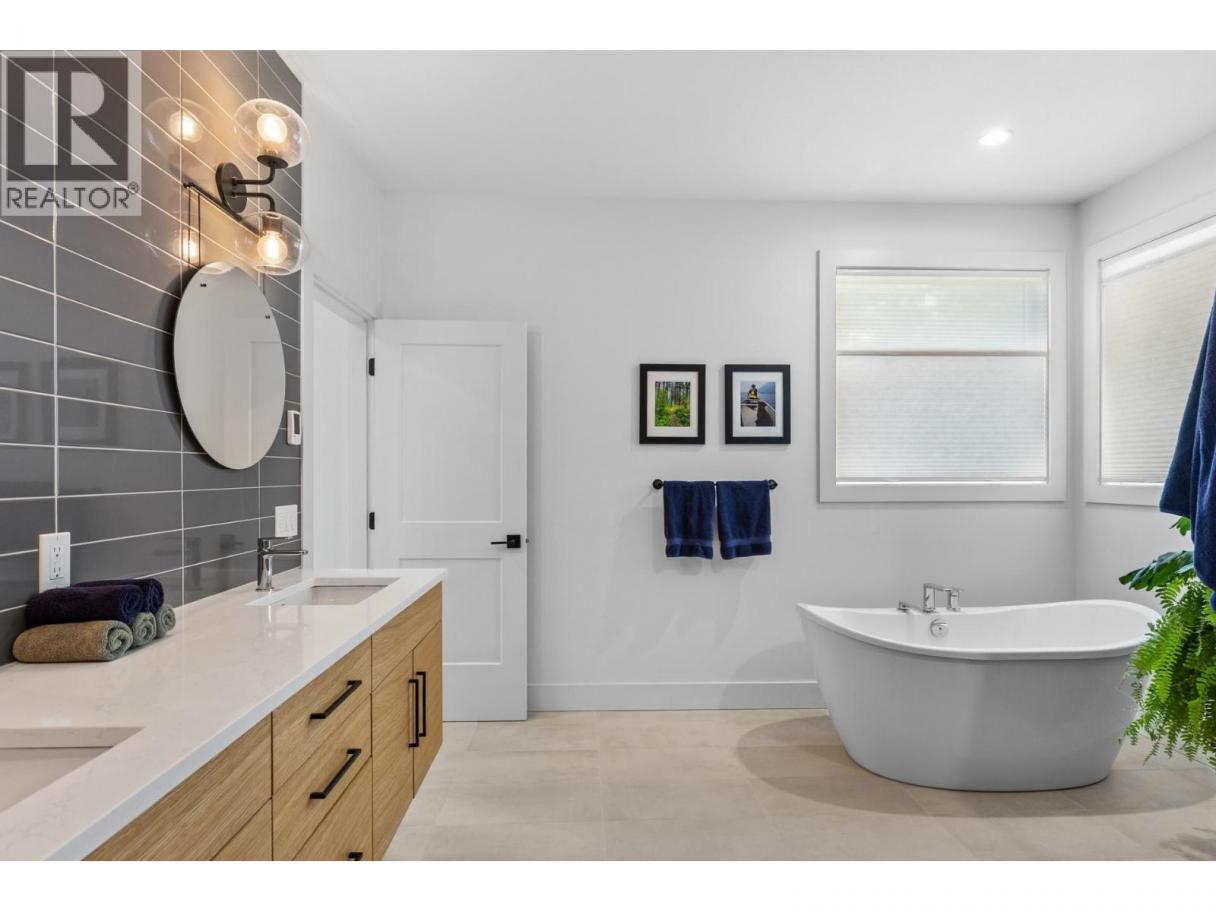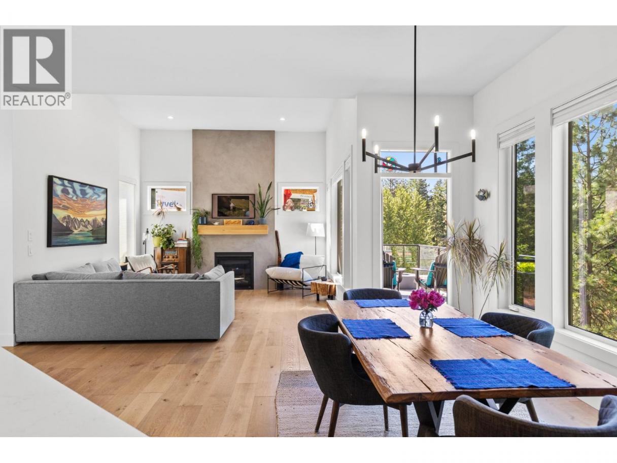 Discover this 2022-built, 3 level, 4-bedroom, 5-bathroom home in the desirable Keefe Creek community of West Kelowna Estates. Perfectly positioned on a quiet cul-de-sac and backing onto parkland, this nearly 3,000 sq. ft. home offers rare privacy, tranquil views, and immediate access to a trail which is ideal for dog walking and nature lovers. The main level welcomes you with a sleek, open-concept design highlighted by oversized windows, wide-plank hardwood flooring, and a striking gas fireplace. The designer kitchen features quartz counters, a gas range, tiled backsplash, and a spacious island with a waterfall edge. Step outside to a balcony overlooking the well maintained yard and natural green space beyond. Upstairs, unwind in the luxurious primary suite with a walk-in closet and spa-inspired ensuite bathroom complete with two sinks, a tiled shower, and a soaker tub. Two additional bedrooms and a full bathroom round out the upper level. Downstairs offers a large recreation/media room, powder room, and a fully self-contained 1-bedroom suite with its own entrance that is ideal for extended family or rental income. Located just minutes to downtown Kelowna or into West Kelowna schools, grocery stores, amenities and hiking, this is stylish living with space, serenity, and income potential. (id:6769)