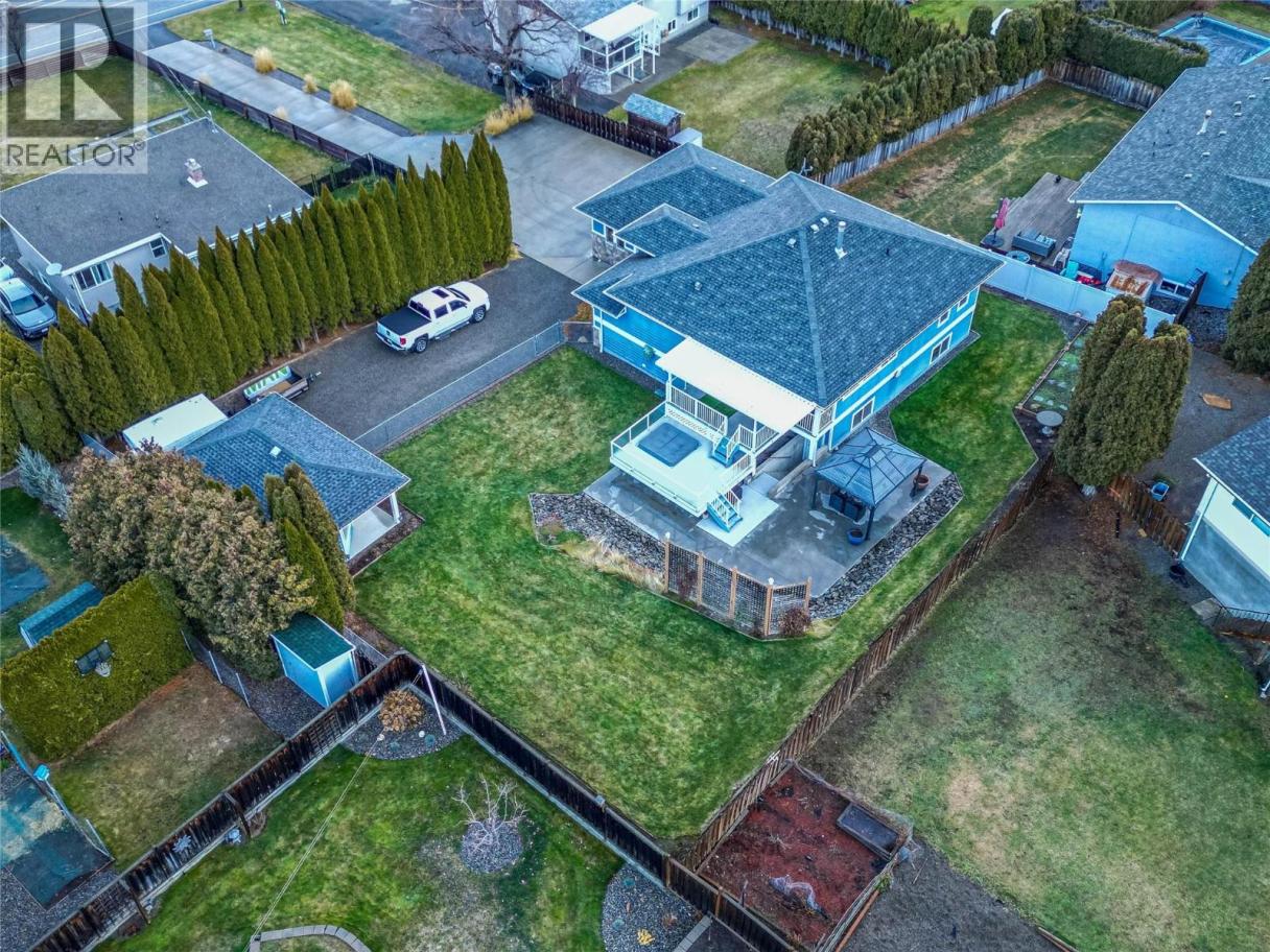 Located on a quiet, sought-after stretch of Valleyview, this custom-built home offers approximately 2,600 sq.ft. of well-designed living space on a fully landscaped 0.39-acre lot. Recent upgrades include quartz kitchen countertops with extended eating bar, updated main bathroom vanity, sink, and toilet, fresh interior paint in the office and front entry, and brand-new washer and gas dryer. The kitchen features high-end appliances, including a 6-burner gas range, and opens to bright living and dining areas with hardwood and tile flooring throughout. The home is meticulously maintained with serviced mechanical systems, a recently replaced hot water holding tank, updated hardwired smoke detectors, and a fully reviewed irrigation system. A flexible office located just off the main entrance between the main and lower levels provides excellent separation and could function as an additional bedroom if desired. The main level offers an open-concept layout, laundry, primary bedroom with ensuite, and access to a covered deck. The fully finished lower level includes a spacious rec room, two bedrooms, full bath with steam shower, wet bar, and separate entry with in-law or suite potential. Additional highlights include in-floor radiant heat, dog washing station, Central Vac, A/C, heated driveway, oversized garage/shop, RV parking, storage shed, underground sprinklers, vinyl fencing, gazebo with gas fire pit, a 3-year-old hot tub, and a private, beautifully established yard. (id:6769)