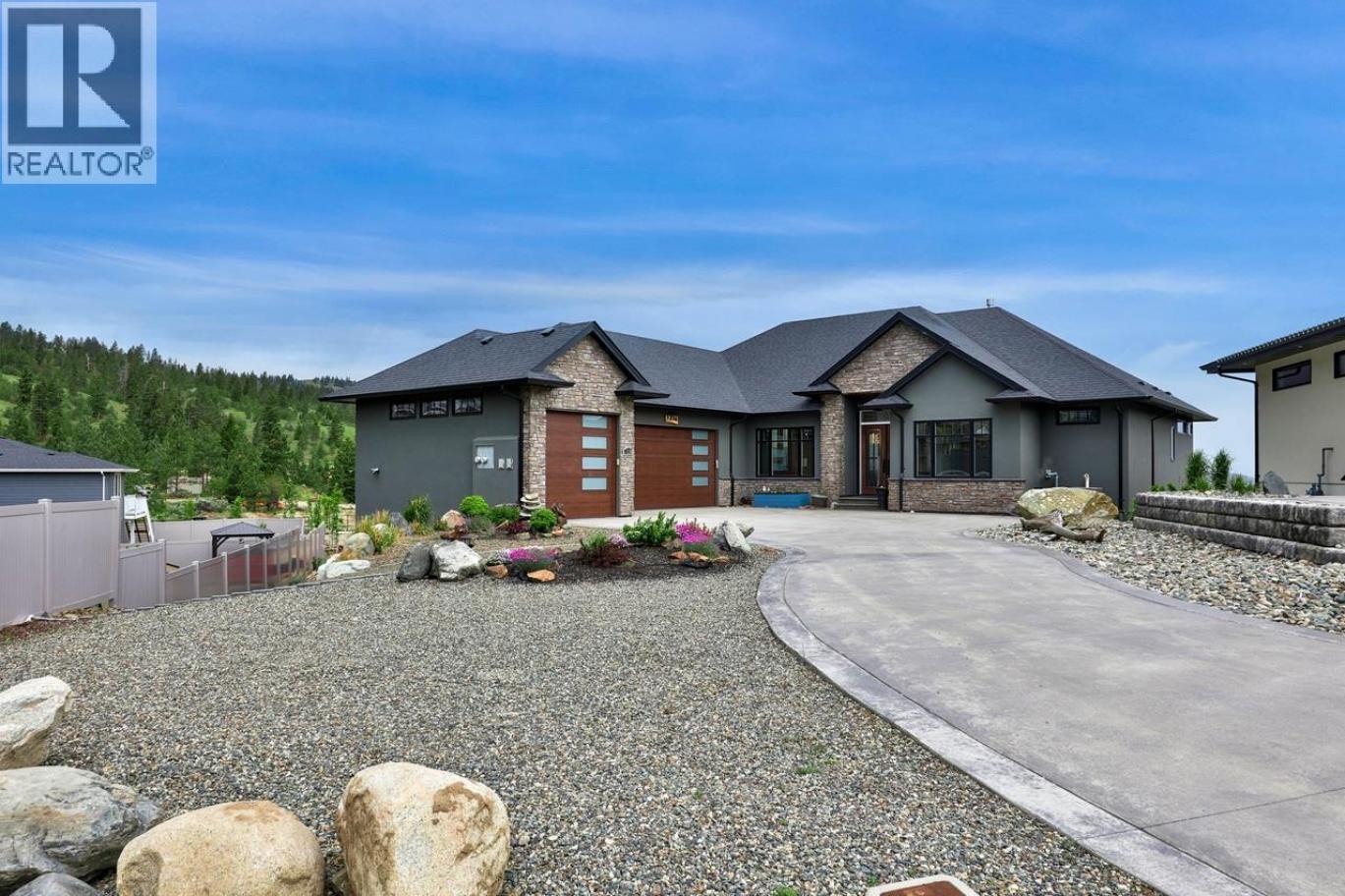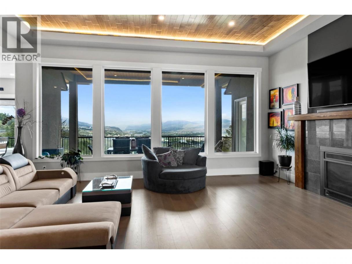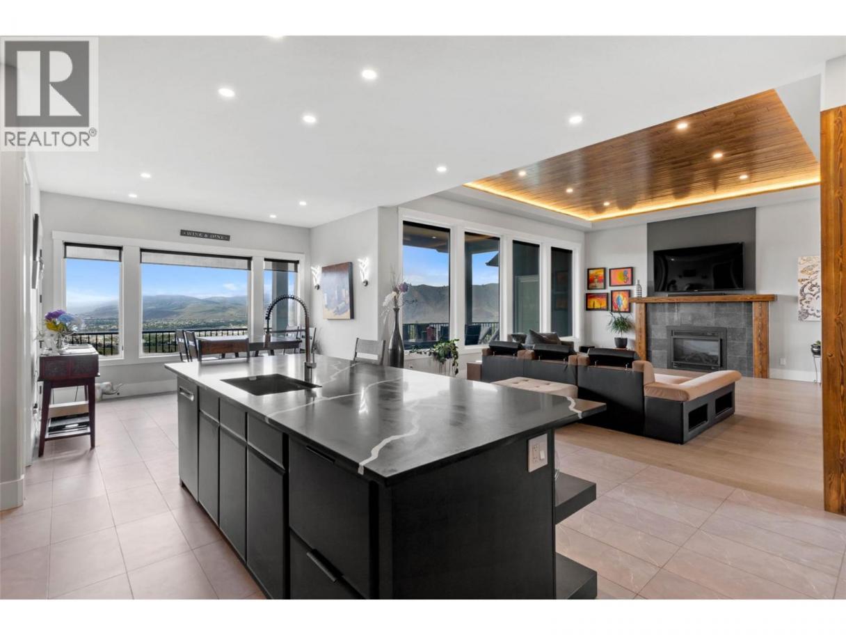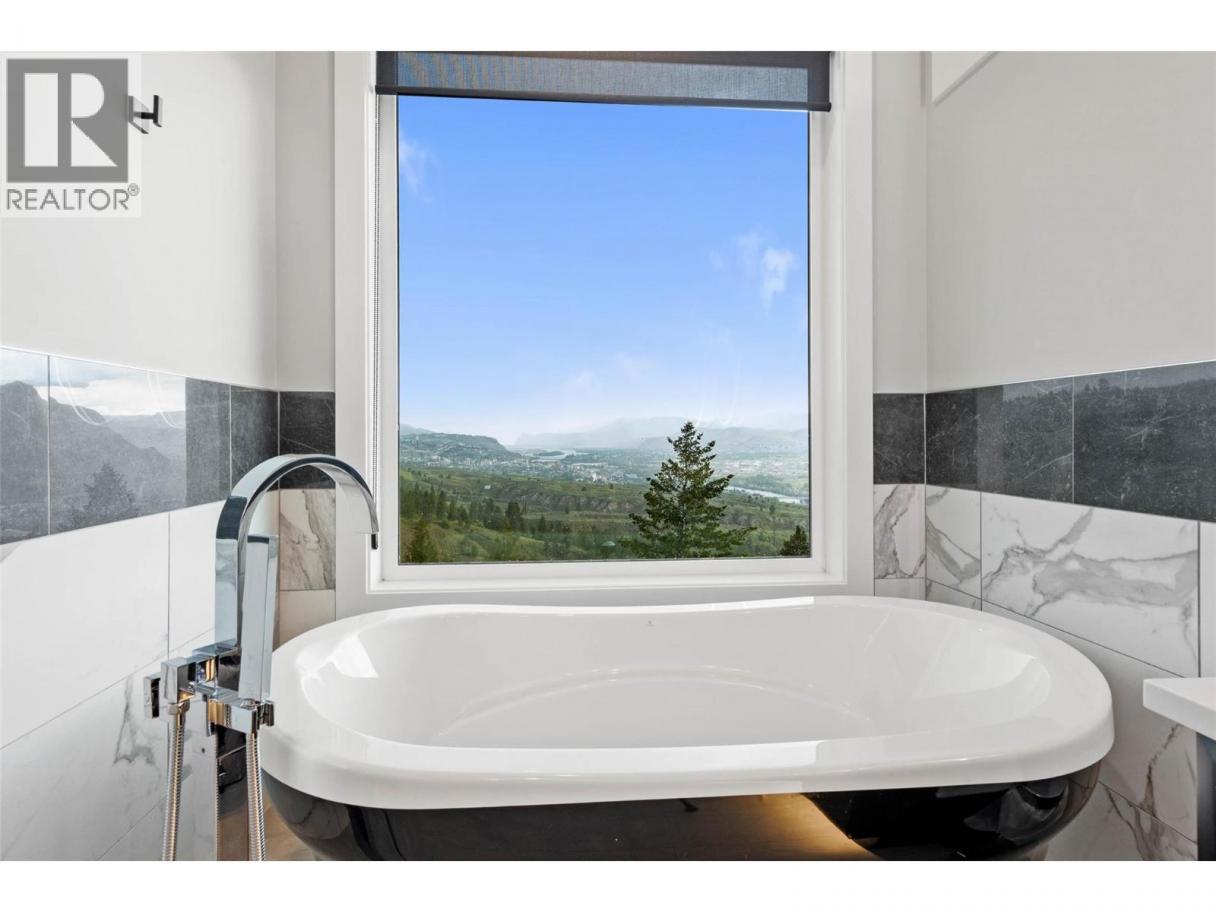 One of a kind executive custom built view home located in Juniper West, overlooking the City of Kamloops, the Thompson River and Kamloops Lake. 3 car garage plus lots of extra parking . Custom kitchen with many extras for the chef of the house; granite counter tops, push soft close cabinets, 2 beverage drawers, matching appliances to cabinetry, breakfast nook w/a view, walk-in pantry that wraps around to laundry room and access to garage. Large formal dining room, great room with wood beam mantel around see through gas fireplace and expansive windows to enjoy the Westerly view. The primary bedroom is 13'x19' with a walk-in tile shower, soaker tub, double sinks with below lighting and heated floors, towel warmer and large walk-in closet with custom shelving and drawers with room for him and her. Day light basement with 2 bedrooms, 3 pce bath, rec/fam room, games room, theatre room with custom entertainment centre and large tiled steam room. 1 bedroom self contained suite with garage parking. Central A/C. Enjoy the view from up/down covered patio, hot tub hook-up, green grass to play with the kids plus lower garden area and much more. 24 hour notice for all showings. (id:6769)
