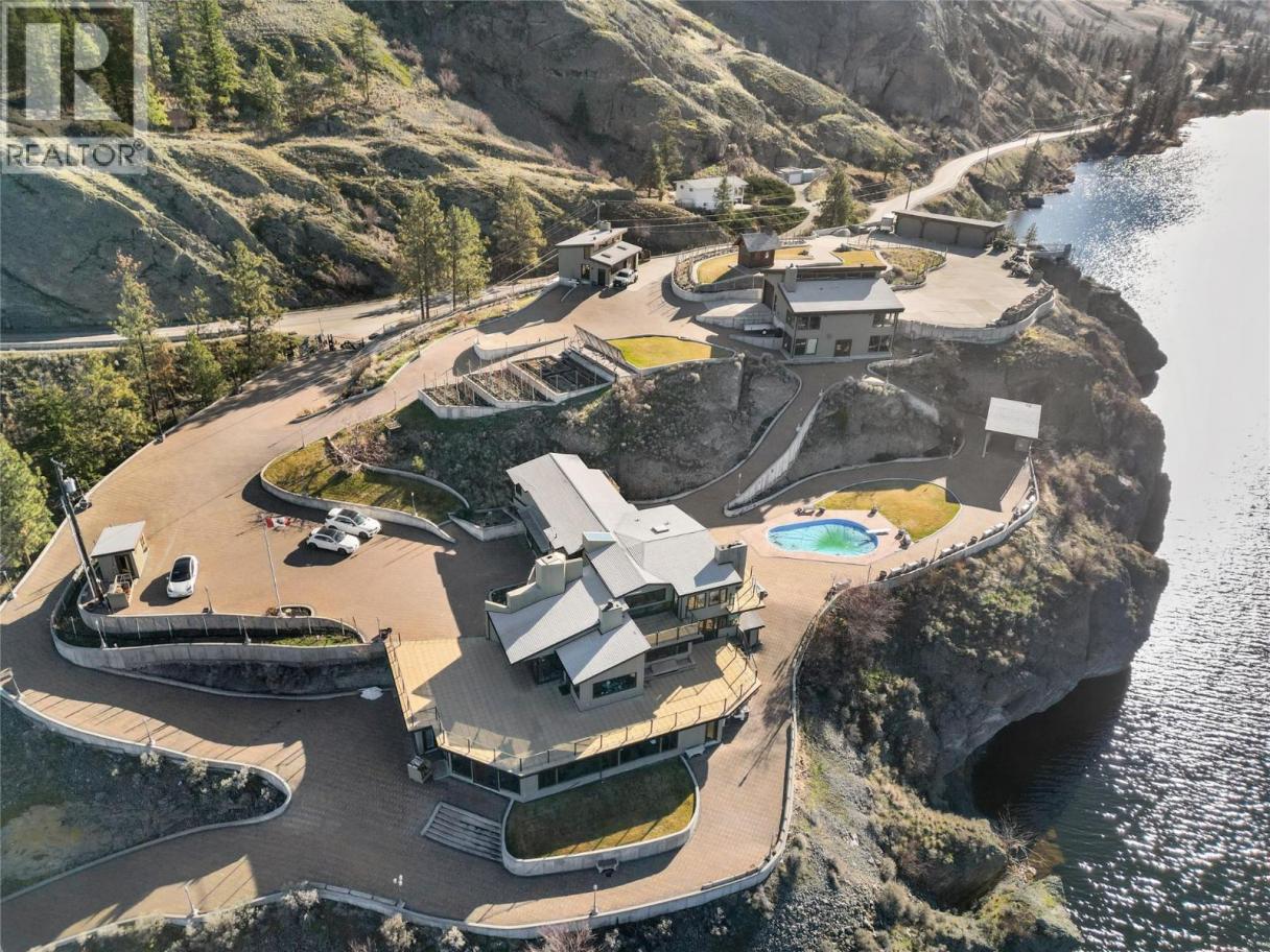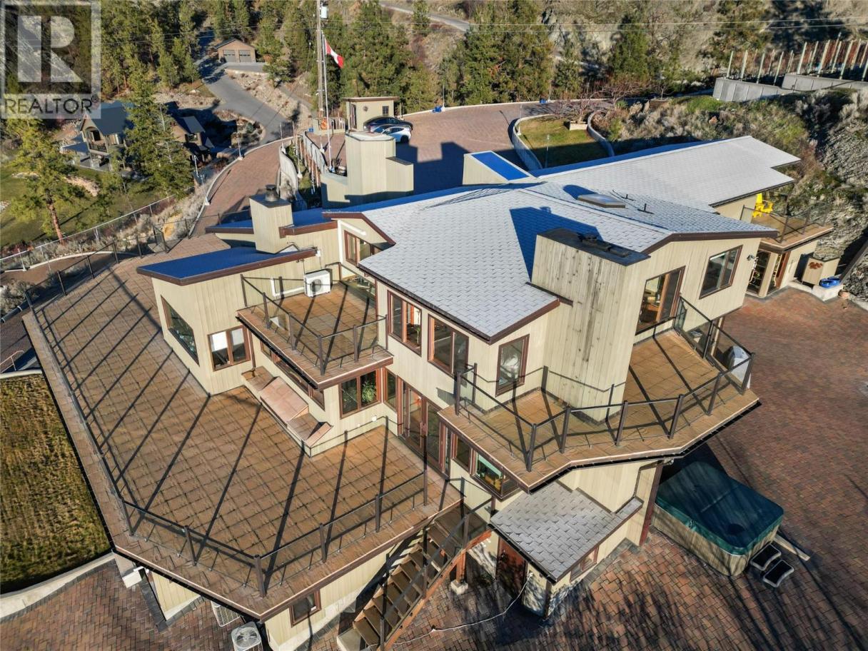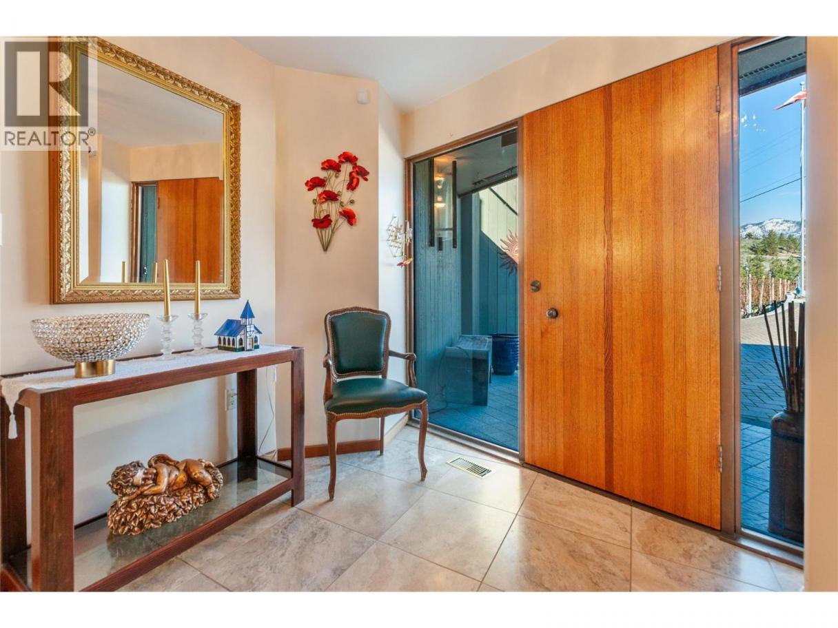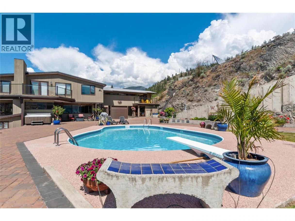 Enter through the private hand-crafted wrought iron gate you'll immediately be wowed by the home's unique charm and inviting atmosphere. The tastefully renovated home seamlessly flows into an exceptional views of Skaha Lake featuring the wonderful sunsets over the neighbouring hills. Outside you can marvel at the rock features that border an inviting in ground pool or take a stroll to the road leading down to over 550 ft of lakeshore. Inside the Ron Thom’s architecture features an award winning design tastefully updated incorporating many unique features including copper framed windows and doors, hand-crafted copper stair railing, native eagle motif skylight, ceramic tile throughout, expansive use of glass and over 2100 sq/ft of deck. The primary bedroom with a den area offers versatility for a home office or cozy reading nook. The updated lower level is a treasure, featuring a closed breezeway with a walk in fridge - endless possibilities here! Ample space for RV parking or additional vehicles. Privately located with the perfect proximity to restaurants, shops, schools, and beautiful Skaha lake. This property is not just a house; it's an investment in a lifestyle that effortlessly combines the charm of the past with the comforts of today. Call today to arrange private viewing. (id:6769)