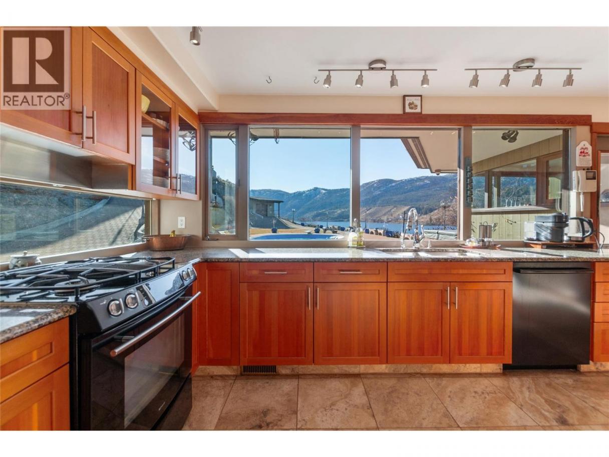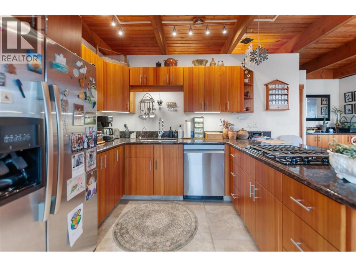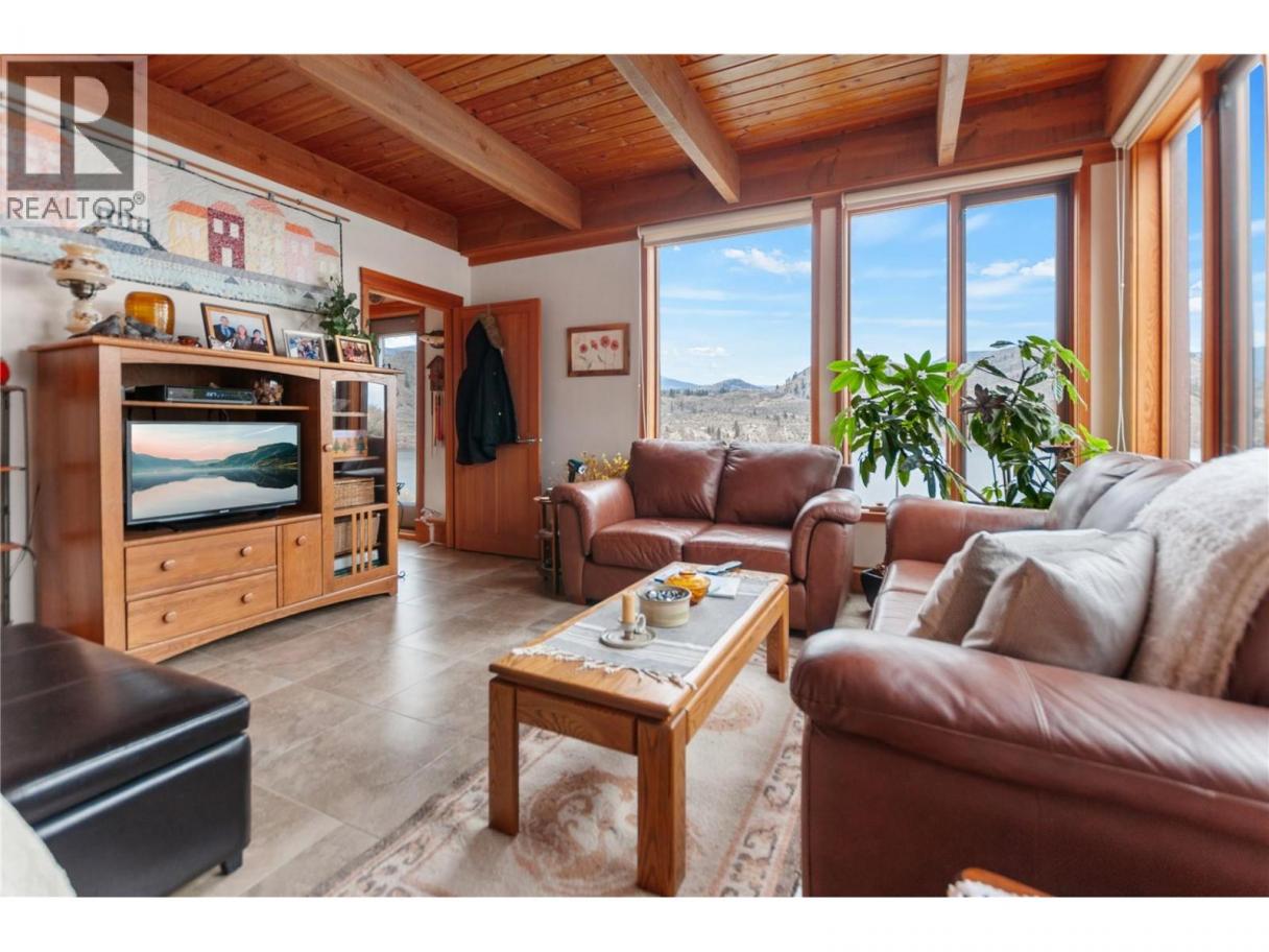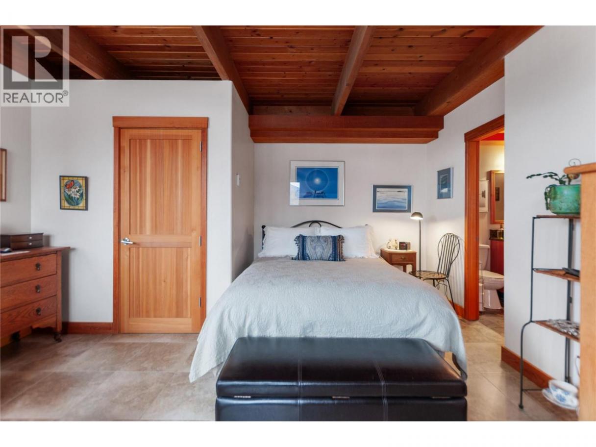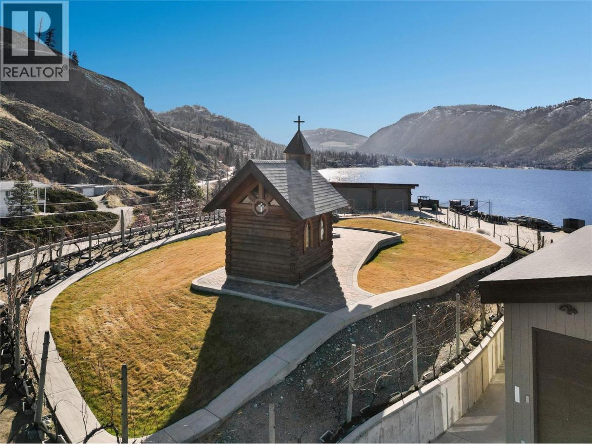 Enter through the private hand-crafted wrought iron gate you'll immediately be wowed by the home's unique charm and inviting atmosphere. The tastefully renovated home seamlessly flows into an exceptional views of Skaha Lake featuring the wonderful sunsets over the neighbouring hills. Outside you can marvel at the rock features that border an inviting in ground pool or take a stroll to the road leading down to over 550 ft of lakeshore. Inside the Ron Thom’s architecture features an award winning design tastefully updated incorporating many unique features including copper framed windows and doors, hand-crafted copper stair railing, native eagle motif skylight, ceramic tile throughout, expansive use of glass and over 2100 sq/ft of deck. The primary bedroom with a den area offers versatility for a home office or cozy reading nook. The updated lower level is a treasure, featuring a closed breezeway with a walk in fridge - endless possibilities here! Ample space for RV parking or additional vehicles. Privately located with the perfect proximity to restaurants, shops, schools, and beautiful Skaha lake. This property is not just a house; it's an investment in a lifestyle that effortlessly combines the charm of the past with the comforts of today. Call today to arrange private viewing. (id:6769)