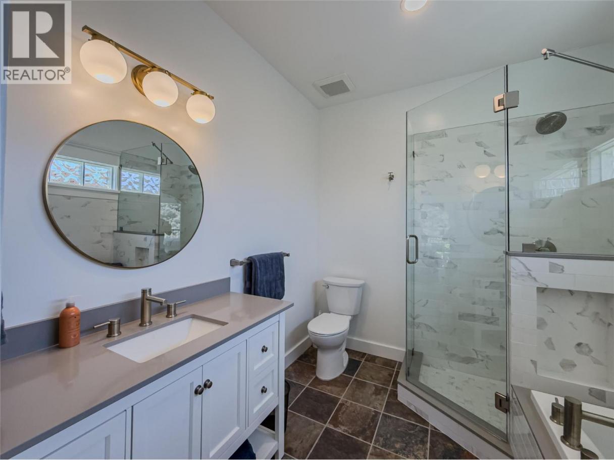 Just minutes from Royal Inland Hospital and the heart of Downtown Kamloops, this executive-style basement-entry townhouse sits in the small, sought-after Loma Bella complex. Enjoy panoramic city views from your private north-facing patio, or relax on one of two south-facing patios overlooking a quiet ravine. Updates include refreshed bathrooms, new interior paint & flooring, lighting and a waterfall-edge quartz kitchen countertop. The main floor is bright and surrounded by windows, filling the home with natural light. A semi-open layout connects the kitchen and casual dining area to the south patio, while the living room and formal dining space—with a 2-piece powder room—open onto the north patio. The spacious primary bedroom also connects to the south patio and features a walk-through closet leading to an updated 4-piece ensuite with a stand-up shower and separate soaker tub. The lower level offers a second living room with patio access, two additional bedrooms (one with a cheater ensuite and patio access), a generous foyer, laundry area, and direct entry to the double garage. Extras include central A/C, ample storage, and garage upgrades with slat wall and extra shelving. Located within walking distance of Downtown shops, restaurants, and Riverside Park. A rare opportunity for professionals, downsizers, or anyone seeking low-maintenance living with incredible views & convenient access. Strata: $411.05. Pets allowed (cats & dogs). Buyer to confirm all details & measurements. (id:6769)