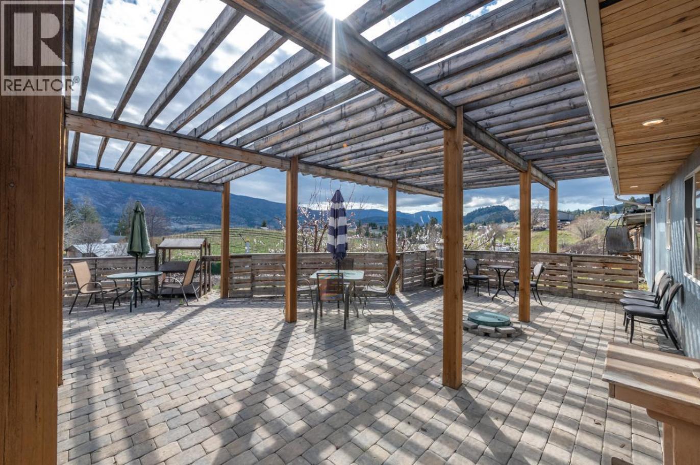 HIGH TRAFFIC LOCATION! Picturesque 4.49-acre property boasting a lovely updated home, productive fruit stand, and a retail area with a great patio. Enjoy stunning lake and mountain views in Kaleden, just 8 minutes from Penticton. The property features 500 feet of highway frontage and a 3 bedroom, 2 bathroom home with many upgrades including new paint, geothermal heating, cooling unit, and a spacious new deck. The fruit stand offers a designated area for a commercial kitchen, perfect for exploring culinary ventures like a café or bakery. Embrace the serenity and potential of this unique property, ideal for those seeking a blend of lifestyle and business opportunities. Winery not included. Seller will lease back if desired. Opportunities abound. Measurements taken from i-Guide. Call listing agent today for a viewing. (id:6769)