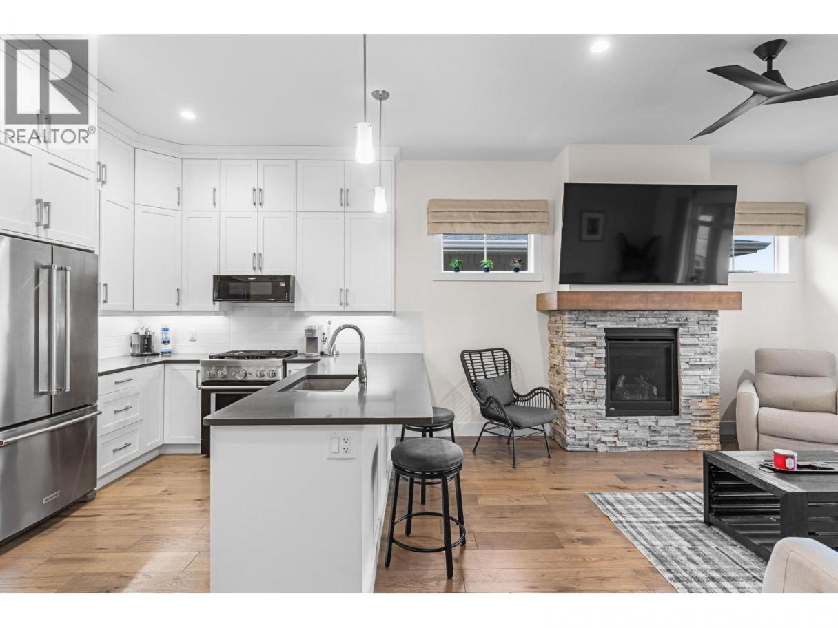 WORTH CANCELLING WEEKEND PLANS FOR! ""SOUGHT-AFTER"" SOLSTICE COMMUNITY AT TOWER RANCH! Stellar reputation, located on a quiet no thru road, with UNSURPASSED VIEWS! Light and bright quartz kitchen with high end appliances including a commercial Wi-Fi gas range + quality cabinets that elevate to the ceiling for added storage. VIEW living room with feature gas fireplace. Spacious dining room that will accommodate larger furniture for family gatherings. King size primary with deluxe ensuite and convenient laundry complete the main floor. The lower level is equally appealing with an oversized recreation/family room, ANOTHER PRIMARY with a 3-piece ensuite + the 3rd bedroom and another full bath. Tons of storage on the Lower level. BONUS POINTS FOR new Syn Turf installed in back, 12K worth of window treatments, newly professionally installed ceiling fans in living room and deck, sun blinds on deck + dedicated breaker box for 2022 Jacuzzi hot tub. Owners have use of the fitness center, media room & club house. Walking, hiking & biking trails to Tower Ranch Mountain + a few minutes to all major shopping, restaurants, pubs + other amenities. A STYLE OF HOME OWNERSHIP WITH A CLEAR LOGICAL ADVANTAGE When you live here, you own your home without buying the land. You own your home from the ground up and pay a moderate fee for an ironclad 99-year renewable lease for the land in a professionally managed community with beautifully maintained grounds and shared amenities. By not purchasing the land, you pay less and keep cash flow available to make the most of your active lifestyle. Lease is 832.23, Community fee is 20.00, strata fee is 94.82. (id:6769)