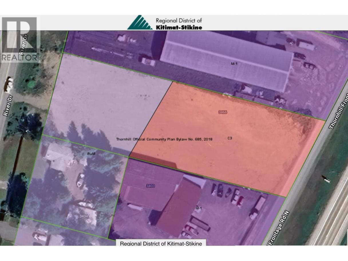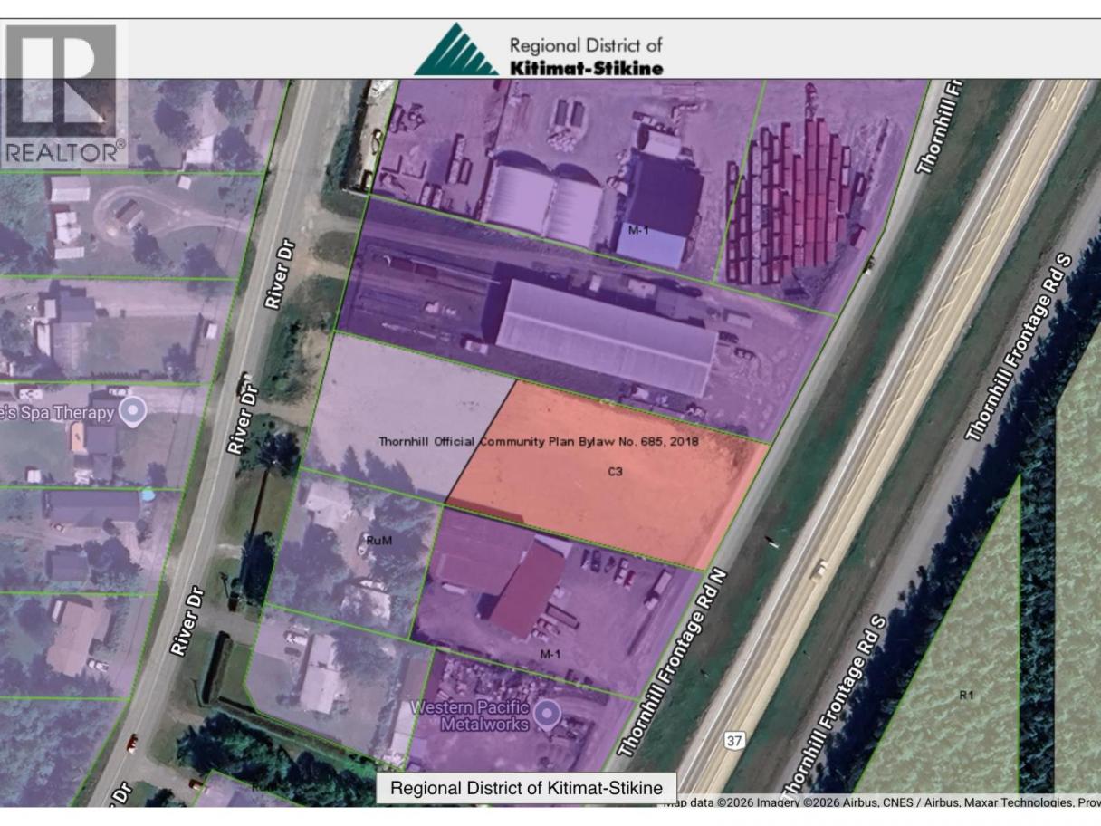Unique opportunity to lease 1.24 acres of vacant land 5 minutes East of Terrace, BC. Located along the busy Highway 16 enroute to Terrace, Kitimat and Prince Rupert. This cleared property offers access via the highway frontage road on one end as well as direct access of River Drive on the other. Zoned RUM (Rural industrial) & C3 (commercial) it is one of the only options to lease cleared vacant land in the area. Easy access, highway visibility and a high traffic location make this an excellent lease opportunity. Will build to suit. Base lease rate of $3500/month. (id:6769)
