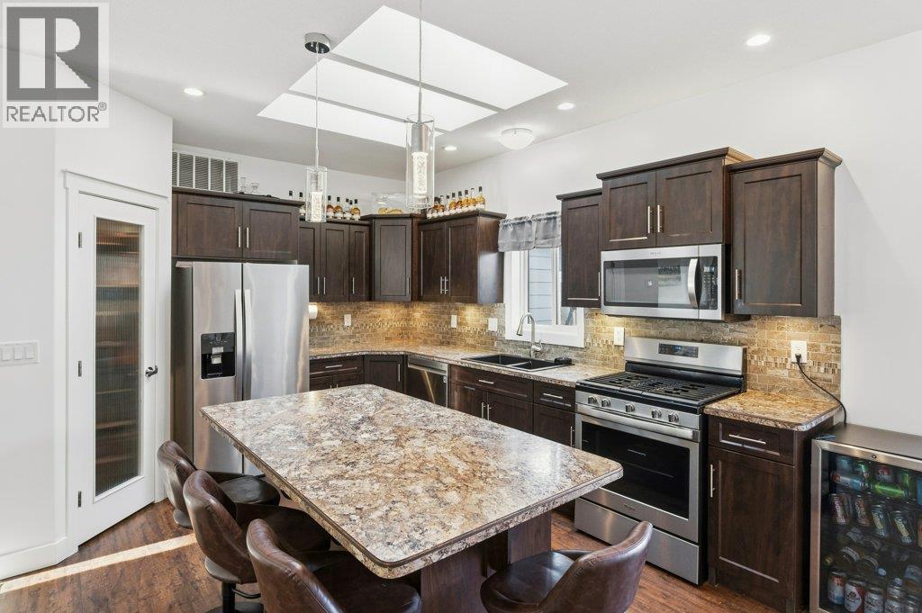OPEN HOUSE SATURDAY, FEB 28TH 11:00AM-2:00PM. Discover this beautiful rancher in the newest phase of desirable Gallagher Lake Village Park. Built in 2018, this gorgeous ‘Caribou’ Show Home boasts 1391 sq ft with 3 BEDS, 2 BATHS, double car garage, powered workshop & solar panels. The bright, newly painted interior offers an inviting floor plan with 9’ ceilings & rich vinyl plank flooring. The kitchen features stainless steel appliances, gas stove, chocolate shaker cabinets, skylights for extra natural lighting & a spacious island. The pantry is impressive with beautiful built-in wood shelving & a coffee bar. Living room features a gas f/p with stylish stone surround. Spacious primary suite has a large walk-through closet leading to a 4-pce ensuite with dual vanities, walk-in shower & solar tube. Guest bedroom with access to 4-pce main bath is located at the opposite end of the home. 3rd bedroom makes a great hobby or office room. Separate laundry area with brand new W/D, laundry sink, hot water on demand & solar tube. N/G furnace and central A/C. Double car garage with jack-shaft door opener. Outside, your outdoor oasis awaits! Fully fenced yard has a large gazebo for relaxing, covered BBQ area, garden beds, some green space for pets/kids & a powered workshop to tinker in. U/G irrigation for easy maintenance. Pre-wired for a hot tub! Home Warranty remains. No age restrictions, 2 pets allowed. Leasehold, no PTT or GST. Pad rent $750/mth incl. sewer, water, garbage/recycling. (id:6769)