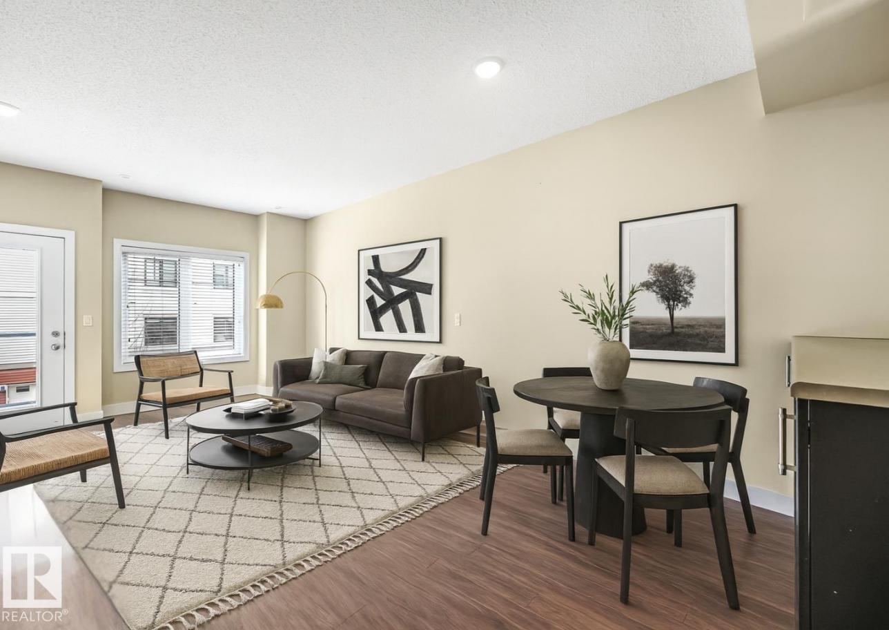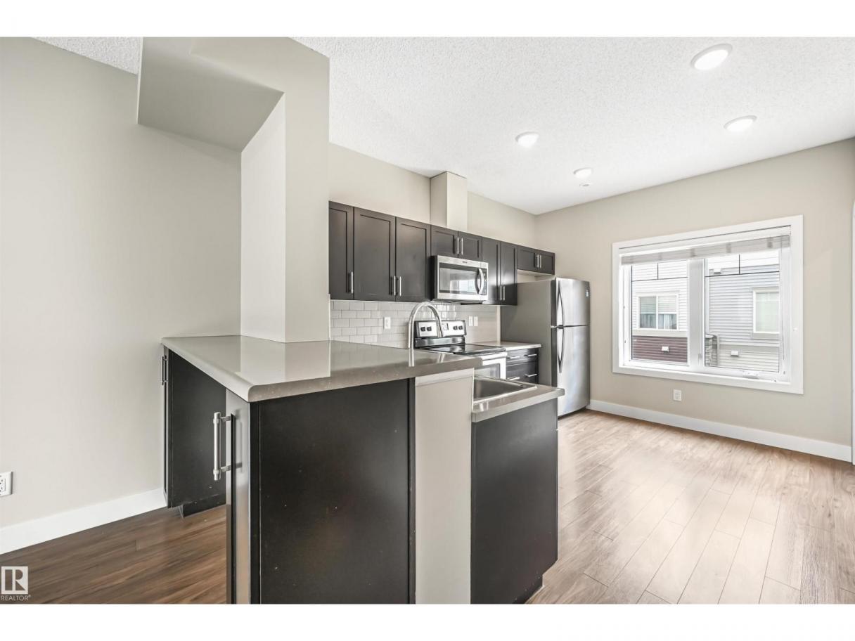 Welcome to this stunning and well-maintained spacious 2 bedroom/2.5 bath townhome in the desirable Walker. Main floor boasts a roomy open concept layout, 9' ceilings & quality finishings. The functional chef's kitchen includes S/S appliances, walk-in pantry & eating bar. Living room features an attached balcony to enjoy the fresh air & green space. The main level is equipped with a half bath & vinyl flooring. On the upper level, you'll find two well-sized bedrooms. Primary bedroom has 3pc ensuite & walk in closet. A second full bathroom and laundry closet complete the upper level. Flex room on ground level is perfect for a home office space or extra storage. Other features include a single attached garage and energy-efficient mechanical including tankless hot water for a lower utility bill. This well maintained complex offers visitor parking & is conveniently located close to shopping, walking trails & lake. Quick proximity to Anthony Henday, South Common, schools & public transportation. A must see! (id:6769)