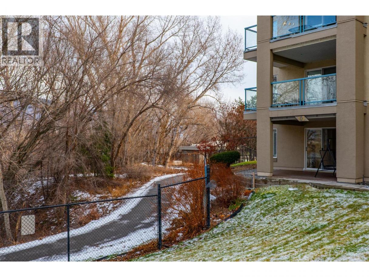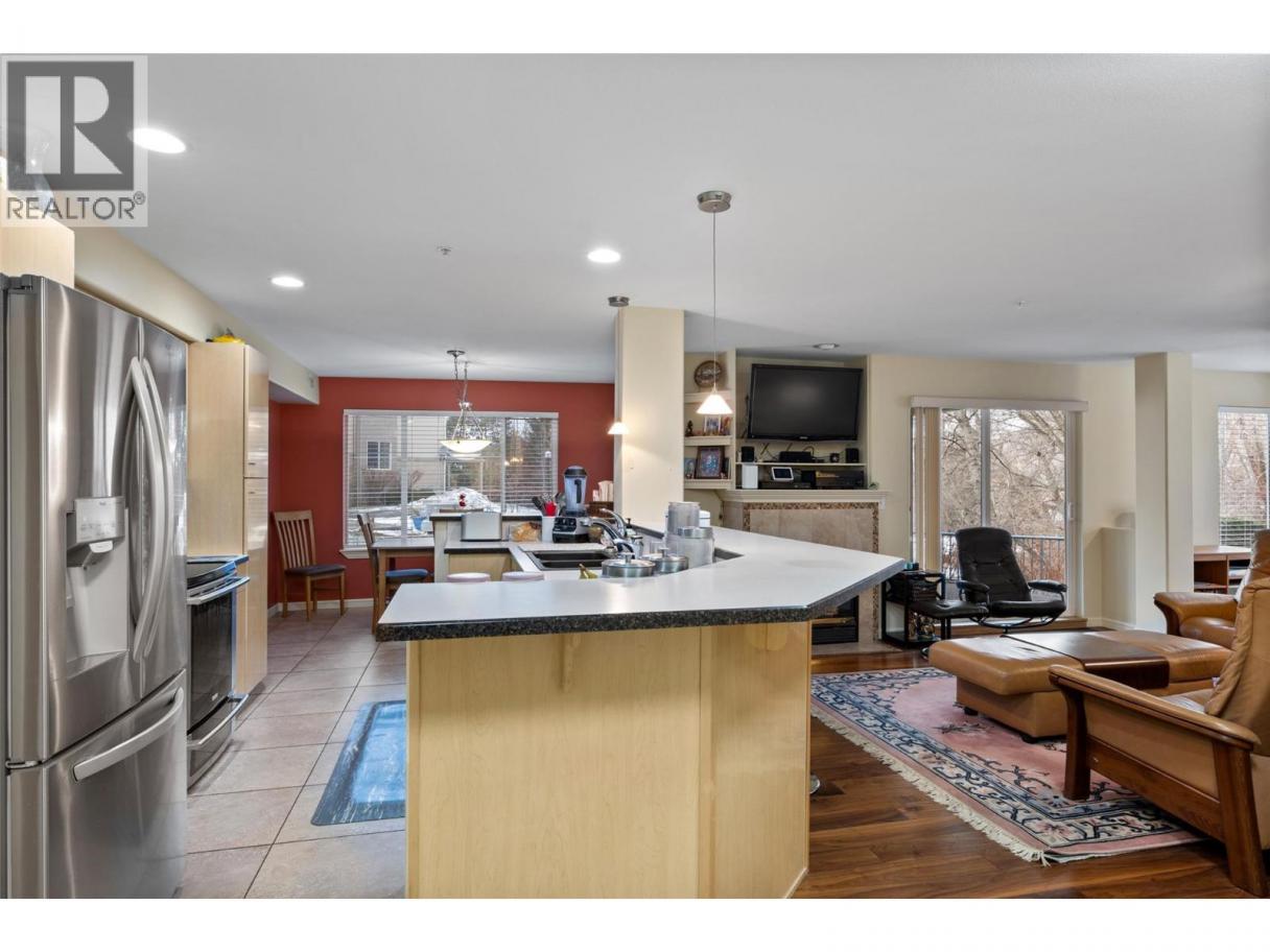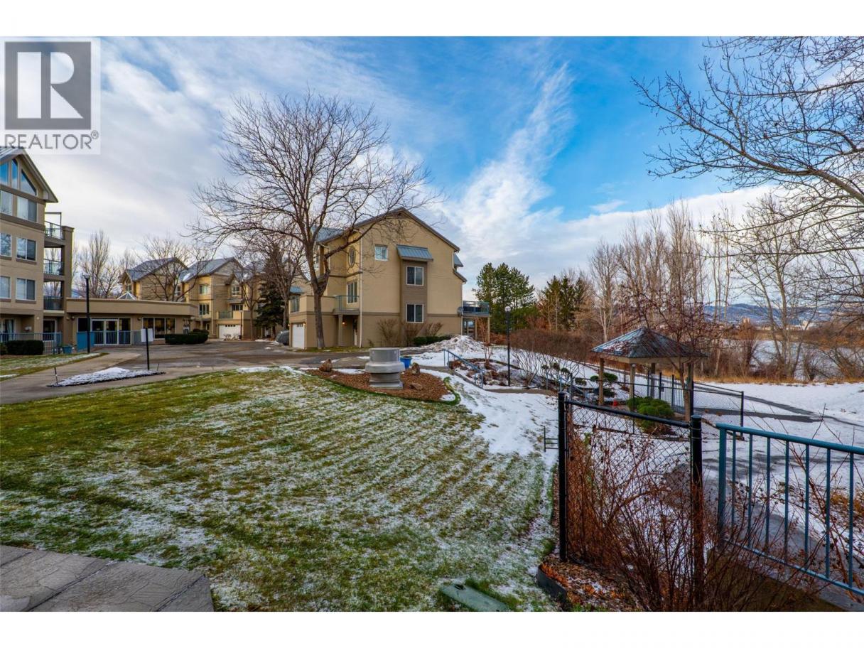 This is an outstanding and spacious ground-level corner unit with a large outdoor patio located on the river/quiet side of this sought-after and well-maintained complex. 2 bedrooms plus a very useful and bright den, 2 baths including the very nice full ensuite, and loads of upgrades and updates over time, including quality engineered hardwood and tile flooring, paint, newer high-quality appliances and window coverings including quality motorized blinds/shades/privacy film, heated bath floors, instant hot water kitchen tap and more. Easy access to outdoor spaces including the Rivers Trail, and only one shared/common wall are also great benefits of this very quiet home. This luxury complex also features many shared amenities for owners including secure underground parking with car wash facilities, indoor pool, community room, fitness and spa facilities, wine-making/hobby room, woodworking shop and bicycle storage. The secure gated community also features easy access to the Rivers Trail, a boat dock/moorage facility available on a first come-first served basis, and easy access and walkability to downtown services. Efficient heat-pump heating and cooling make home comfort very easy and affordable as well. Flexible possession, turn-key move-in ready, and great value in a fine right-size home. All measurements approximate and should be verified if critical. Second parking stall may be available on a monthly rental basis. (id:6769)