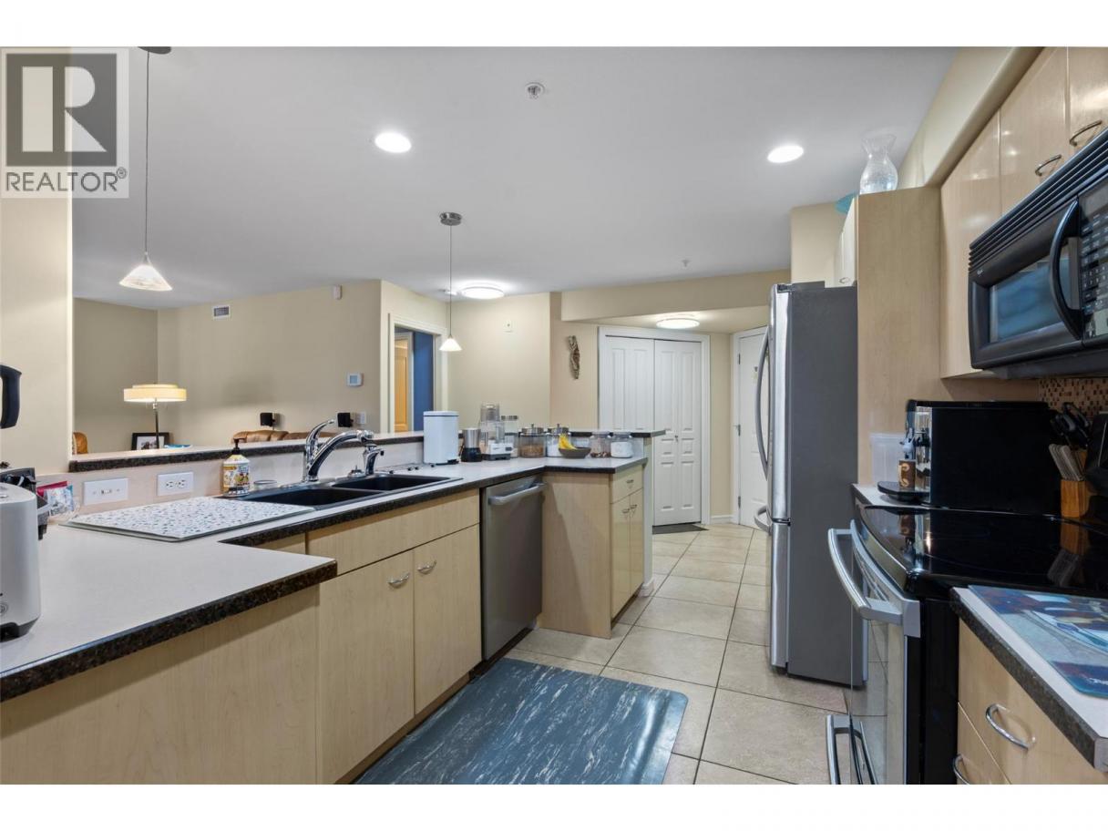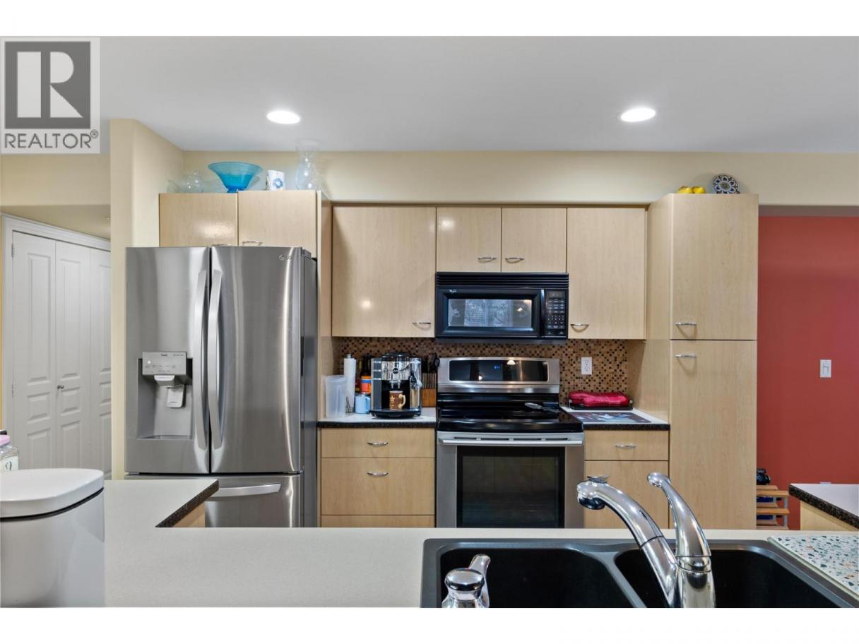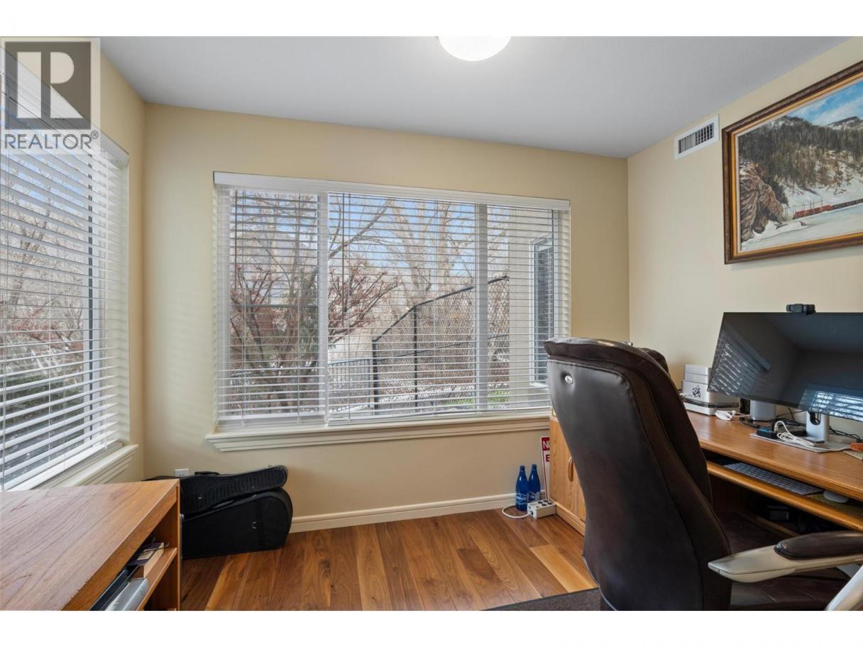 This is an outstanding and spacious ground-level corner unit with a large outdoor patio located on the river/quiet side of this sought-after and well-maintained complex. 2 bedrooms plus a very useful and bright den, 2 baths including the very nice full ensuite, and loads of upgrades and updates over time, including quality engineered hardwood and tile flooring, paint, newer high-quality appliances and window coverings including quality motorized blinds/shades/privacy film, heated bath floors, instant hot water kitchen tap and more. Easy access to outdoor spaces including the Rivers Trail, and only one shared/common wall are also great benefits of this very quiet home. This luxury complex also features many shared amenities for owners including secure underground parking with car wash facilities, indoor pool, community room, fitness and spa facilities, wine-making/hobby room, woodworking shop and bicycle storage. The secure gated community also features easy access to the Rivers Trail, a boat dock/moorage facility available on a first come-first served basis, and easy access and walkability to downtown services. Efficient heat-pump heating and cooling make home comfort very easy and affordable as well. Flexible possession, turn-key move-in ready, and great value in a fine right-size home. All measurements approximate and should be verified if critical. Second parking stall may be available on a monthly rental basis. (id:6769)