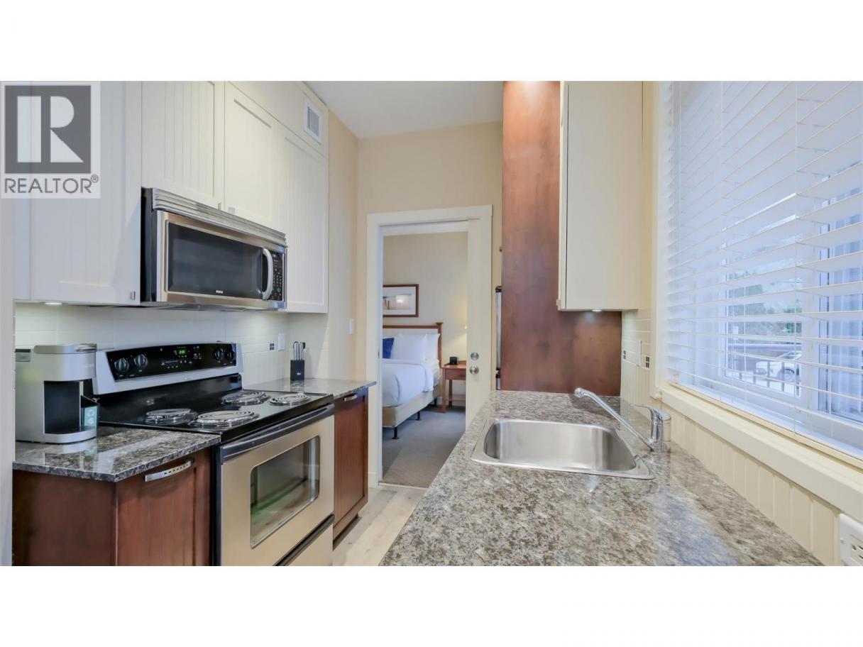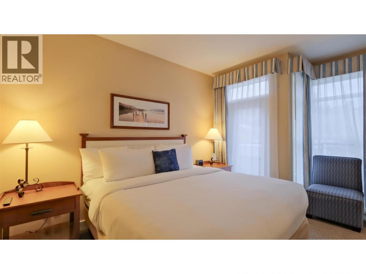 Welcome to effortless lakefront luxury at the Summerland Waterfront Resort. This 1 bed, 1 bath vacation ownership suite offers the perfect blend of relaxation and recreation. Enjoy Okanagan summers from your oversized north-facing deck with bluff views and peekaboo glimpses of the lake and marina. The shaded setting on the quiet end of the resort makes it ideal for lounging all day. Inside, the suite features a fully equipped kitchen with stainless steel appliances, granite countertops, and stylish two-tone cabinetry. The modern 4-piece bathroom connects to both the main living space and the primary bedroom, which includes private access to the deck for morning coffee or evening sunsets. Guests will appreciate the queen-size pullout in the living room. Just steps from the pool, hot tub, BBQ area, and picnic spaces, everything needed for a perfect getaway is close by. Owners enjoy access to two private beaches, a dock, and lush green space. Beyond the resort, you'll find a marina, splash park, pier, and several beaches, plus on-site rentals for paddleboards, kayaks, and more. Amenities include a popular restaurant, a bistro, and a full-service luxury spa. Enjoy the hands-off ownership - units are in the professionally managed rental pool with housekeeping and guest services, so you can relax while it earns rental income. Pet-friendly with approval. Own a piece of the South Okanagan dream - where every stay feels like coming home. Start making memories that last a lifetime. (id:6769)