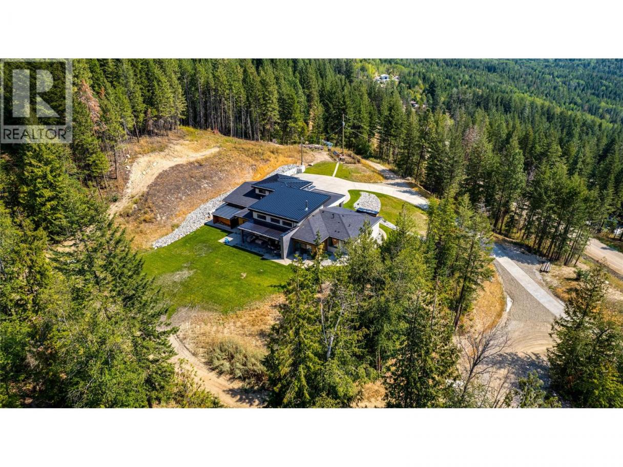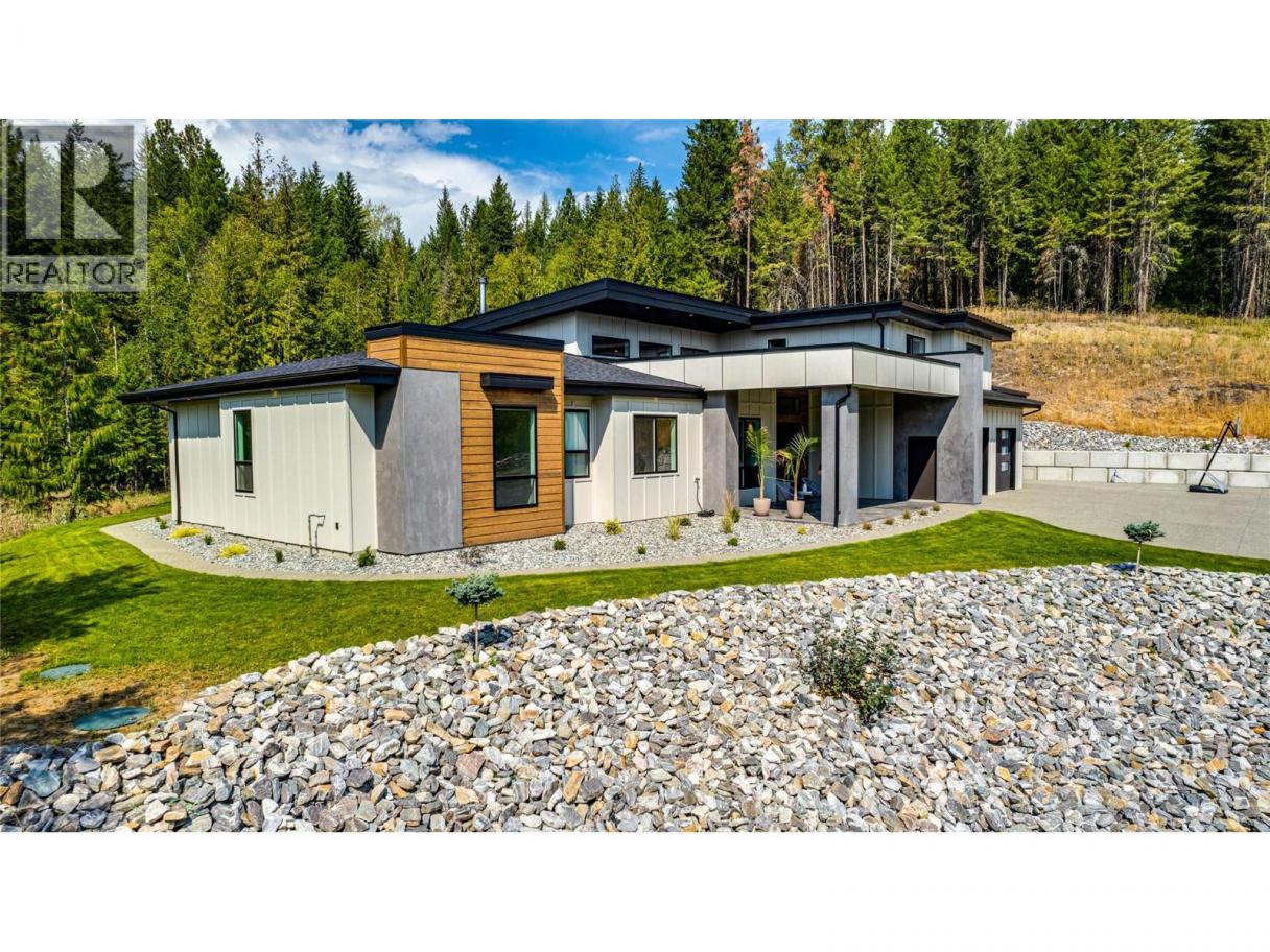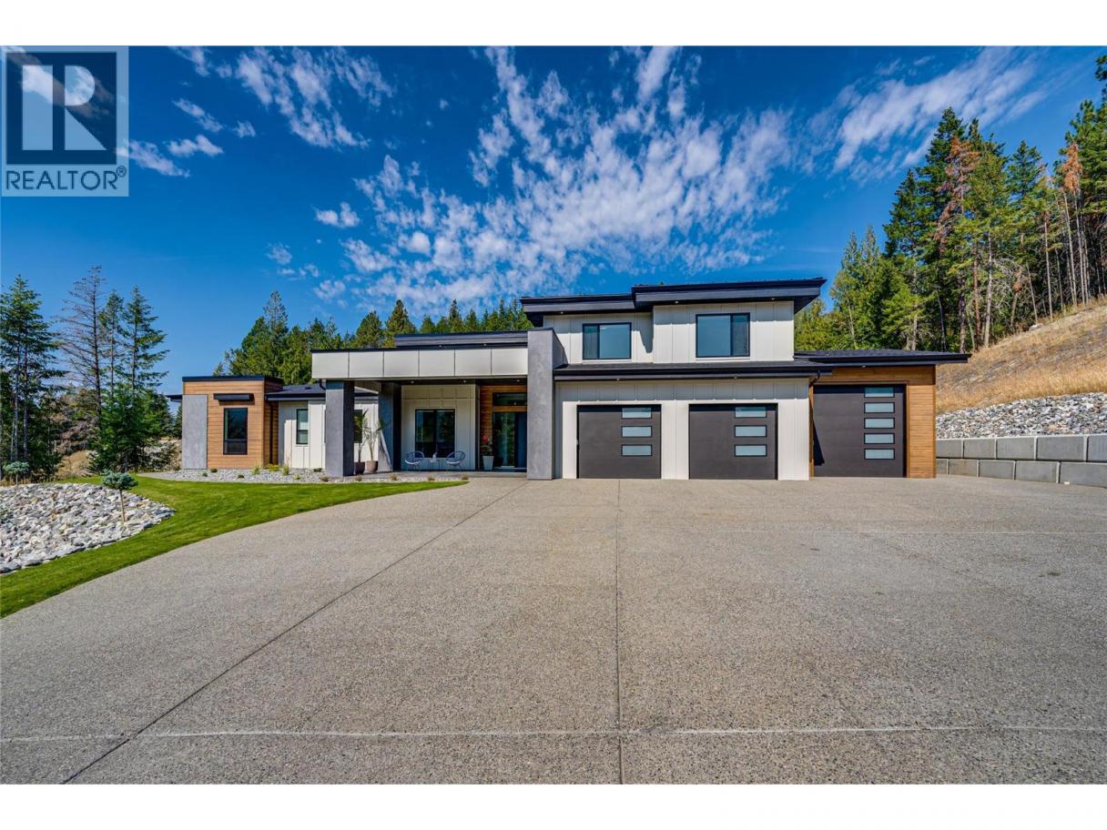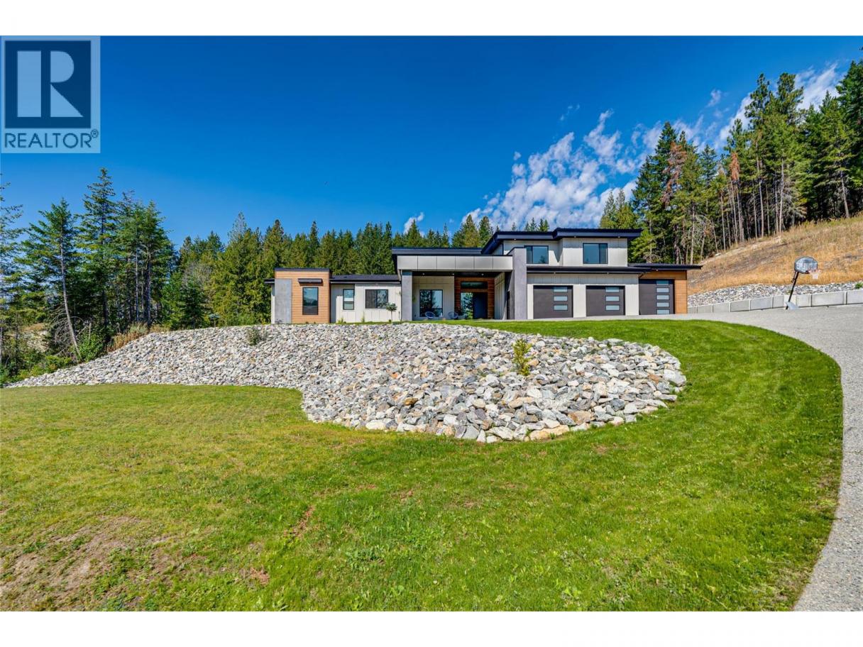 An unexpectedly intuitive fusion of the Okanagan Valley’s rustic natural beauty and the calming clean lines of modern design, this stunning 6-bedroom new construction property on nearly 5 acres that allows for a secondary suite or carriage house, boasts incredible privacy with room for expansion. Ski lovers will adore the location, mere minutes from Silver Star Resort. Upon arrival, over 8000 square feet of exposed aggregate driveway and walkways welcome you, seamlessly complimented by contemporary and low-maintenance landscaping. Upon entry, an expansive and open concept living, dining, and kitchen area unveils itself with custom millwork and cabinetry throughout and gleaming premium engineered hardwood underfoot. The gourmet kitchen impresses with bespoke design, an oversized centre island, quartz countertops, stainless steel appliances, and slatted wood accents. A main floor primary suite comes complete with a walk-in closet and ensuite bathroom with double vanity. Two bedrooms plus an additional office or third bedroom share a superbly appointed full hall bathroom. Upstairs two more bedrooms a shared full bathroom and a bonus room could be utilized for a number of purposes. Move right into this marBuilt by Avalanche Construction, electric in-floor heating in tiled areas. Roughed in for future pool. For more informationor to submit an offer please contact Laura Reners at 250-307-4596 or laura@saltfowler.com.vellous home and imagine the possibilities for the future, whether you have your sights set on a pool or large shop, the expansive property is ready to serve. (id:6769)