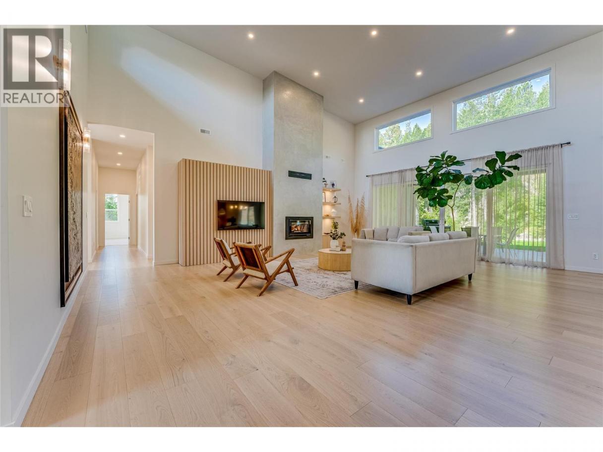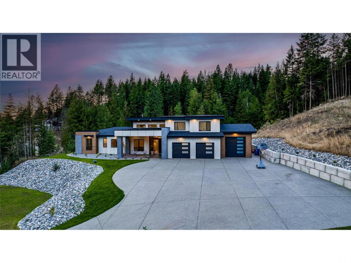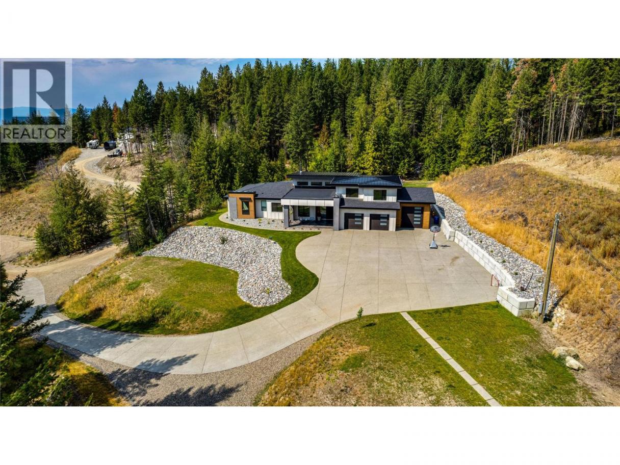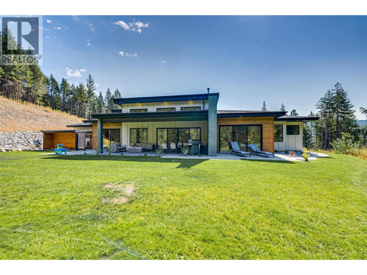 An unexpectedly intuitive fusion of the Okanagan Valley’s rustic natural beauty and the calming clean lines of modern design, this stunning 6-bedroom new construction property on nearly 5 acres that allows for a secondary suite or carriage house, boasts incredible privacy with room for expansion. Ski lovers will adore the location, mere minutes from Silver Star Resort. Upon arrival, over 8000 square feet of exposed aggregate driveway and walkways welcome you, seamlessly complimented by contemporary and low-maintenance landscaping. Upon entry, an expansive and open concept living, dining, and kitchen area unveils itself with custom millwork and cabinetry throughout and gleaming premium engineered hardwood underfoot. The gourmet kitchen impresses with bespoke design, an oversized centre island, quartz countertops, stainless steel appliances, and slatted wood accents. A main floor primary suite comes complete with a walk-in closet and ensuite bathroom with double vanity. Two bedrooms plus an additional office or third bedroom share a superbly appointed full hall bathroom. Upstairs two more bedrooms a shared full bathroom and a bonus room could be utilized for a number of purposes. Move right into this marBuilt by Avalanche Construction, electric in-floor heating in tiled areas. Roughed in for future pool. For more informationor to submit an offer please contact Laura Reners at 250-307-4596 or laura@saltfowler.com.vellous home and imagine the possibilities for the future, whether you have your sights set on a pool or large shop, the expansive property is ready to serve. (id:6769)