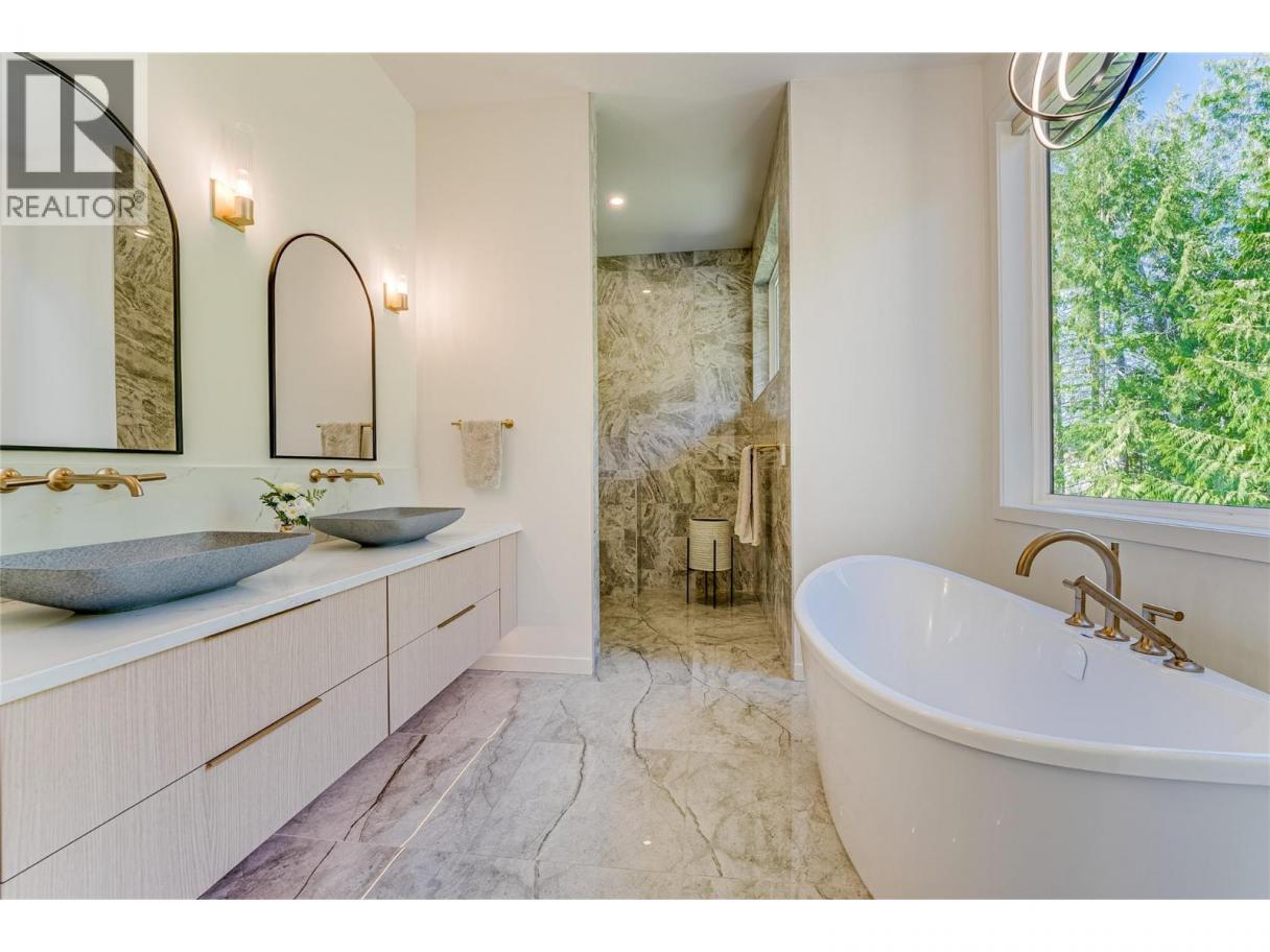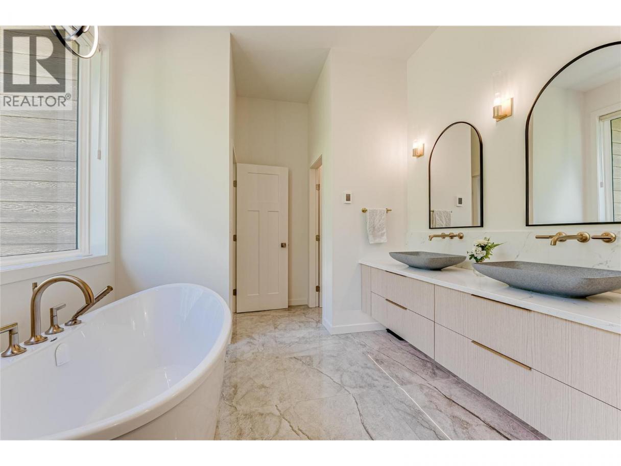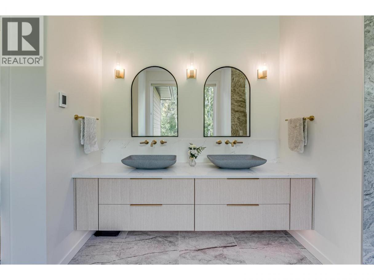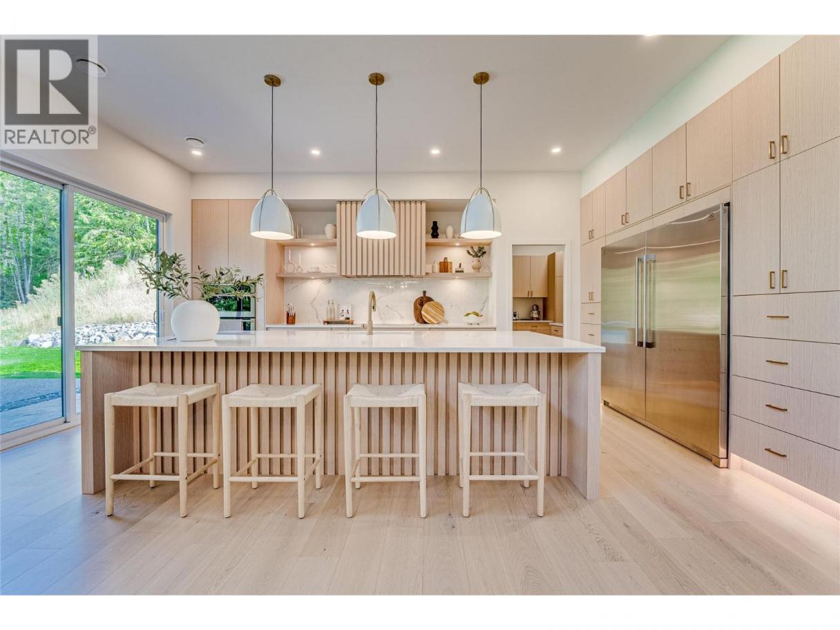 An unexpectedly intuitive fusion of the Okanagan Valley’s rustic natural beauty and the calming clean lines of modern design, this stunning 6-bedroom new construction property on nearly 5 acres that allows for a secondary suite or carriage house, boasts incredible privacy with room for expansion. Ski lovers will adore the location, mere minutes from Silver Star Resort. Upon arrival, over 8000 square feet of exposed aggregate driveway and walkways welcome you, seamlessly complimented by contemporary and low-maintenance landscaping. Upon entry, an expansive and open concept living, dining, and kitchen area unveils itself with custom millwork and cabinetry throughout and gleaming premium engineered hardwood underfoot. The gourmet kitchen impresses with bespoke design, an oversized centre island, quartz countertops, stainless steel appliances, and slatted wood accents. A main floor primary suite comes complete with a walk-in closet and ensuite bathroom with double vanity. Two bedrooms plus an additional office or third bedroom share a superbly appointed full hall bathroom. Upstairs two more bedrooms a shared full bathroom and a bonus room could be utilized for a number of purposes. Move right into this marBuilt by Avalanche Construction, electric in-floor heating in tiled areas. Roughed in for future pool. For more informationor to submit an offer please contact Laura Reners at 250-307-4596 or laura@saltfowler.com.vellous home and imagine the possibilities for the future, whether you have your sights set on a pool or large shop, the expansive property is ready to serve. (id:6769)