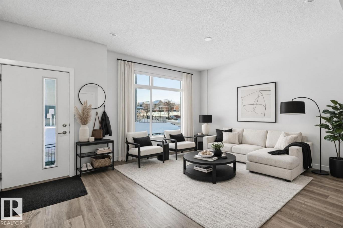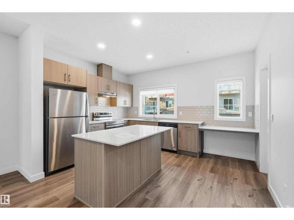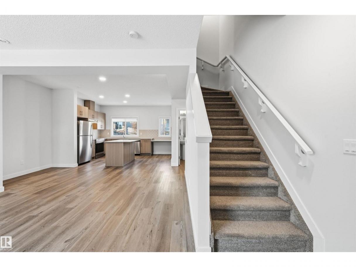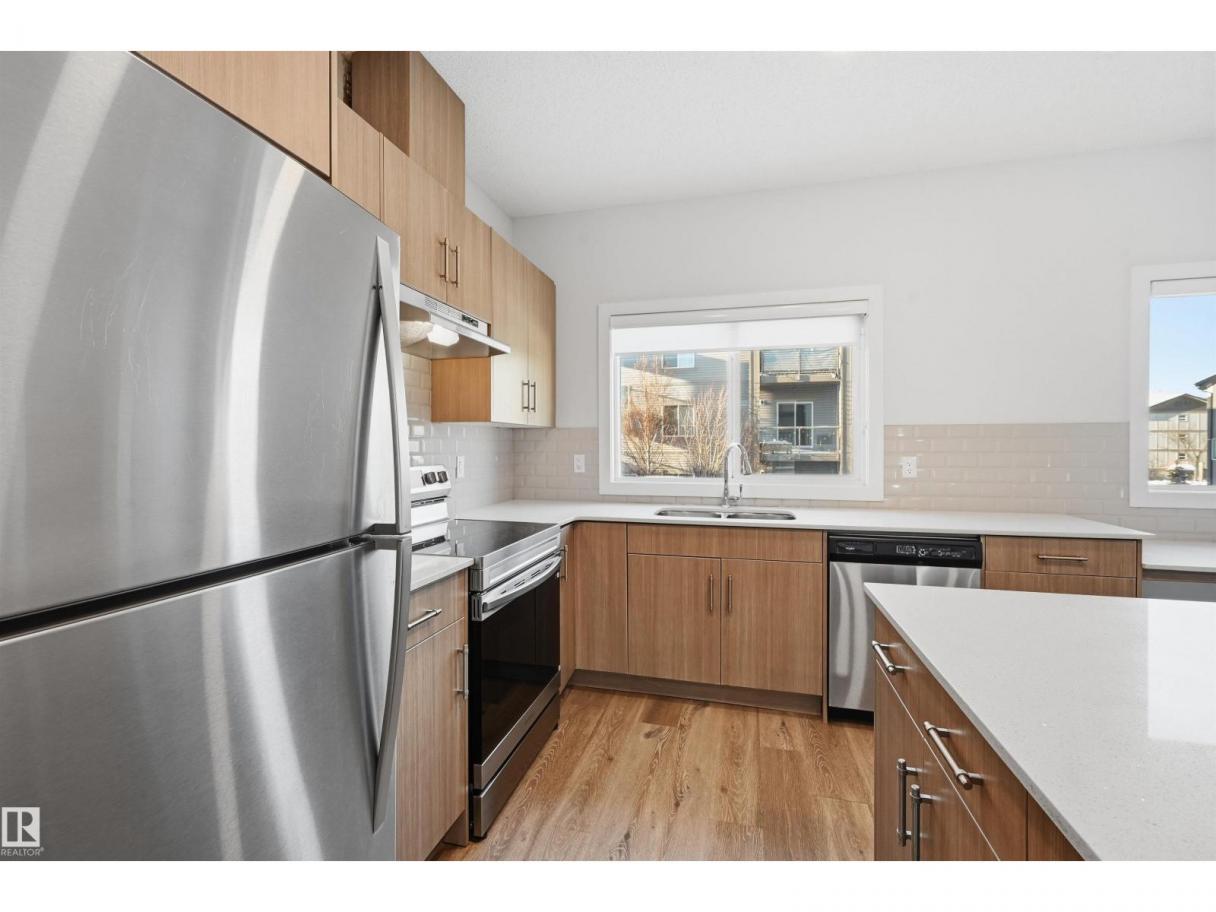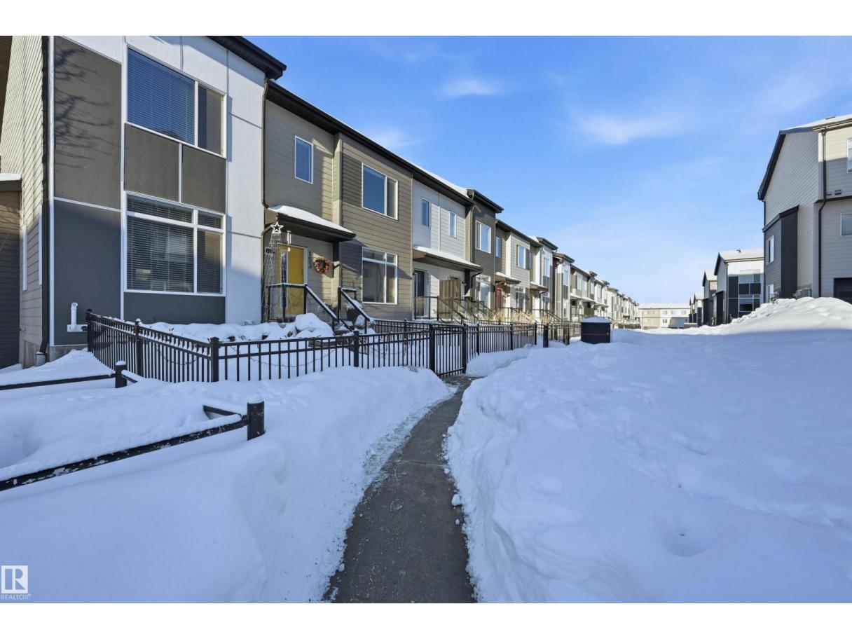 Bright, modern & spacious 3 bed/2.5 bath townhouse w/ double attached garage in the desirable Walker neighborhood. Approx 1450 sf total living space. Perfect for 1st time home owners or investors! Main floor features 9' ceilings, vinyl plank floors & a roomy living room filled with natural light from the large South facing window. Kitchen offers a functional layout, stainless steel appliances, quartz countertops, tons of counter space, walk-in pantry, eating bar, & built in desk. Upper level also has 9' ceilings & large primary bedrm w/ 3pc ensuite & walk in closet. Two other well sized bedrms, 4pc main bath & laundry complete this level. Lower level flex room is perfect for an office, play rm, exercise area, or extra storage space! Energy-efficient mechanical including HRV & tankless hot water for a lower utility bill. This well maintained complex offers visitor parking and nearby walking trails & lake. Conveniently close to shopping, schools & public transit. Quick access to commuter routes incl Henday (id:6769)