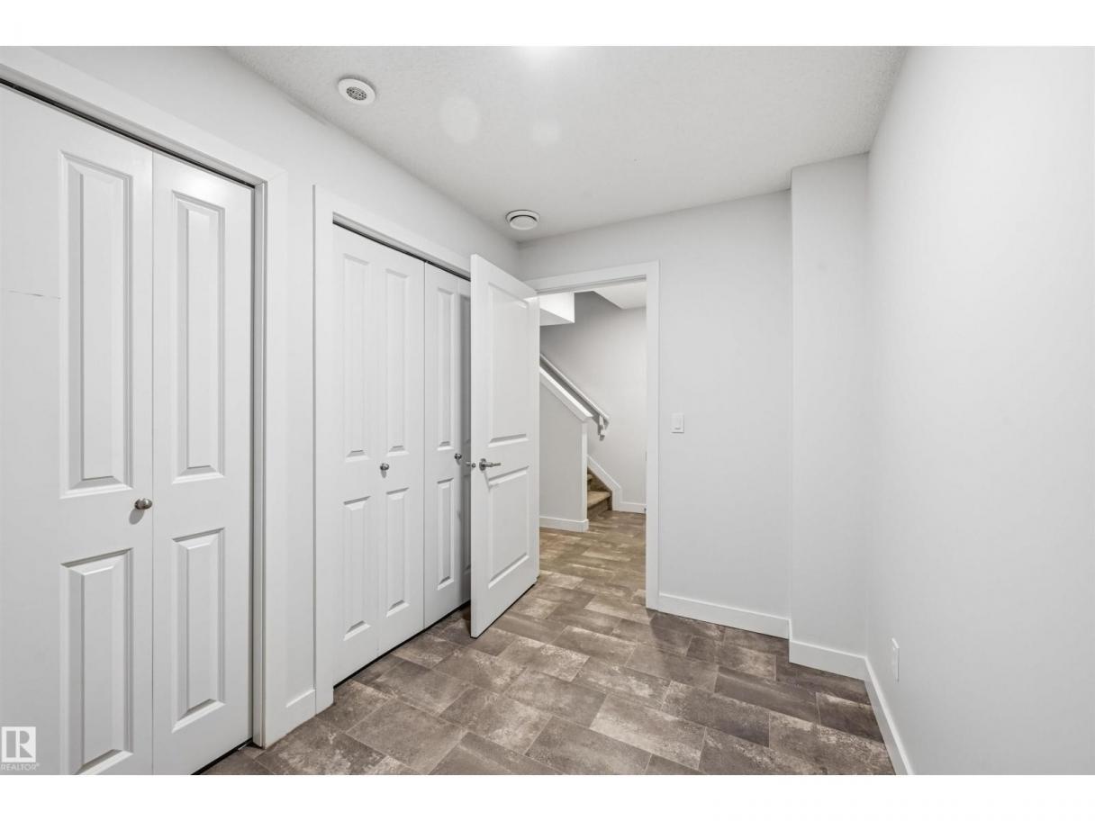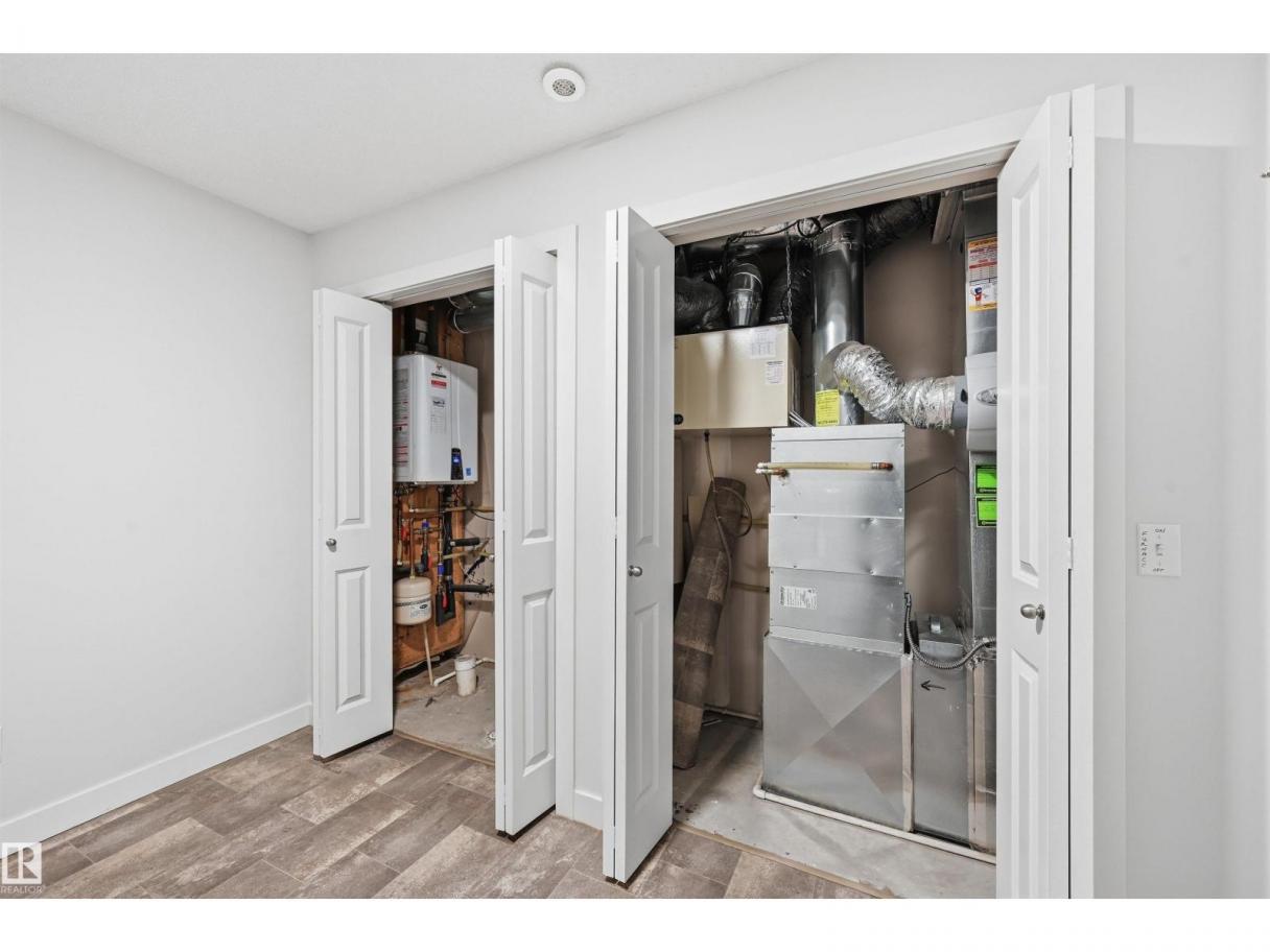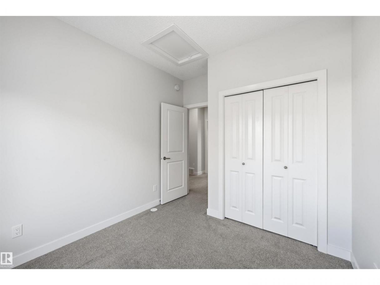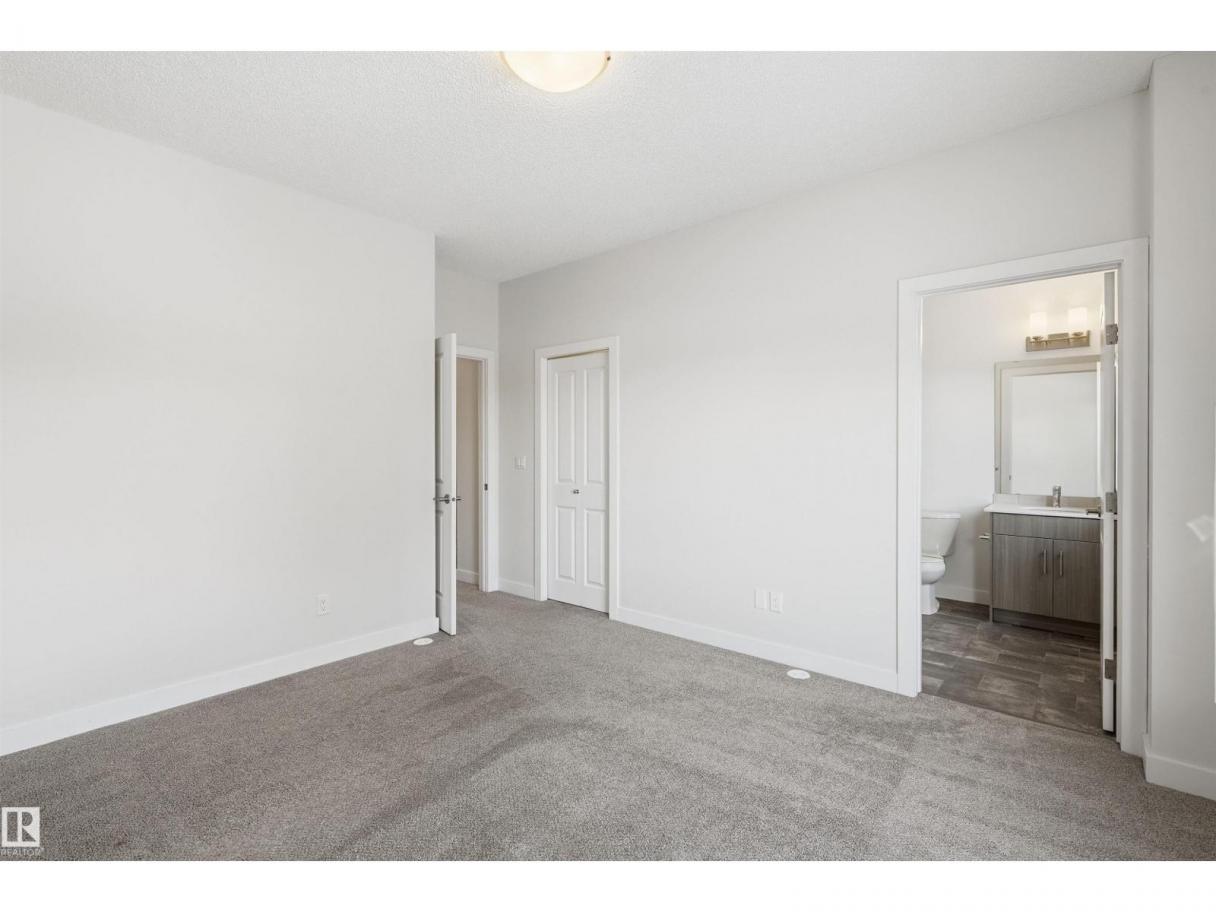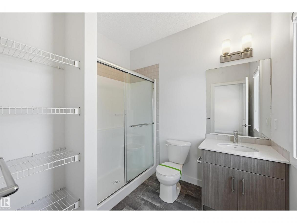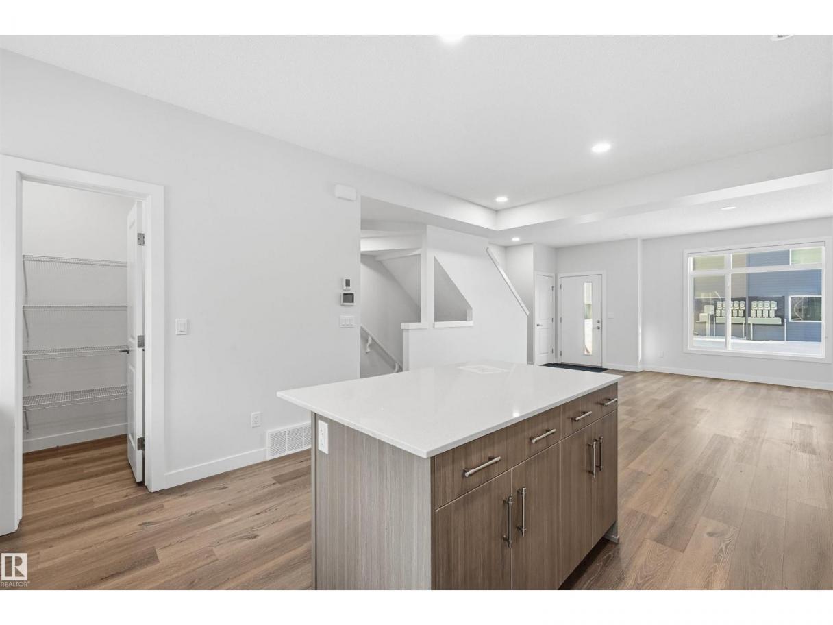 Bright, modern & spacious 3 bed/2.5 bath townhouse w/ double attached garage in the desirable Walker neighborhood. Approx 1450 sf total living space. Perfect for 1st time home owners or investors! Main floor features 9' ceilings, vinyl plank floors & a roomy living room filled with natural light from the large South facing window. Kitchen offers a functional layout, stainless steel appliances, quartz countertops, tons of counter space, walk-in pantry, eating bar, & built in desk. Upper level also has 9' ceilings & large primary bedrm w/ 3pc ensuite & walk in closet. Two other well sized bedrms, 4pc main bath & laundry complete this level. Lower level flex room is perfect for an office, play rm, exercise area, or extra storage space! Energy-efficient mechanical including HRV & tankless hot water for a lower utility bill. This well maintained complex offers visitor parking and nearby walking trails & lake. Conveniently close to shopping, schools & public transit. Quick access to commuter routes incl Henday (id:6769)