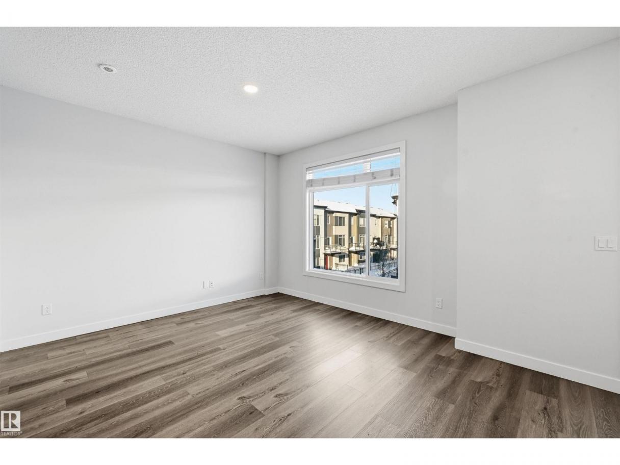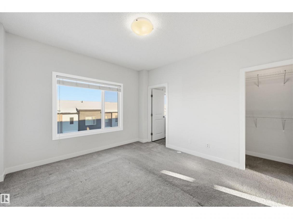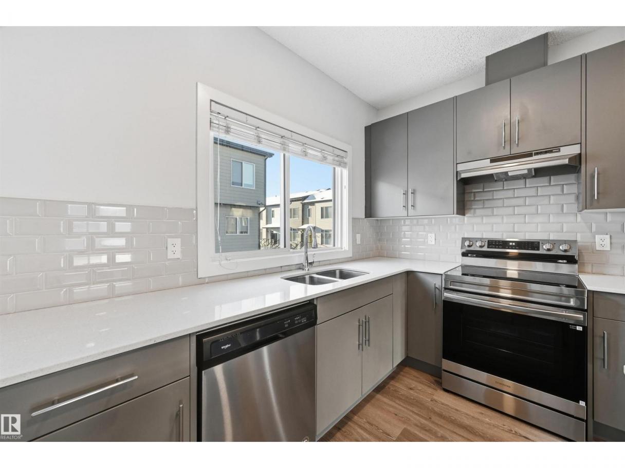 Bright, modern & spacious 3 bed/2.5 bath townhouse w/ double attached garage in the desirable Walker neighborhood. 1600 sf total living space. Perfect for 1st time home owners or investors! Main floor features 9' ceilings, vinyl plank floors & a roomy living rm filled with natural light. Kitchen offers a functional layout, stainless steel appliances, quartz countertops, tons of counter space, walk-in pantry, eating bar, & built in desk. Upper level also has 9' ceilings & large primary bedrm w/ 3pc ensuite & walk in closet. Two other well sized bedrms, 4 pc main bath & laundry complete this level. Ground floor flex room w/ large window is perfect for an office, play rm, exercise area, or extra storage space! Energy-efficient mechanical including HRV & tankless hot water for a lower utility bill. This well maintained complex offers visitor parking and nearby walking trails & lake. Conveniently close to shopping, schools & public transit. Quick access to commuter routes incl Henday! (id:6769)