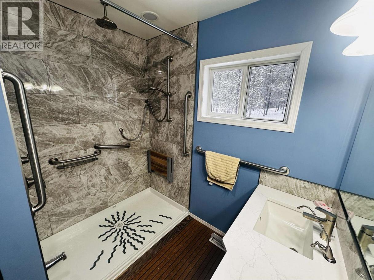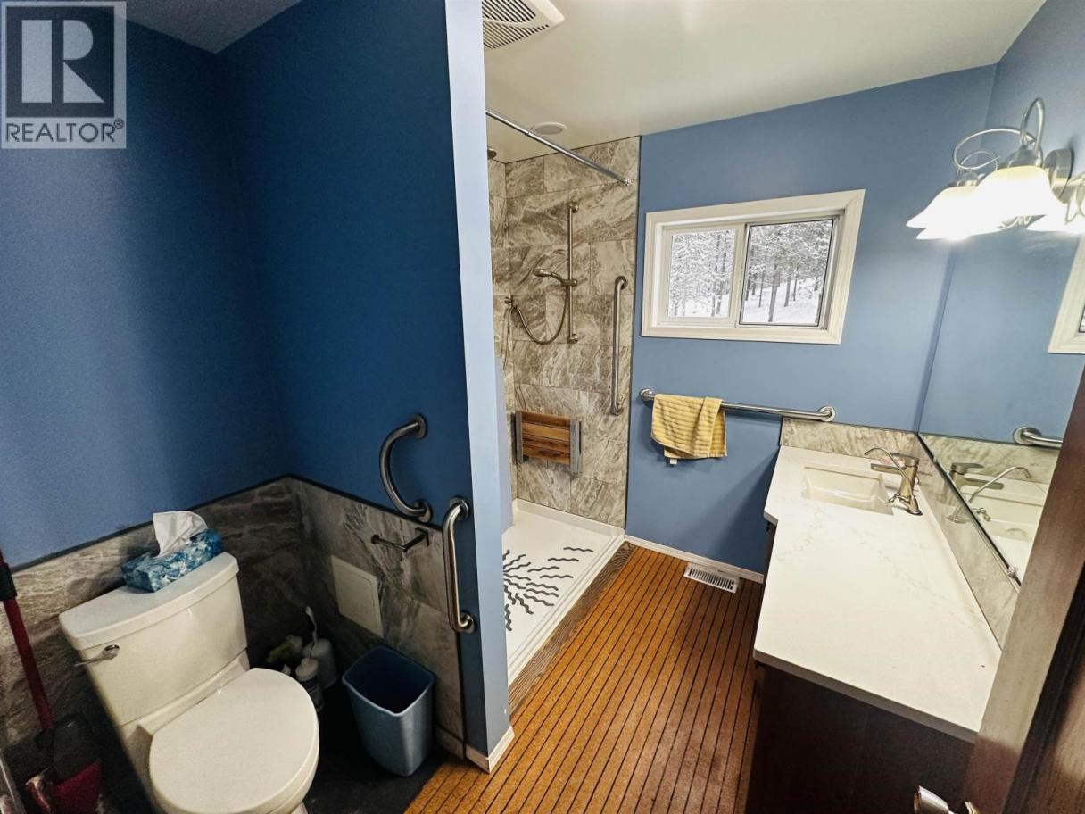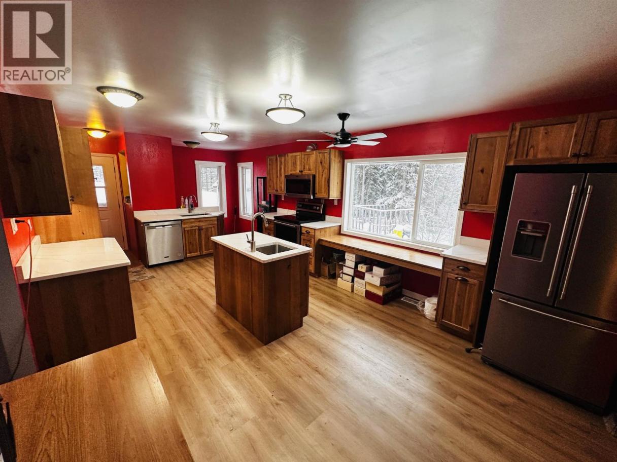 Four-bedroom, three-bath home set on over five acres in a private, treed setting just minutes from town. The main floor features a spacious open-concept layout with a beautiful newer kitchen complete with quartz countertops. Step outside to a large deck, ideal for entertaining or enjoying the peaceful surroundings. Multiple outbuildings offer excellent storage and versatility, with plenty of room to build your dream shop or expand. Enjoy quiet rural living while remaining within 10 minutes of town. (id:6769)