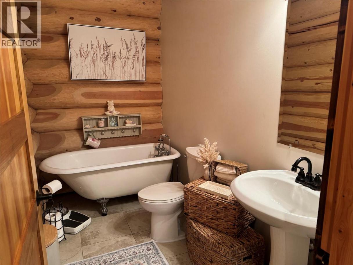 Discover this stunning custom log home, built in 2011 and perfectly set on 2.51 acres with privacy, charm, and modern updates. Designed with an open-concept layout, the main floor features a spacious great room, a beautiful kitchen with eating bar, two bedrooms, and French doors leading to a full-length covered deck with southeast views. Upstairs, the oversized primary retreat offers a walk-in closet, ensuite, and custom king log bed, while the loft overlooking the great room provides a bright studio or office space. The fully finished lower level includes a media/games room, storage, and a sealed cold room. Recent updates include fresh paint, a newly stained deck, two 500-gallon water tanks, a propane stove, and newer washer/dryer. Outside, the landscaped grounds feature a tranquil fishpond, while the upper bench area—accessible by separate driveway or quad trail—includes a woodshed, chicken house, and pole barn. In March 2025, a brand-new 30x40x14 shop with 200-amp service was added, perfect for hobbies, storage, or business use, along with a brand-new 8-foot privacy fence. With abundant parking and space for all your lifestyle needs, this immaculate property combines rustic elegance with modern convenience—move-in ready and waiting for you. (id:6769)