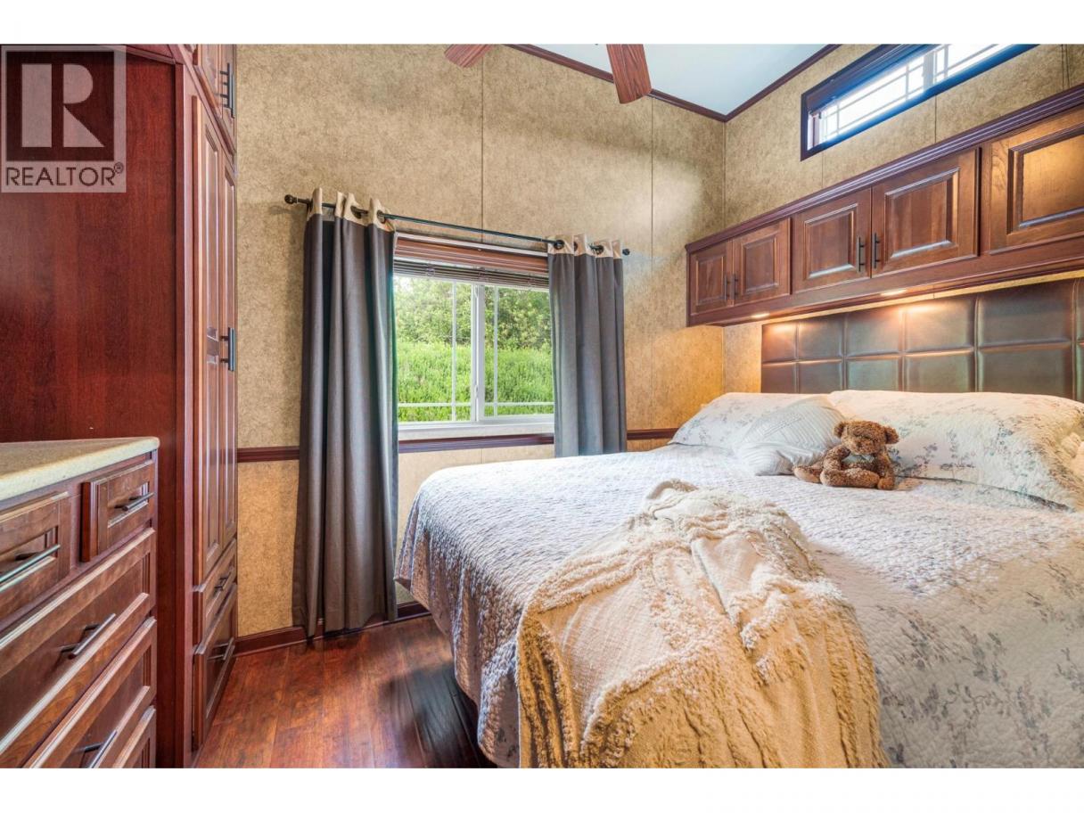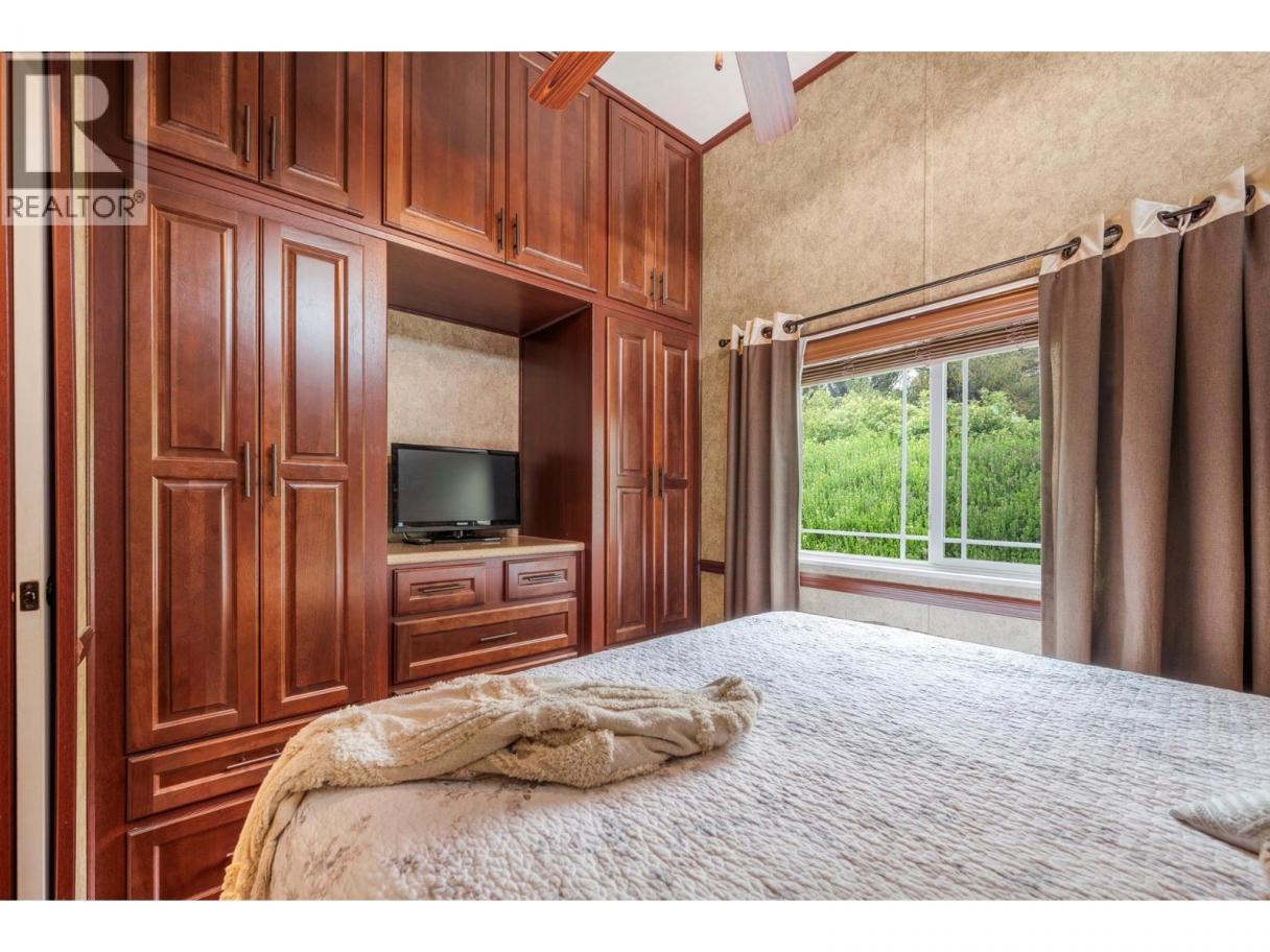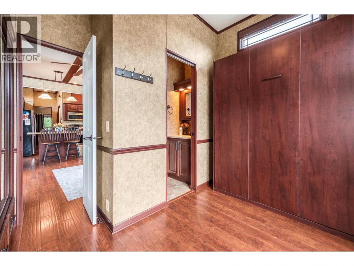 Come check out this custom-designed 2-bedroom, 1.5-bath home that is move-in ready and set on a large lot in the highly sought-after Swan Lake RV Resort community. Offering the perfect blend of comfort, community, and resort-style living, this park model home is ideal for your lifestyle! Enjoy a great layout with an open-concept living area located between the two bedrooms. The front bedroom with a fold down murphy bed includes a convenient 2-piece ensuite, while the second bedroom at the rear offers additional privacy. The open kitchen, dining and living area create a welcoming space for family gatherings, and a moveable partition wall allows for an additional sleeping area when needed. Outside you have a large yard with room to park your boat, water toys, and extra vehicles, along with a well built shed with power and storage for your bikes and other items. You have extra room to add a gazebo, or whatever else you may prefer. This home is located close to the community pool, and a short walk from the shore of Swan Lake where you can bring your kayak, or paddle boards. This family friendly community features a clubhouse, pool, hot tub, a well equipped workshop, and regular social events like Friday afternoon Happy Hours - making it easy to feel right at home. This residence offers a low-maintenance, lock-and-leave lifestyle for snowbirds, or just a simpler life. Don’t miss this unique opportunity—book your showing today! (id:6769)