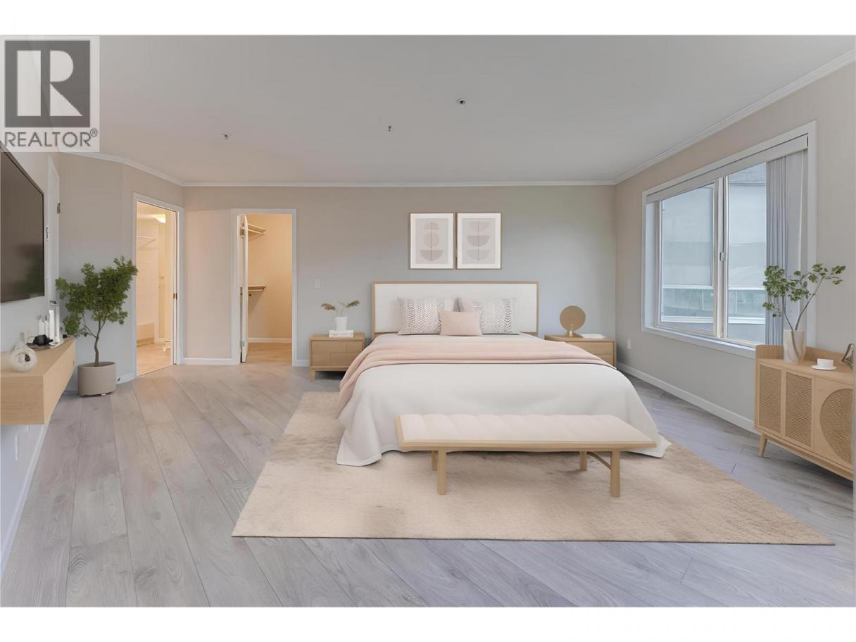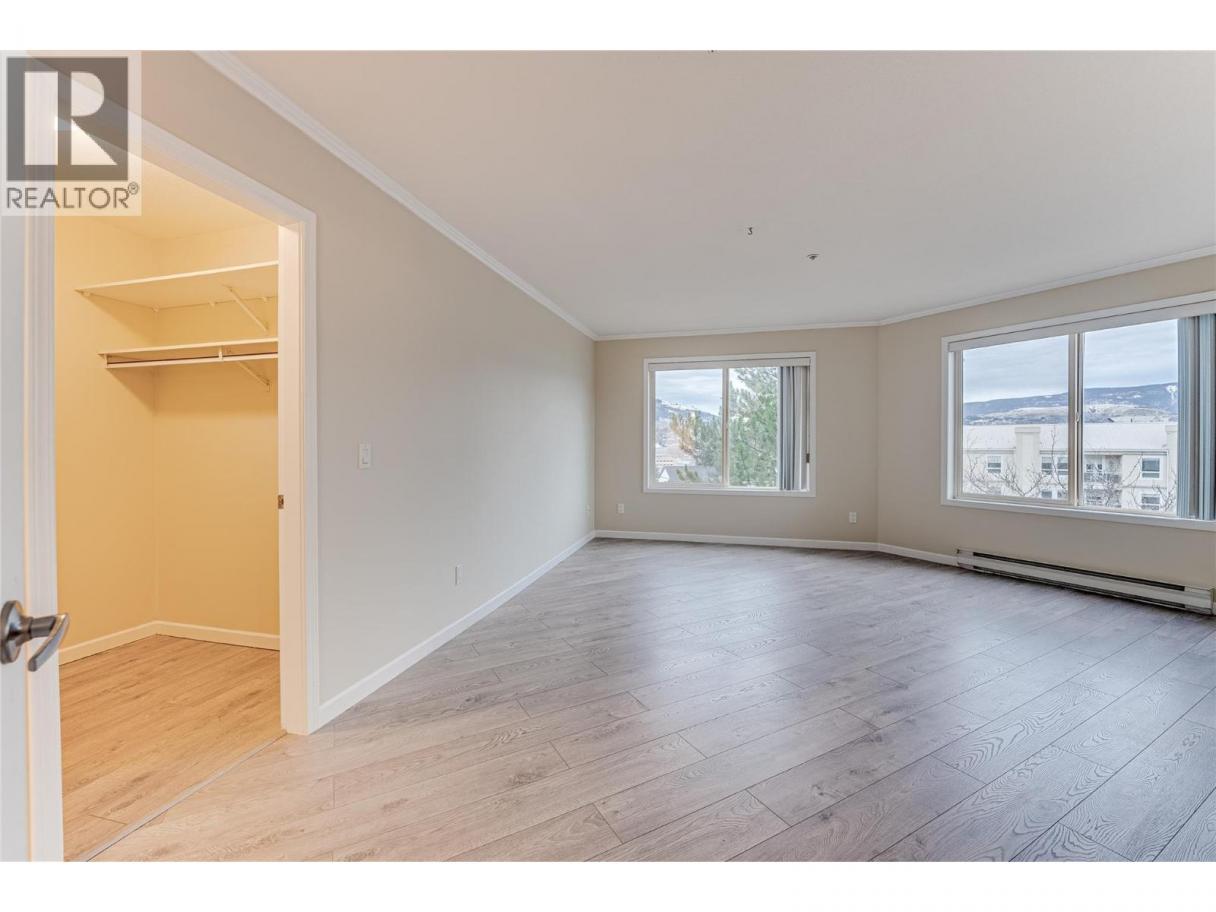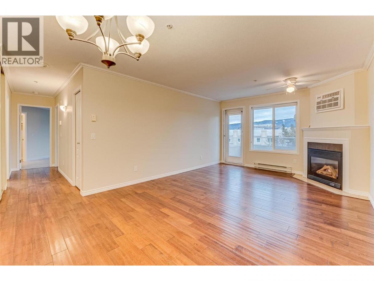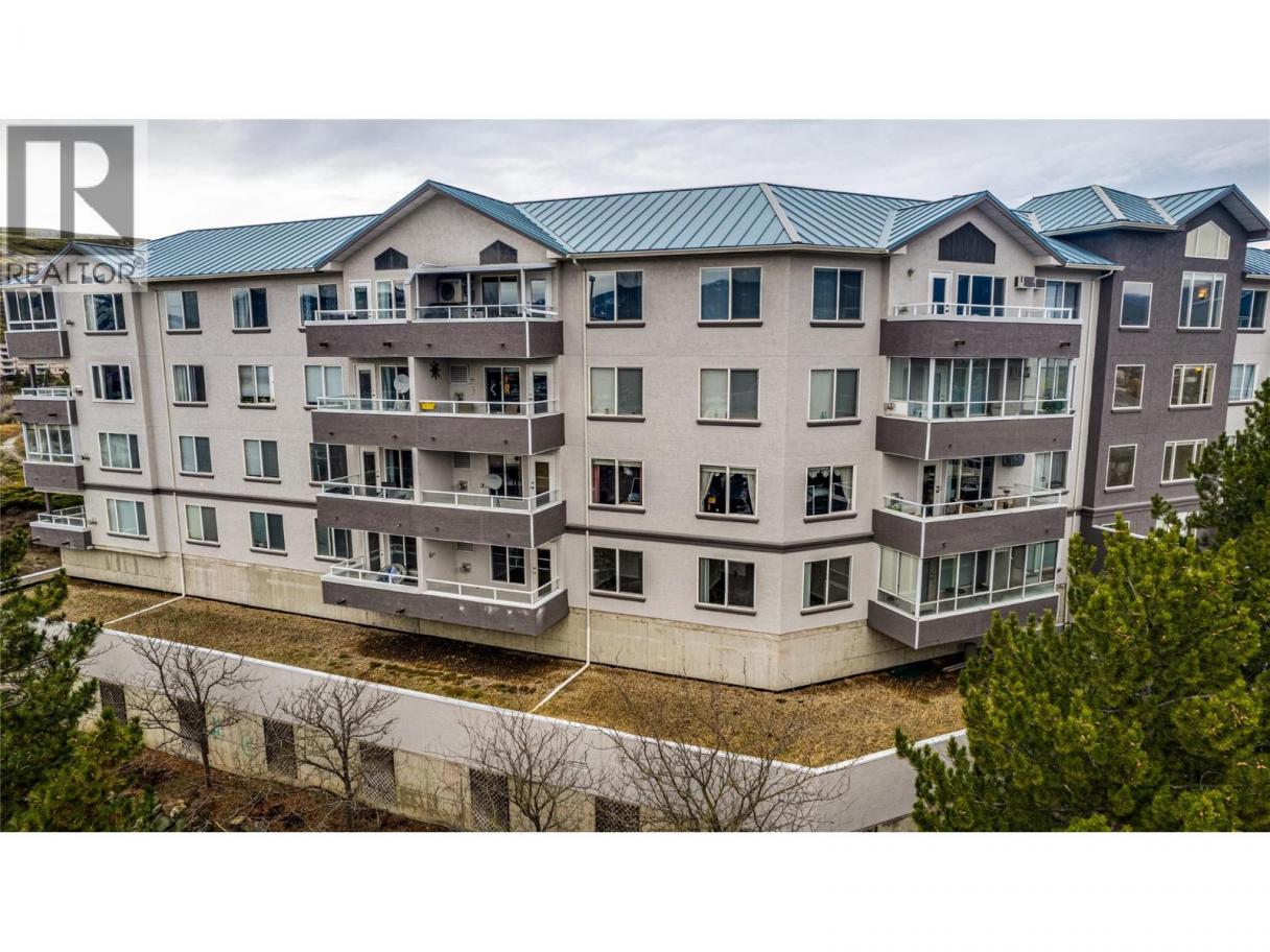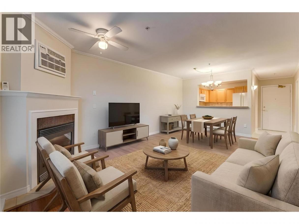Welcome to Unit #102 at Imperial Ridge. With a fresh coat of paint, recently updated flooring, and a lovely kitchen, this 2-bedroom, 2-bathroom condo is truly move-in ready. The home is located in a well-maintained, all-ages building that has undergone extensive upgrades since 2022, including parkade improvements, building envelope work (windows, decks, stucco), a new elevator, and refreshed hallways with modern carpeting, lighting, and paint. Ideally located just steps from downtown Vernon’s shops, cafes, medical offices, and services, this quiet, south-facing home is filled with natural light and enjoys beautiful city views, with glimpses of Okanagan Lake. The spacious layout offers a modern kitchen with plenty of storage, opening into the dining area and comfortable living room. Enjoy the cozy gas fireplace on cooler days (natural gas included in the strata fee), and in summer relax on your private deck or stay cool with the newer wall-mounted A/C unit. The primary bedroom features a walk-in closet and full ensuite, while the second bedroom and full main bathroom provide flexibility for guests, a home office, or family. In-suite laundry with newer washer and dryer adds everyday convenience. Additional features include one secure underground parking stall, a storage locker, bike storage, and a common room. Strata fees include hot water, water, sewer, garbage, natural gas. Book your showing today! (id:6769)