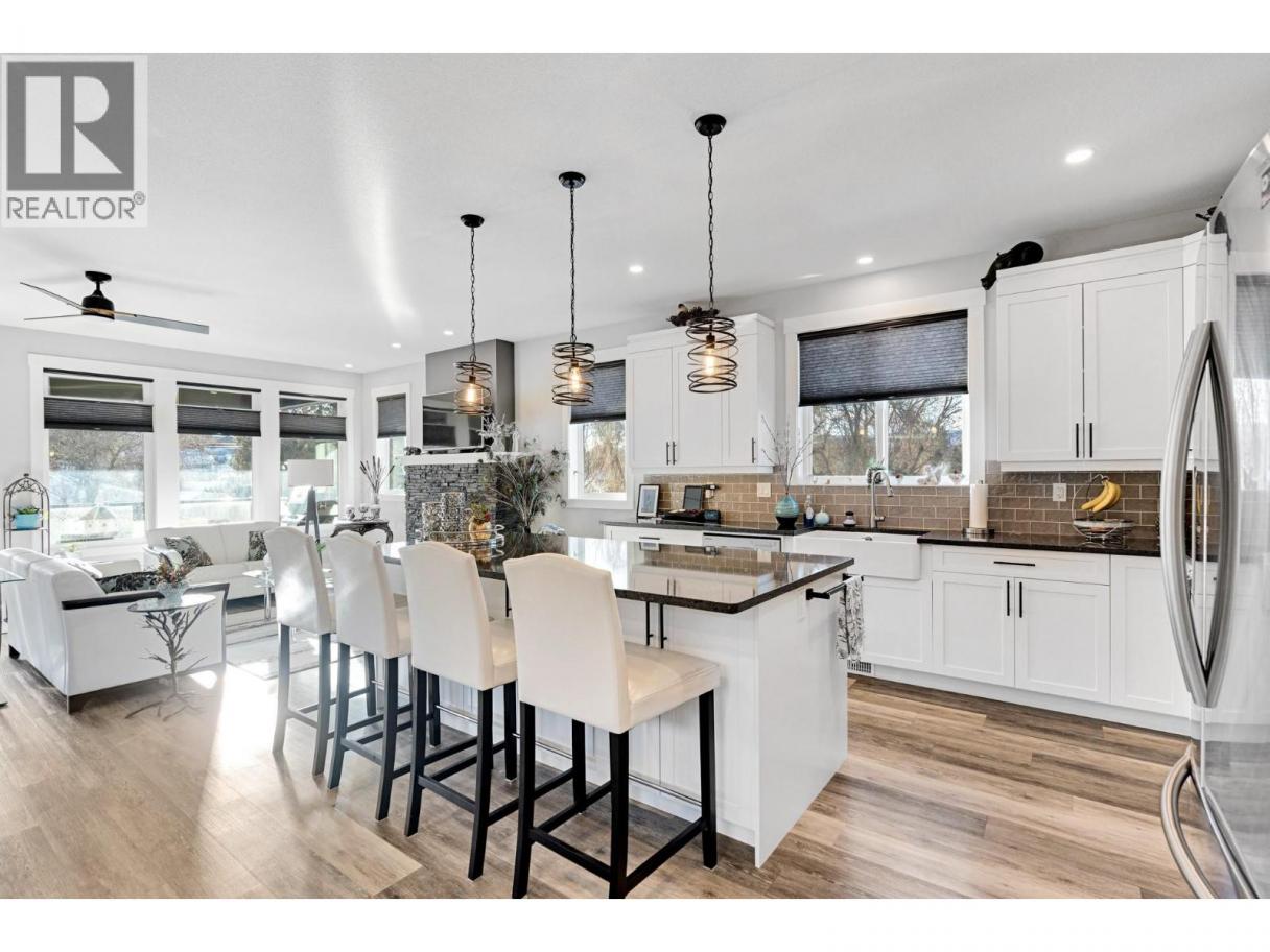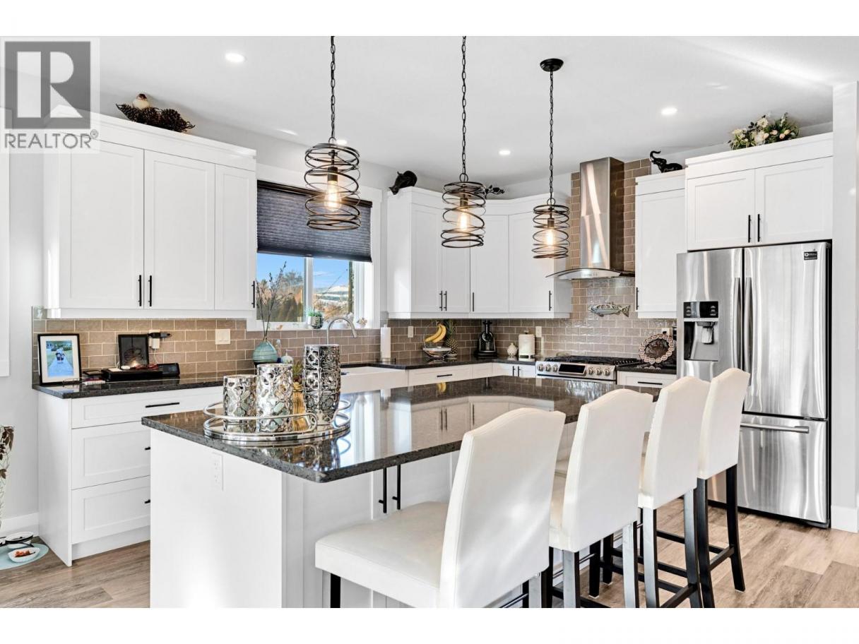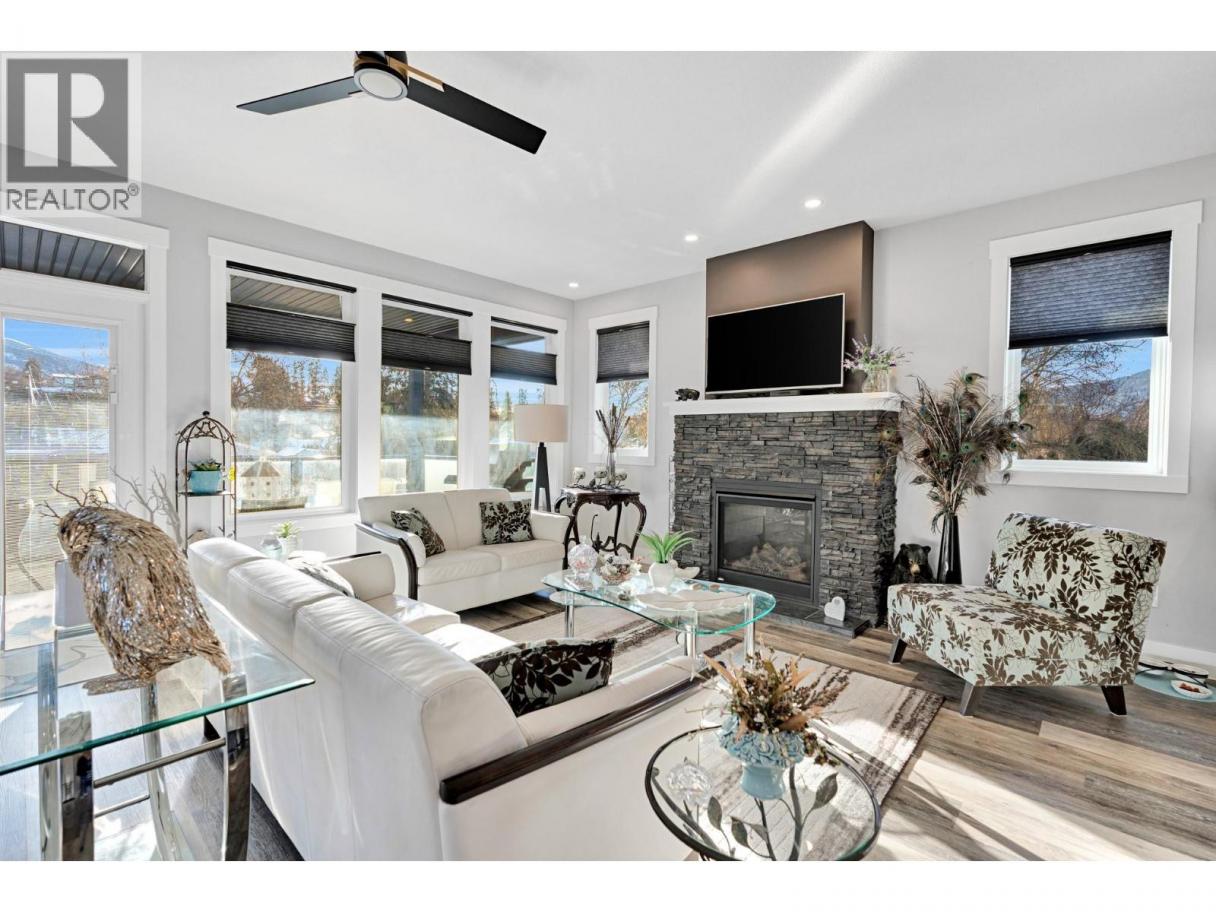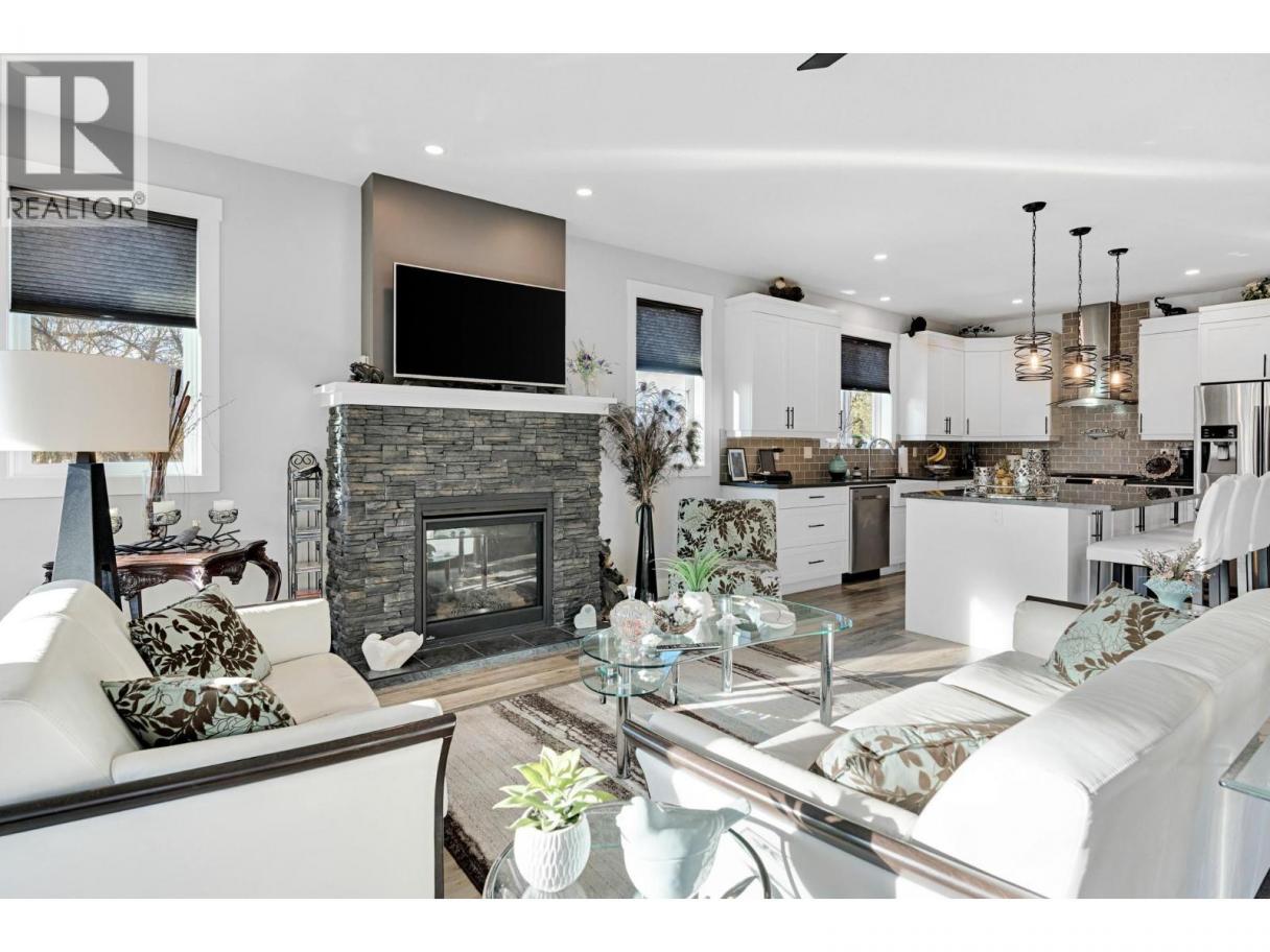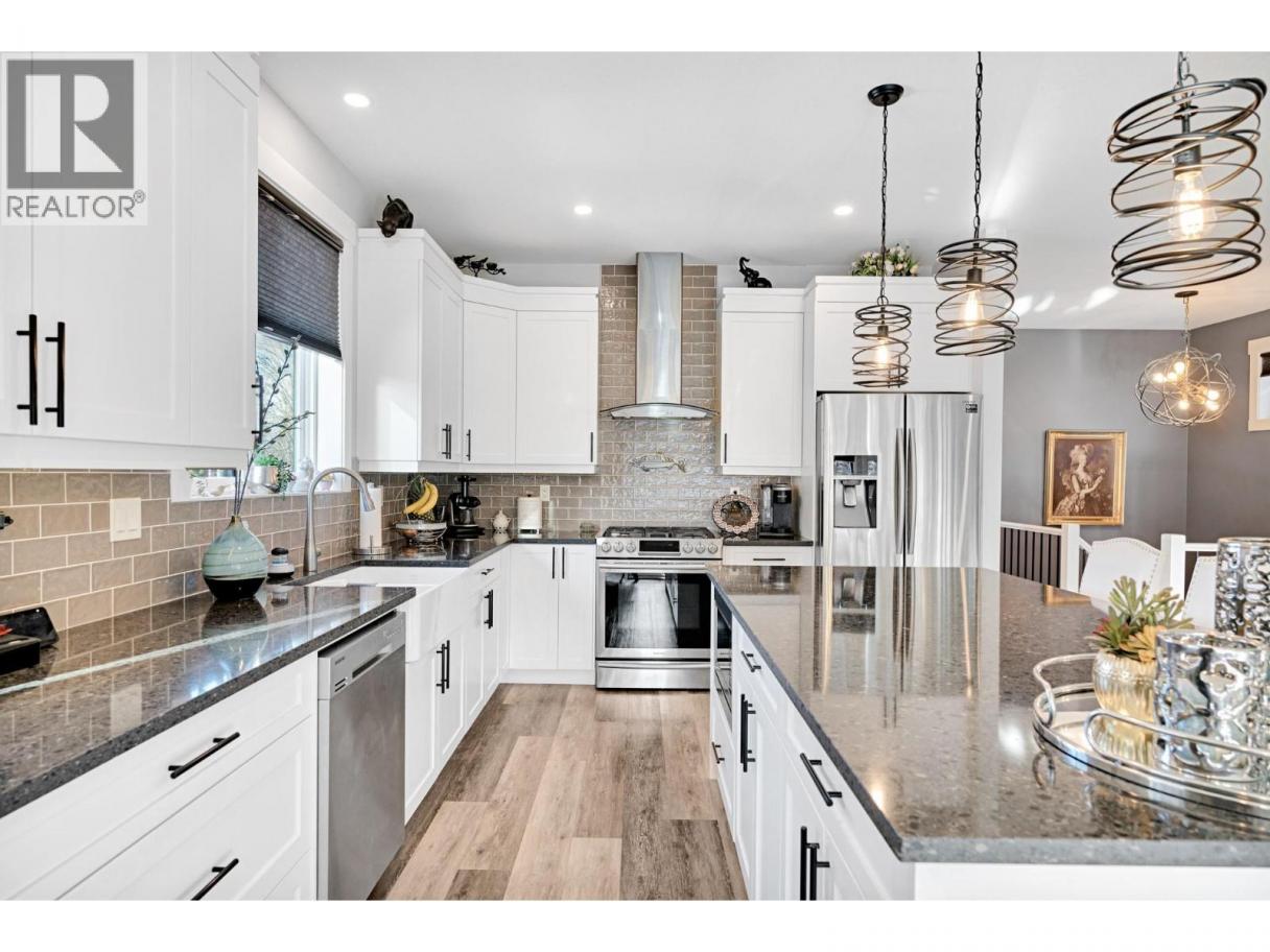 Set on a quiet, tucked-away street in the heart of Armstrong, this beautifully designed home delivers the kind of walkable lifestyle buyers are searching for. Built just eight years ago, the home offers a smart, modern layout with a tandem garage and a bright, open upper level designed for real life and effortless entertaining. The kitchen is a true standout—anchored by a massive island, generous cabinetry, and plenty of workspace for the cook who loves to host. The dining area offers flexible space for a long harvest table, perfect for family dinners or gatherings with friends, and sliding patio doors lead out to a covered deck where mountain views and backyard sunsets steal the show. Downstairs, you’re welcomed by a spacious entryway with a third bedroom, laundry area, and direct access to the garage—ideal for busy households. The legal one-bedroom, one-bathroom suite is bright, well laid out, and offers excellent income potential or comfortable space for extended family. Outside, lane access provides extra parking, while the long front driveway accommodates multiple vehicles, an RV, and even includes an RV plug for added convenience. Located right in the flats of Armstrong, this is a home that checks every box—modern, versatile, income-producing, and perfectly positioned for a walk-everywhere lifestyle. (id:6769)