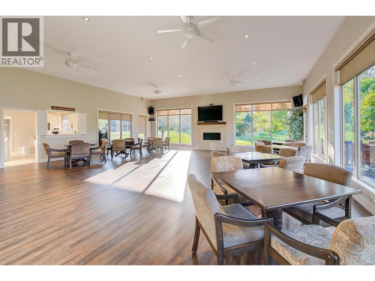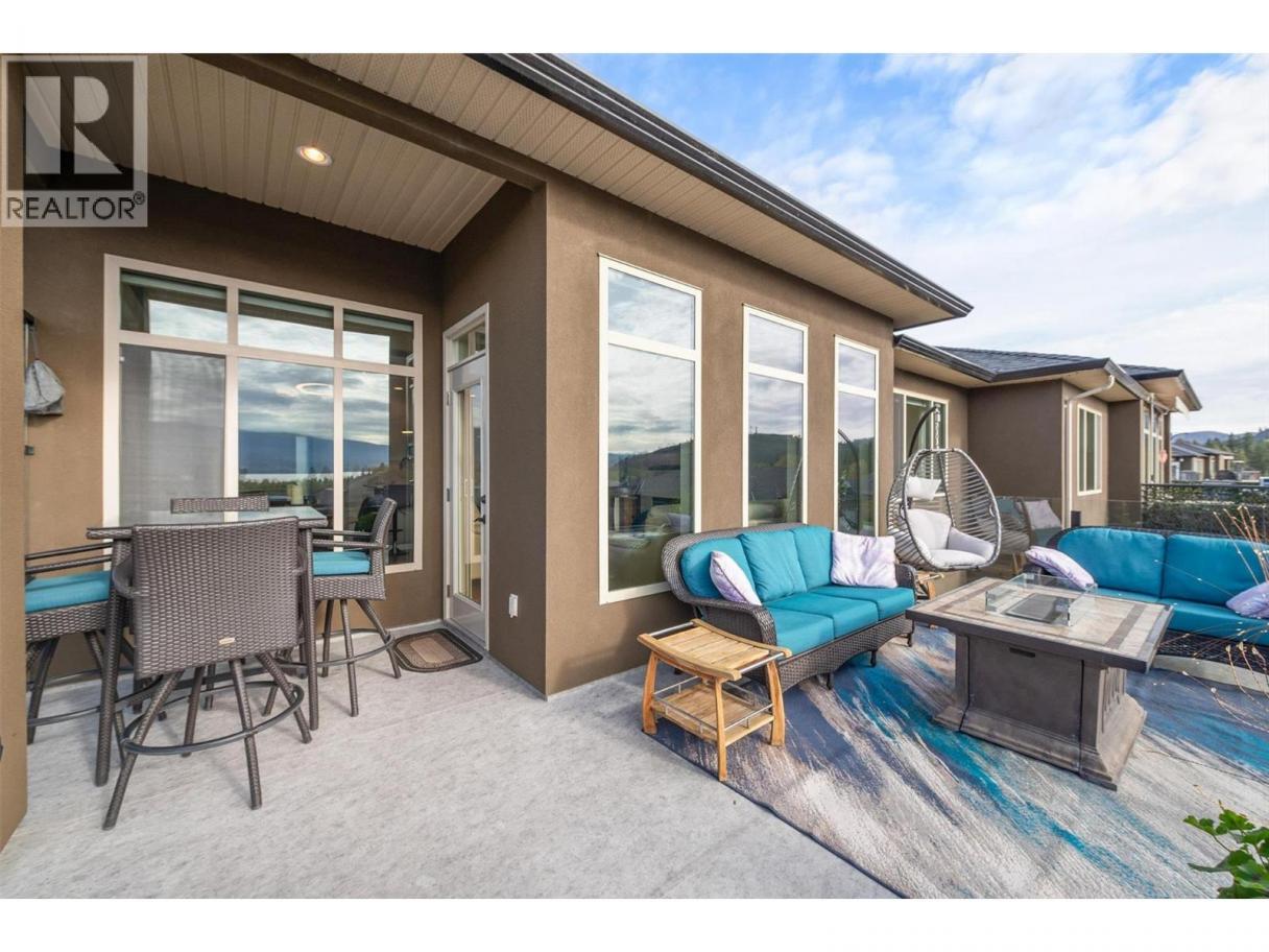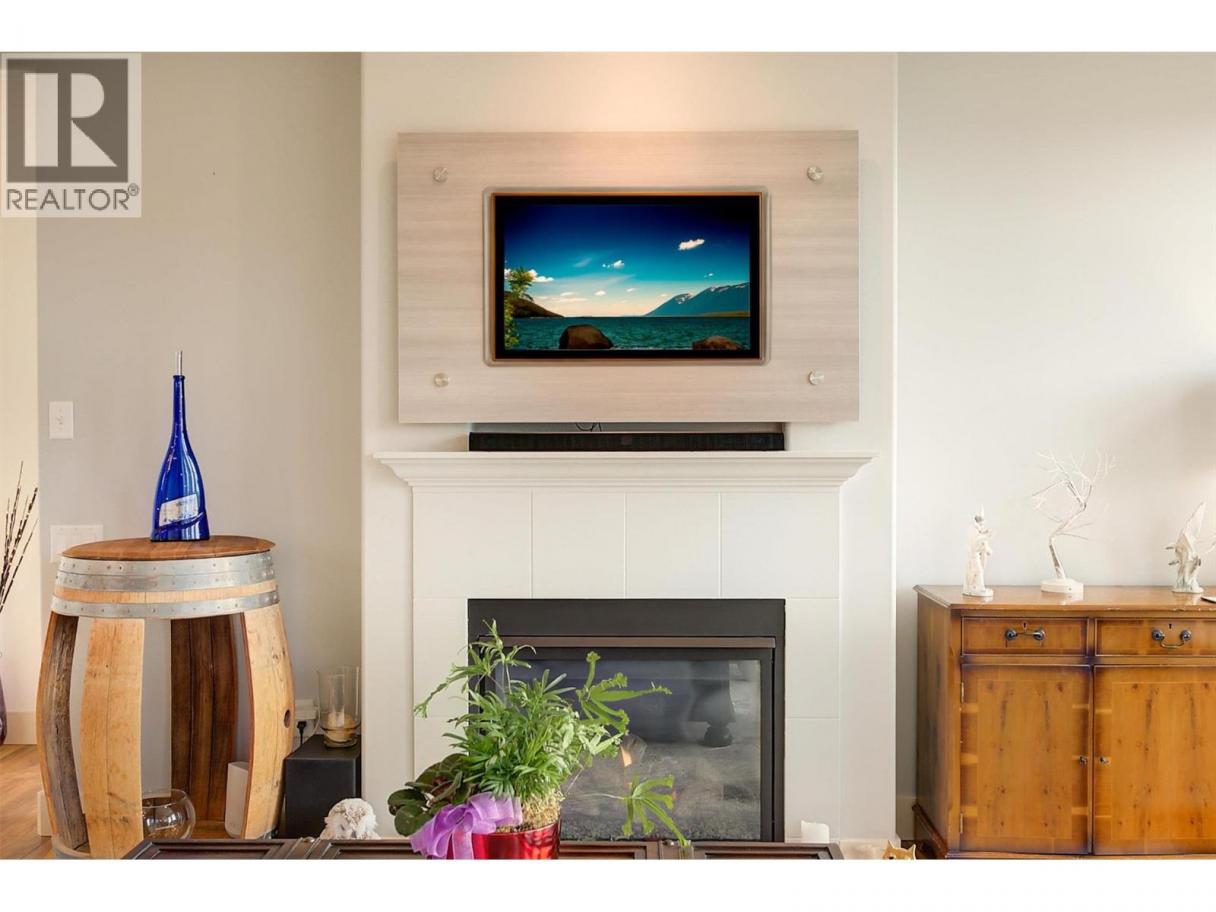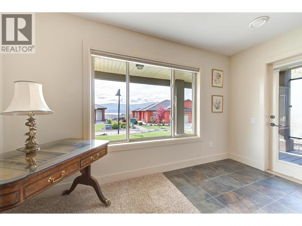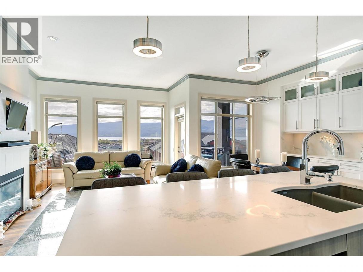 Welcome to this beautifully updated semi-detached townhome in the highly desirable Sonoma Pines community! Step into the stylish, modern custom kitchen featuring white shaker-style soft-close cabinets extended to the ceiling, sleek quartz countertops, stainless steel appliances, a convenient coffee station, a wave-activated Moen kitchen faucet, and updated lighting. The open-concept living room boasts newer laminate flooring, a cozy gas fireplace, and stunning lake views. Adjacent, the dining room includes custom built-in cabinetry and opens onto a spacious deck with topless glass railings—perfect for soaking in the panoramic lake views. The deck also comes equipped with gas hookups for BBQ. The bright and inviting primary bedroom features lake views, newer carpet, a walk-in closet, and a 4-piece ensuite with Corian counters. A second bedroom, full bathroom, and convenient laundry area complete the main floor layout. Downstairs, you'll find a spacious family room with an electric fireplace, a flex room ideal for a home office or gym, a third bedroom, another full bathroom, a large storage room, and access to a lower covered patio with hot tub hookup—perfect for year-round enjoyment. Additional highlights include a double garage, flat driveway, and low-maintenance living in a fantastic location close to golf, shopping, and Okanagan Lake. Sonoma Pines amenities include a clubhouse with gym, library, billiard room, and sizeable social room with a full kitchen available to rent. Secure RV parking is also available on-site. This is the perfect blend of comfort, style, and breathtaking views—don’t miss it. NO PTT, PREPAID LEASE. (id:6769)