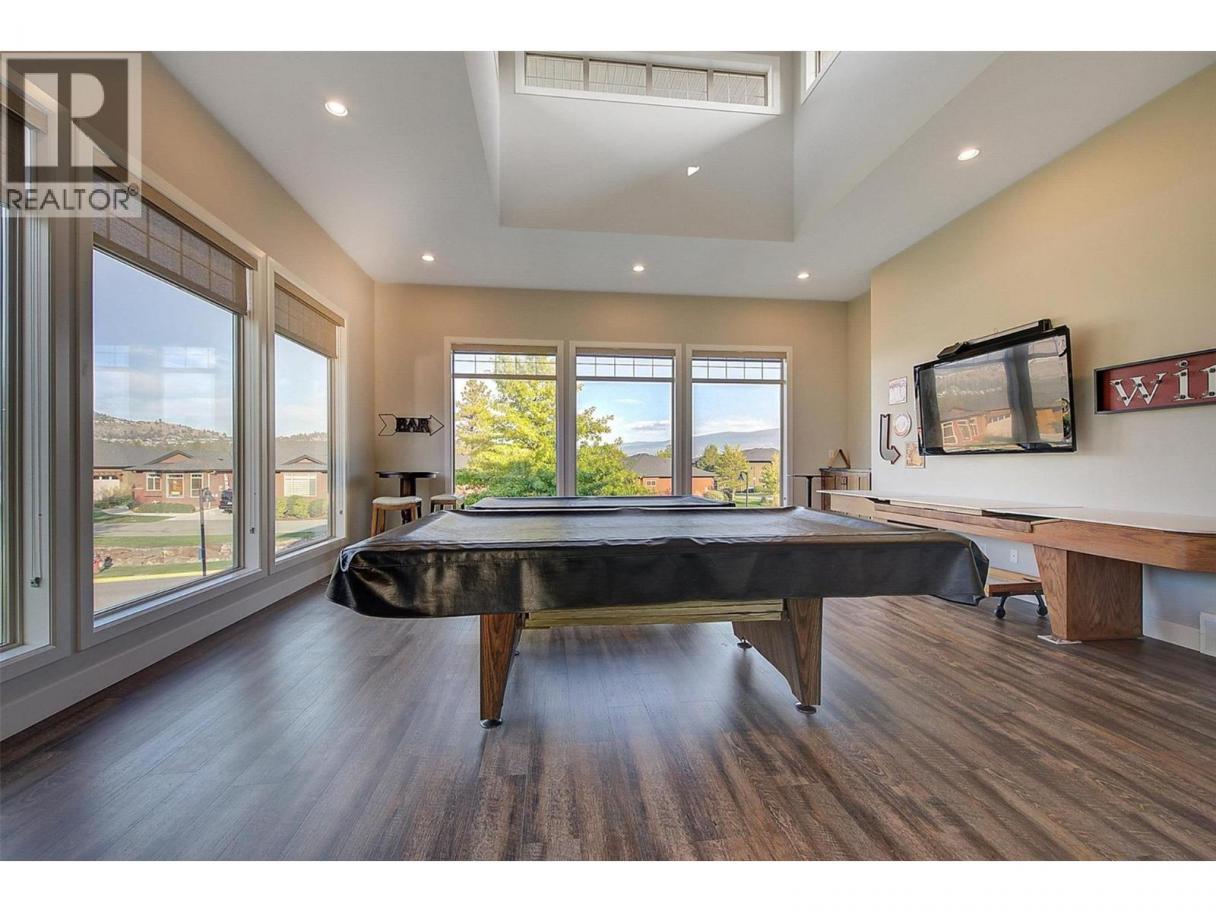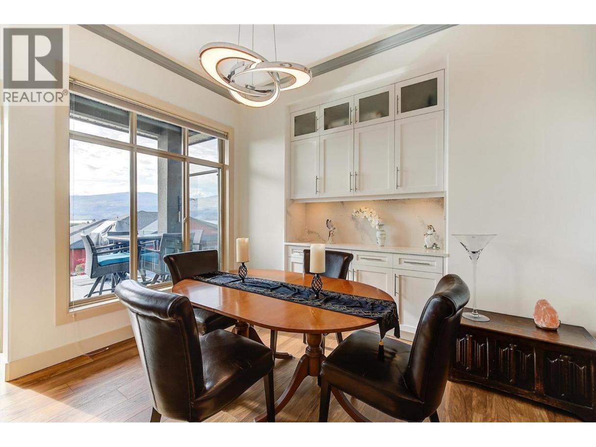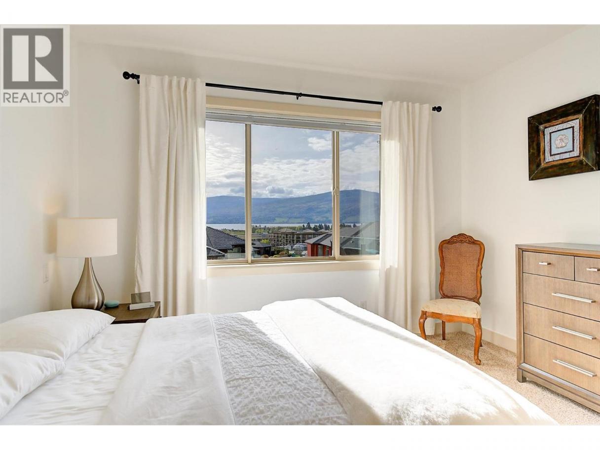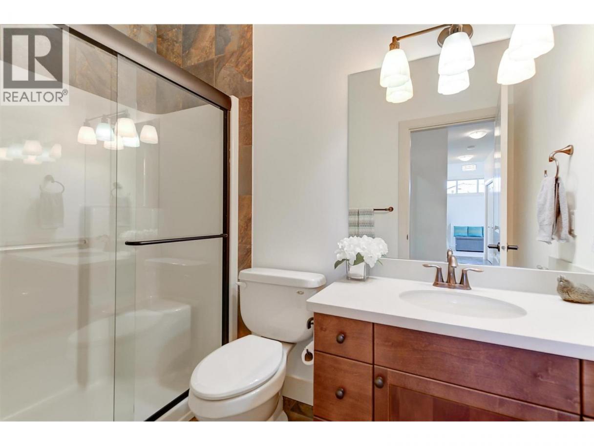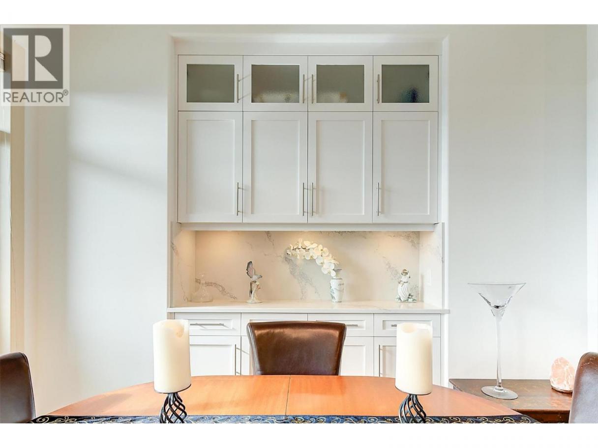 Welcome to this beautifully updated semi-detached townhome in the highly desirable Sonoma Pines community! Step into the stylish, modern custom kitchen featuring white shaker-style soft-close cabinets extended to the ceiling, sleek quartz countertops, stainless steel appliances, a convenient coffee station, a wave-activated Moen kitchen faucet, and updated lighting. The open-concept living room boasts newer laminate flooring, a cozy gas fireplace, and stunning lake views. Adjacent, the dining room includes custom built-in cabinetry and opens onto a spacious deck with topless glass railings—perfect for soaking in the panoramic lake views. The deck also comes equipped with gas hookups for BBQ. The bright and inviting primary bedroom features lake views, newer carpet, a walk-in closet, and a 4-piece ensuite with Corian counters. A second bedroom, full bathroom, and convenient laundry area complete the main floor layout. Downstairs, you'll find a spacious family room with an electric fireplace, a flex room ideal for a home office or gym, a third bedroom, another full bathroom, a large storage room, and access to a lower covered patio with hot tub hookup—perfect for year-round enjoyment. Additional highlights include a double garage, flat driveway, and low-maintenance living in a fantastic location close to golf, shopping, and Okanagan Lake. Sonoma Pines amenities include a clubhouse with gym, library, billiard room, and sizeable social room with a full kitchen available to rent. Secure RV parking is also available on-site. This is the perfect blend of comfort, style, and breathtaking views—don’t miss it. NO PTT, PREPAID LEASE. (id:6769)