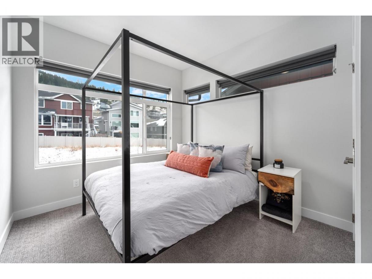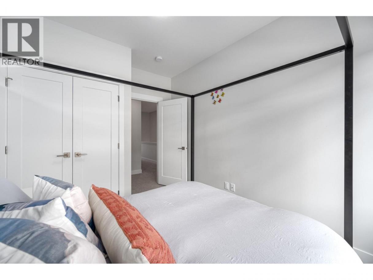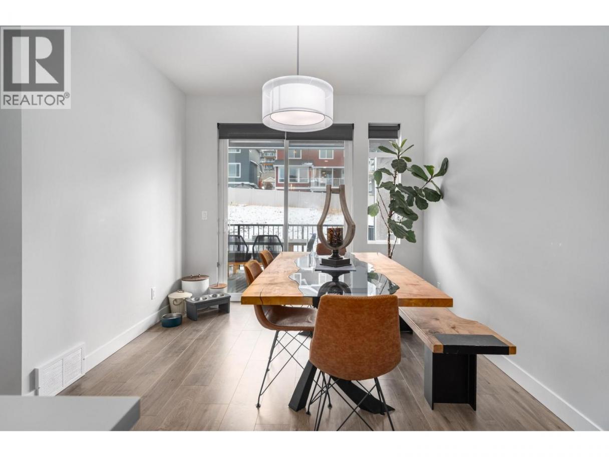 Designed and built with thoughtful selections, this well-appointed townhouse offers an ideal Juniper West lifestyle. Located directly across from a playground and close to a dog park, walking trails, and the Juniper Bike Ranch, the location is hard to beat. Entry level access from the spacious garage leads into a functional mudroom area, along with one bedroom and a convenient 2pc powder room. This level is ideal for guests, a home office, or flexible use. The main floor features an upgraded kitchen with quartz countertops, gas range, and S/S appliances, opening to a large covered deck that’s perfect for outdoor living. This level also includes a powder room and a generous living room with an electric fireplace. As an end unit, the home benefits from extra windows that bring in excellent natural light. Upstairs, you’ll find two well-sized bedrooms plus a den/office space. The main bathroom is a 4pc, while the primary bedroom offers a spacious ensuite with double-sink vanity, a large walk-in tiled shower, and a walk-in closet measuring approximately 13 feet with custom shelving for an extensive wardrobe. The garage accommodates one vehicle plus space for bikes or gear. Parking includes one driveway space and one assigned stall. Notable upgrades include quartz countertops throughout, a 60-gallon HWT, and central A/C. Quick possession is possible. This home is an excellent choice for buyers seeking quality, functionality, & the Juniper West lifestyle. (id:6769)