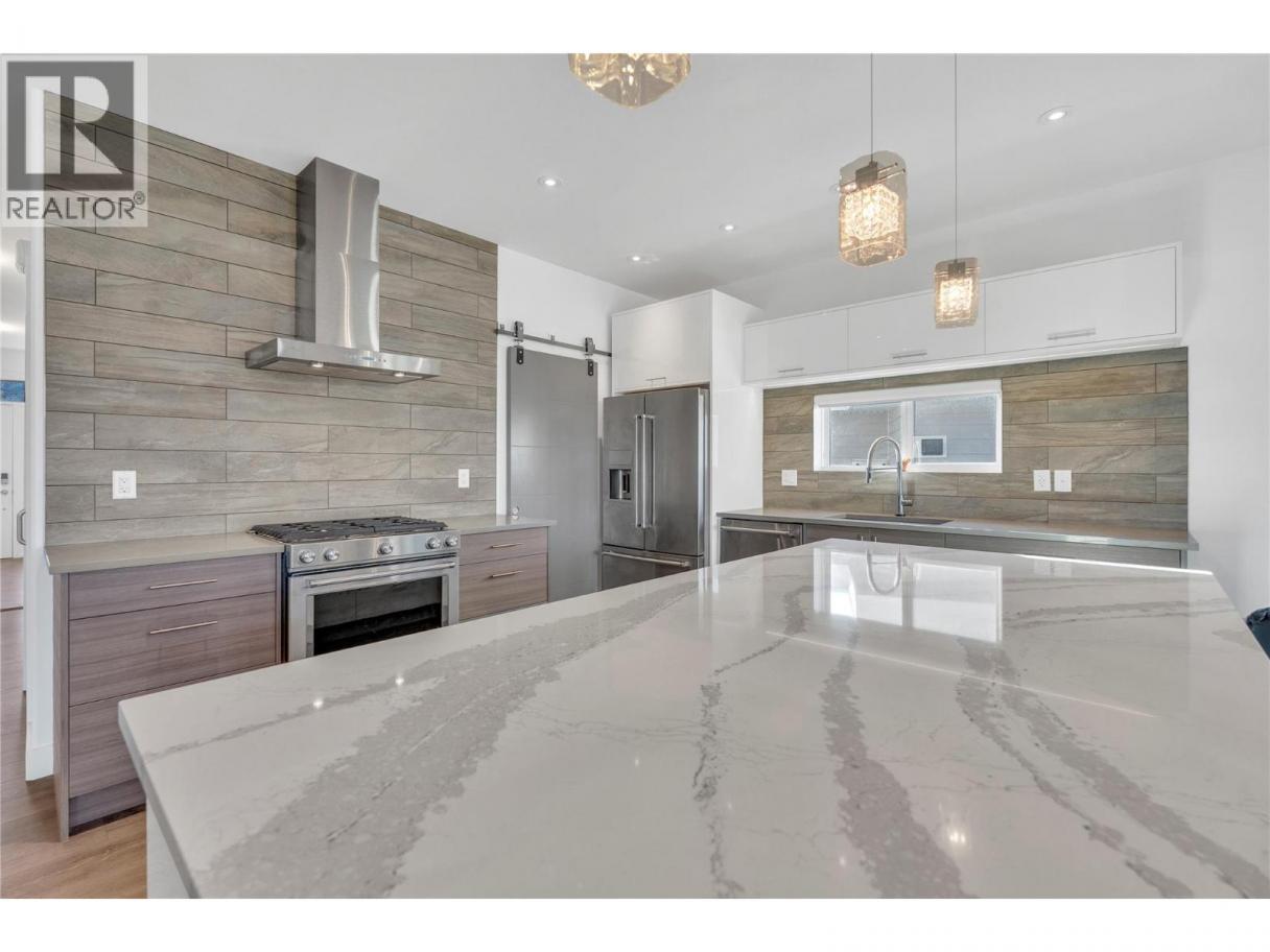AVERY Place - A family home located in a very desirable cul-de-sac in Penticton. Fully equipped, well maintained rancher. Two floors with 3300 SF of living space. Has lots to offer. 5 bed, 4 bath home situated in a modern development, with views of the city, mountains & 2 lakes. Minutes away from downtown shopping, seconds away from schools. walking trails, beaches, wineries and if needed, the hospital. Out of towners will be happy to know we have an airport & quick access to Hwy 97. Features of the home are 9 ft ceilings, contemporary stylings, a den that can be a bedroom, a wine room, two ensuites and walk-in closets, floating vanities, double sinks, gas FP, 2 laundry sets, larger than usual garage, RV parking, full length covered deck on main level with access from living room and primary bedroom, glass railings, BBQ hookups on both levels. The lower level will provide a 2-bedroom suite that can be expanded to 3. Second large sharable laundry in basement and a complete professional kitchen, with a separate entry. 2 HW tanks, lower-level covered deck adds to the living space. Spacious backyard has ROOM FOR A POOL. Flat yard with a view, irrigation system, and iron fencing. Access from upper deck too. It’s a family home, it’s a place for the grown kids, the folks, or to earn additional income if desired. It’s all possible, moments away from hospital for nursing staff tenants. UNLIMITED POTENTIAL (id:6769)