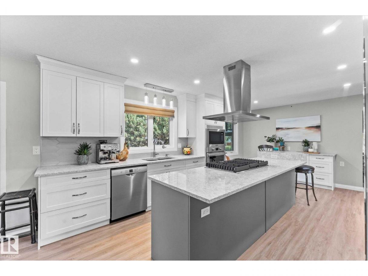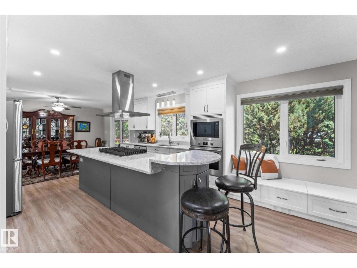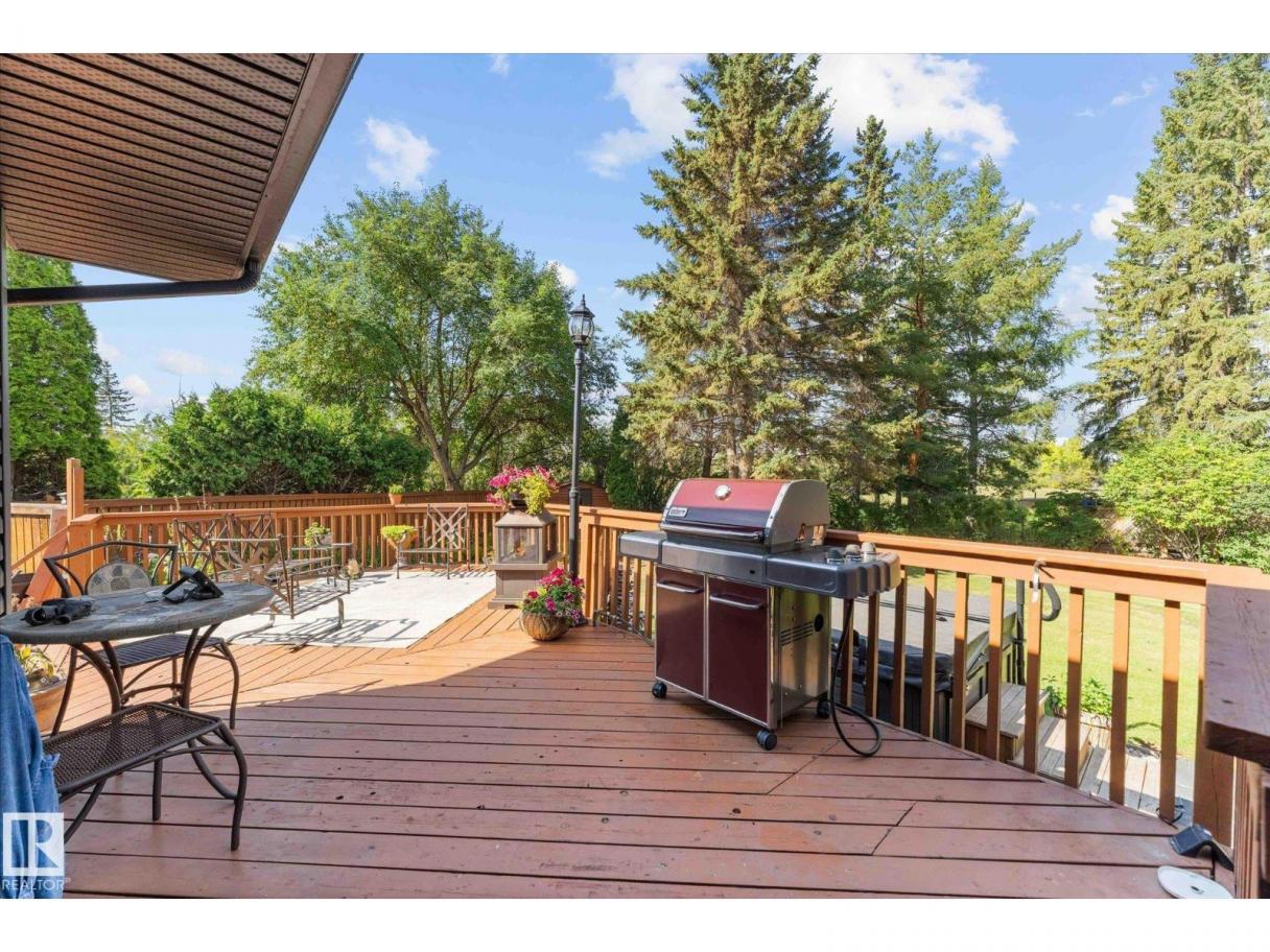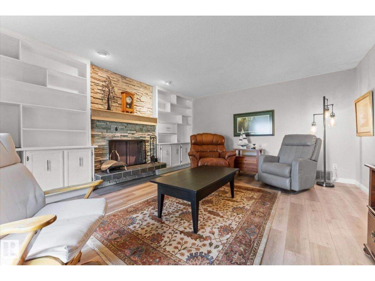 Backing directly onto the RIVER VALLEY, this 2,200+ sq ft 4-level split combines unbeatable space, location, & updates. Curb appeal shines with a completely updated exterior! Inside, new vinyl plank flooring and railings lead to a bright living room, formal dining area, & a completely remodelled kitchen with quartz counters, custom cabinetry, & modern appliances. Upstairs, discover 4 bedrooms including the primary retreat with private balcony overlooking the massive yard, walk-in closet, & 3-pc ensuite. A 4-pc bath completes this level. The lower level offers a cozy family room with stone fireplace surround and built-ins, plus sliding doors to the patio, and a convenient half bath. The finished basement adds 2 more bedrooms, laundry, and a flex/family room. Outside, enjoy the pie shape yard with a huge deck for entertaining, mature trees, fire pit area, & direct access to nature. With an attached double garage, & close to parks, schools, highway access & amenities, this is a rare river valley gem! (id:6769)