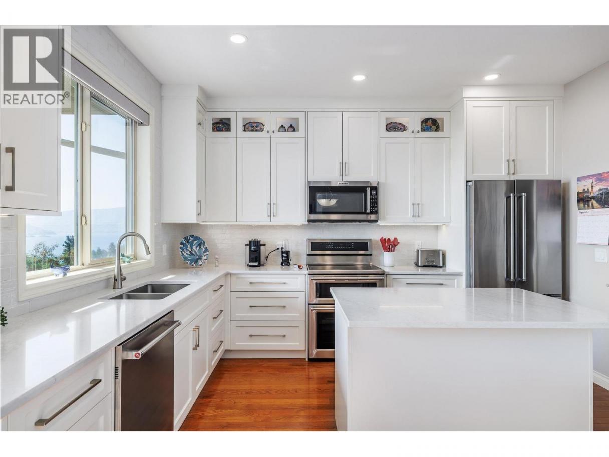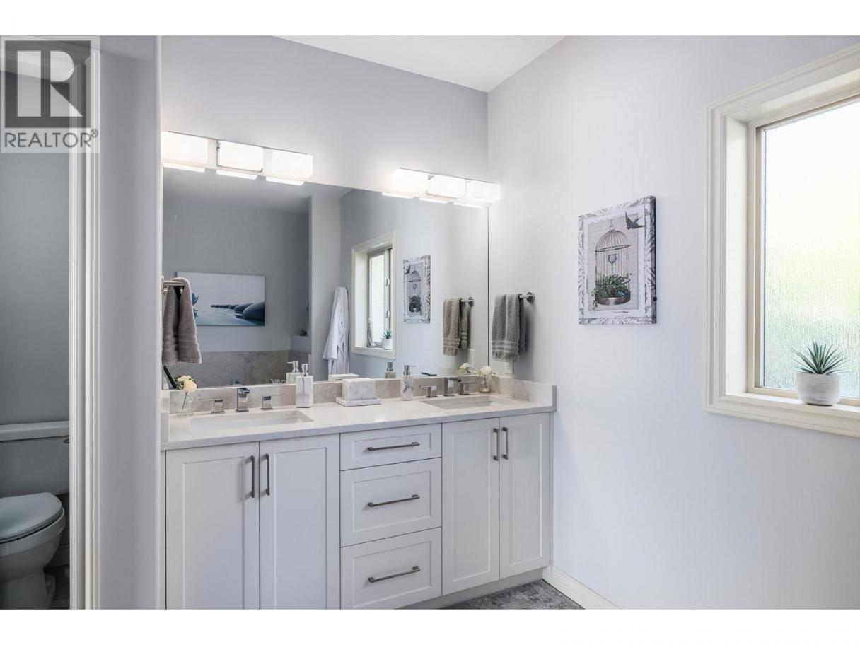 Experience luxury living with breathtaking panoramic lake views from every room in this stunning Rancher WITH basement. Over $65,000 in high-end professional upgrades have been completed in the past few years, including a brand-new gourmet kitchen with island and spa-inspired bathrooms. Spanning approximately 2,650 square feet, this beautifully appointed home offers 2 spacious bedrooms plus a versatile den-perfect for a home office or guest room-and 3 fully upgraded bathrooms featuring modern finishes and elegant touches. The chef's dream kitchen showcases a large island, gleaming granite countertops, stainless steel appliances, and a walk-in pantry. Cozy up to the gas fireplace beneath soaring vaulted ceilings and gleaming hardwood floors that add warmth and sophistication. The huge recreation room is ideal for entertaining or relaxing with family and friends. Step outside onto your private deck equipped with a natural gas BBQ outlet and soak in the unforgettable panoramic lake views stretching 180 degrees across the horizon. With a double driveway for ample parking and exclusive access to the clubhouse, this home masterfully combines comfort, style, and nature's beauty. Don't miss your chance to live the lakeview lifestyle you've been dreaming of! (id:6769)