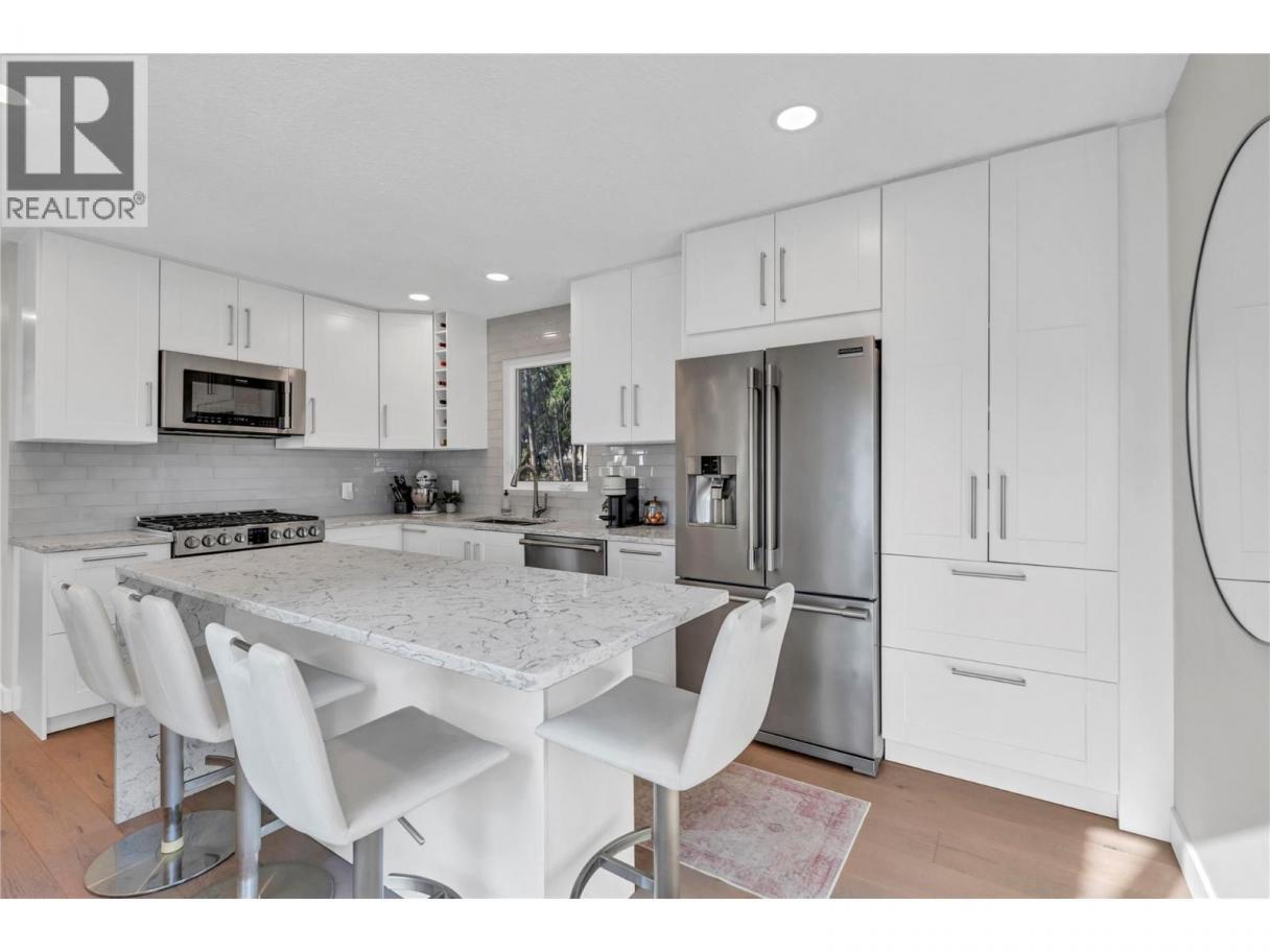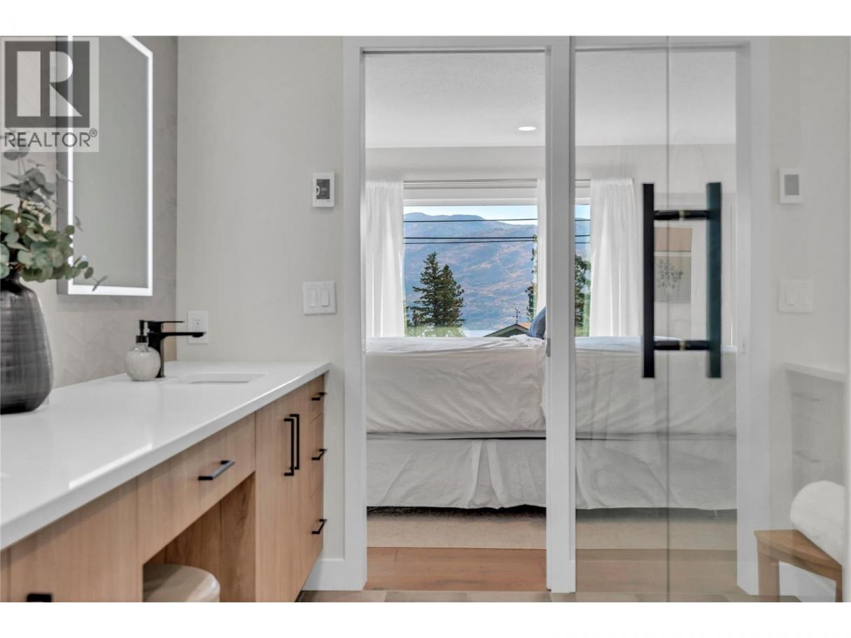 Welcome to Peachland living just minutes from the beach, boardwalk, cafes and parks! This 3 bedroom, 3 bathroom, move-in ready home offers peek-a-boo lakeviews and has been extensively renovated throughout. As you walk in, you are welcomed by natural light filling the home. The upper level features an open living and dining room, updated kitchen with quartz countertops, waterfall island, gas range and stainless appliances. In the primary bedroom wake up to a peek-a-boo lakeview from laying in bed, functional closet organizer and a spa-like ensuite with spacious walk-in shower, dual sinks and heated floors. One additional bedroom on the upper level and full bathroom. Lower level offers a spacious rec room with built-in storage and electric fireplace, bedroom, bathroom, and a versatile mudroom/laundry with direct access to the flat private, landscaped .26 acre lot. Enjoy Okanagan living on the rebuilt deck with glass railings, hydrapressed tile and gas BBQ hookup. Attached garage and plenty of outdoor open parking. New windows, doors, flooring, paint, exterior paint, kitchen, bathrooms, garage door system and more—simply move in and enjoy! Ask for the full list of updates and book your showing today. Check out the listing website https://snap.hd.pics/3904-Dryden-Rd-1 (id:6769)