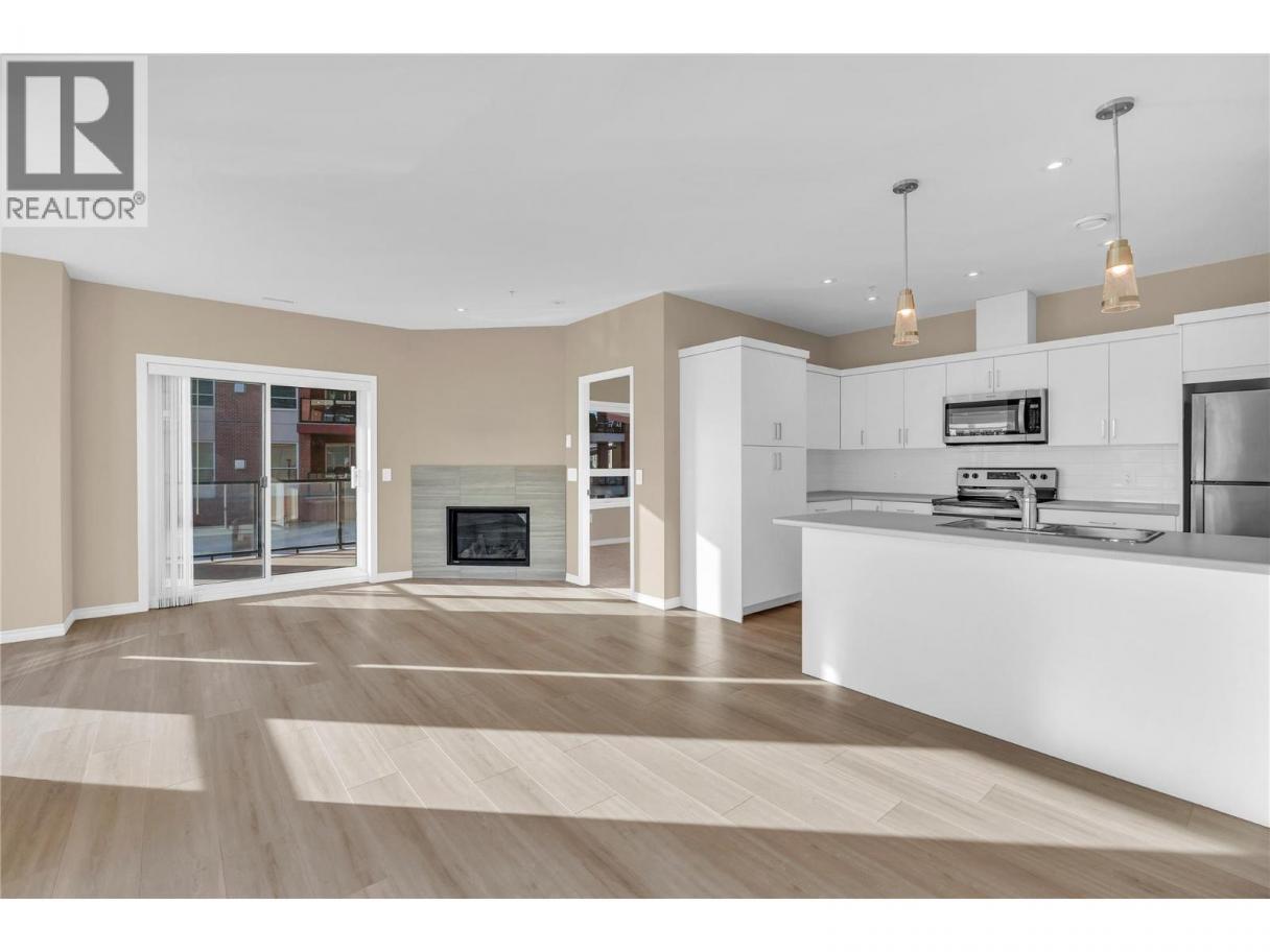 Welcome to Skaha Lake Towers – the lowest and best priced unit in this development for investors and buyers alike. This unit is in a modern steel-and-concrete building less than two years old and ideally located just a few blocks from Skaha Lake, beaches, and nearby parks. This thoughtfully designed 2-bedroom, 2-bathroom plus den home offers comfortable living space with a desirable south-facing layout. The bright, open-concept floor plan is perfect for both everyday living and entertaining, featuring a spacious kitchen with a large island and generous cabinetry. Large windows and outdoor spaces allow you to take in beautiful views. Two decks extend your living area, including one with a natural gas BBQ hookup—ideal for relaxing or dining outdoors. Additional features include a cozy gas fireplace, gas on-demand hot water, and efficient forced-air heating and cooling. Each unit comes complete with a dedicated parking stall, storage locker, window coverings, and all six appliances. Enjoy the convenience of walking to the lake, beaches, restaurants, and parks, with schools and shopping just minutes away. This is low-maintenance, modern living in one of Penticton’s most desirable locations. (id:6769)