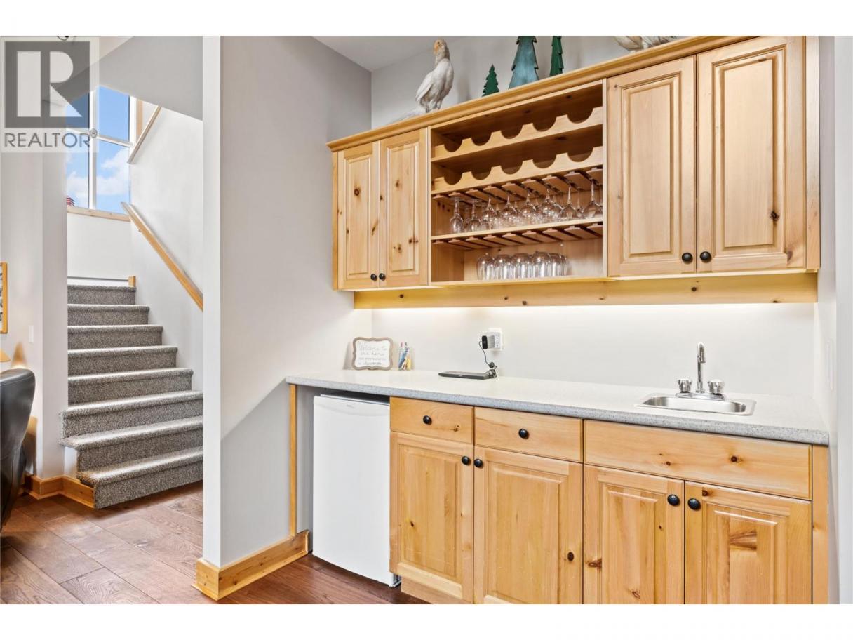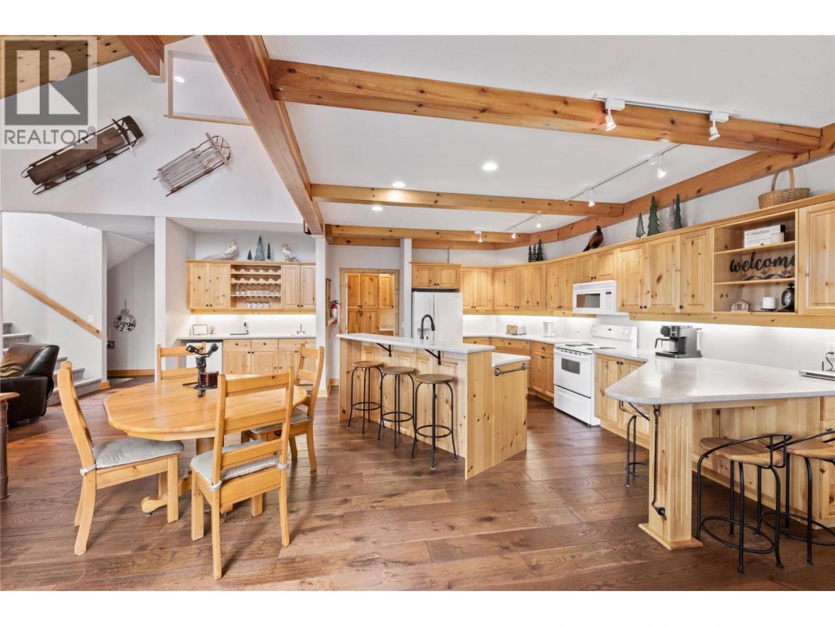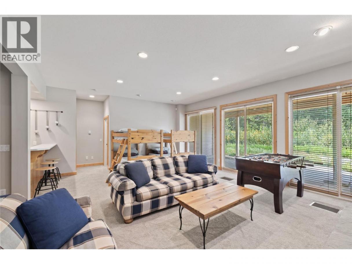 Discover elevated mountain living in this exceptional 4-bedroom, 4.5-bath half duplex at Big White Ski Resort. Rich wood finishes throughout, soaring vaulted wood ceilings, and two inviting fireplaces create a warm alpine atmosphere. The main level features a bright, open-concept living space that extends onto a generous covered deck with private hot tub—ideal for unwinding after a day on the slopes. Enjoy true ski-in/ski-out access and outstanding entertaining spaces, including a spacious lower-level rec room with bar area, full-size fridge, dishwasher, and walk-out covered patio. Two additional bedrooms and bathrooms on the lower level comfortably accommodate guests, while a private sauna completes the ultimate apres-ski retreat. Perfect as a family mountain escape or a high-performing investment, this home offers the quintessential Big White lifestyle. (id:6769)
