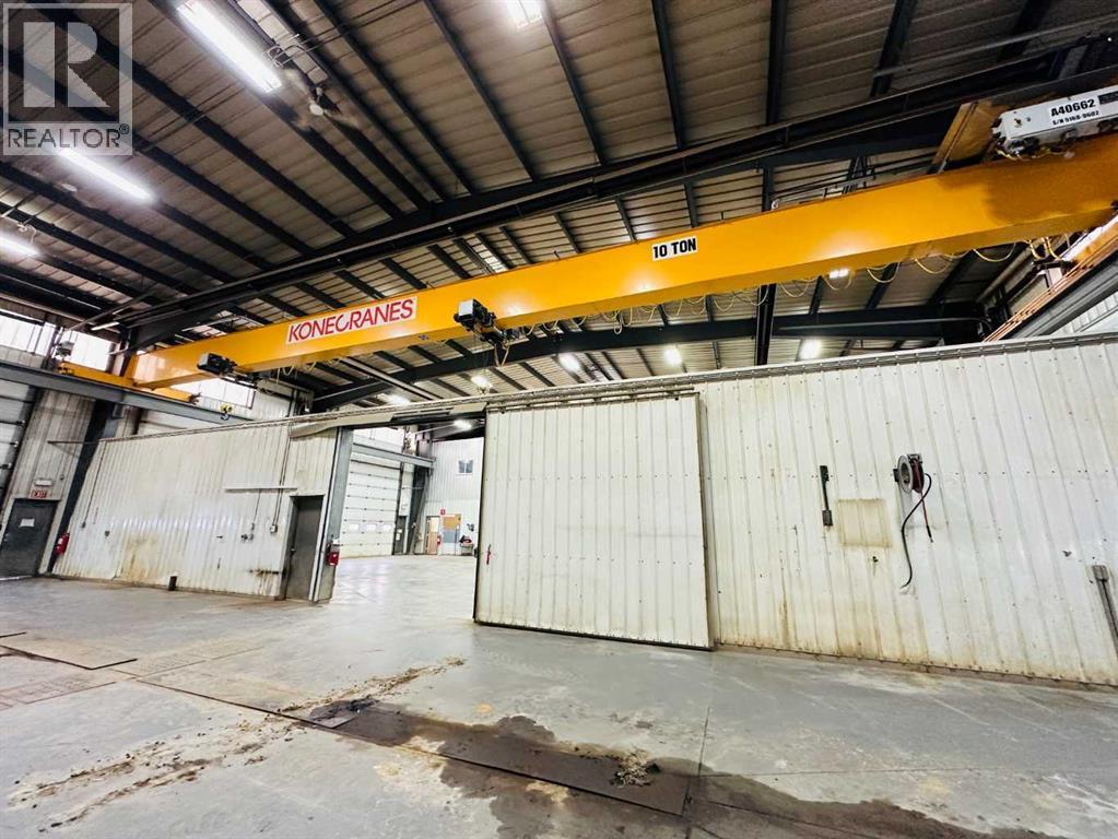 Almost 92 Acres and 4 drive through shop bays and a 10 ton crane on busy highway 2 all for a fraction of replacement cost.3 bays have 18’x18’ automatic overhead doors and 1 bay has 16’ x 16’ doors. Bays are 83’ deep with floor drains. One bay is setup as a wash bay with a Hotsy. The 10 ton crane is useable in 3 of the bays. Building also comes with a compressor and multiple air lines ran. 400 Amps of 3 phase power+ hitching rail with power. Main floor features reception and 2 offices,2 bathrooms (1 with shower) and a kitchen. Upstairs office is developed with 4 offices a boardroom/kitchen. Offices also have AC. The property is made up 7.9 Acres of well graveled and fenced yard site, 57 acres of farmland and 15 acres of bush across Hwy 2. Property also generates $2,400.00 per year in farm income. Great value as being offered well below appraised value. Also available for Lease MLS # A2280553 (id:6769)