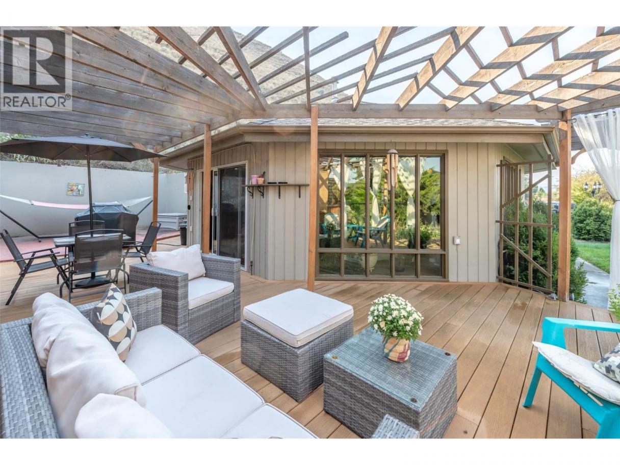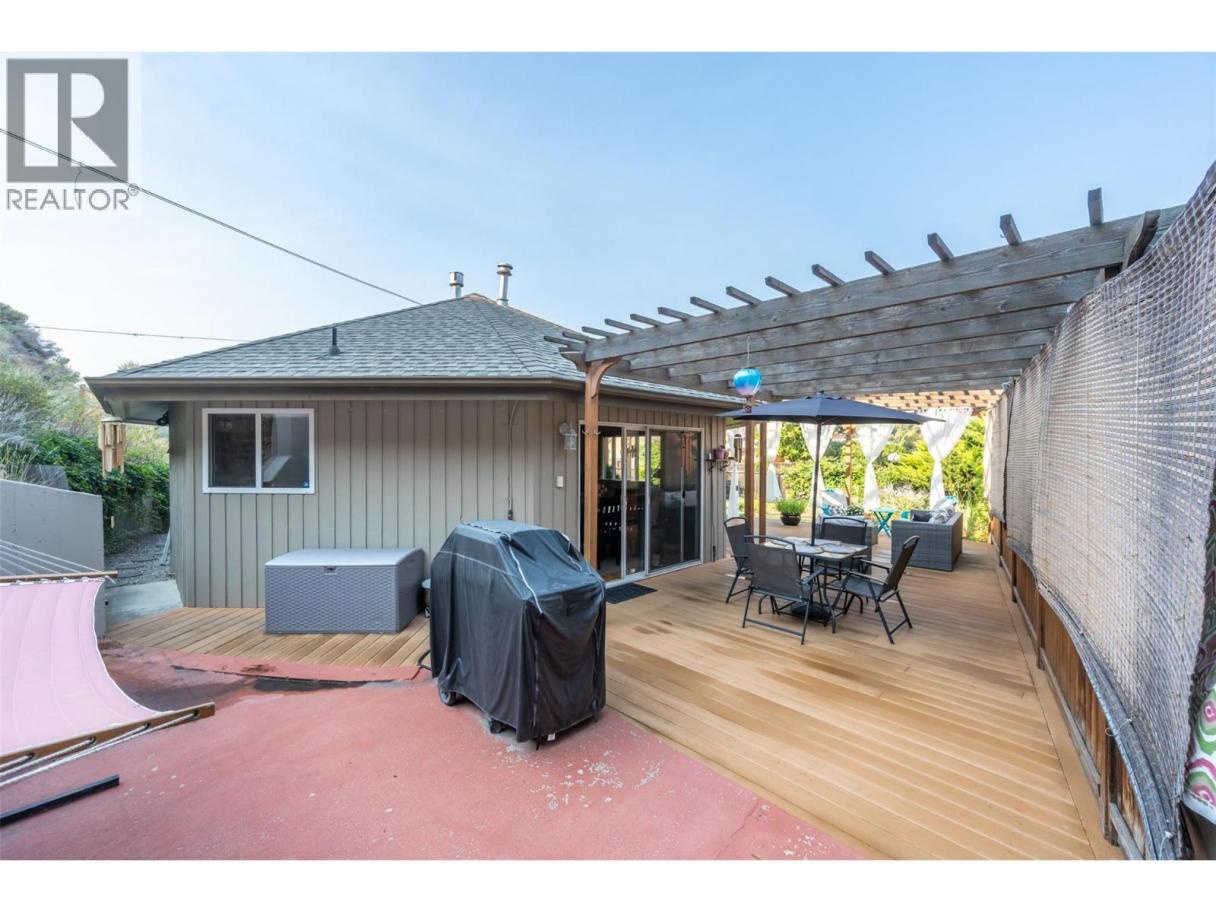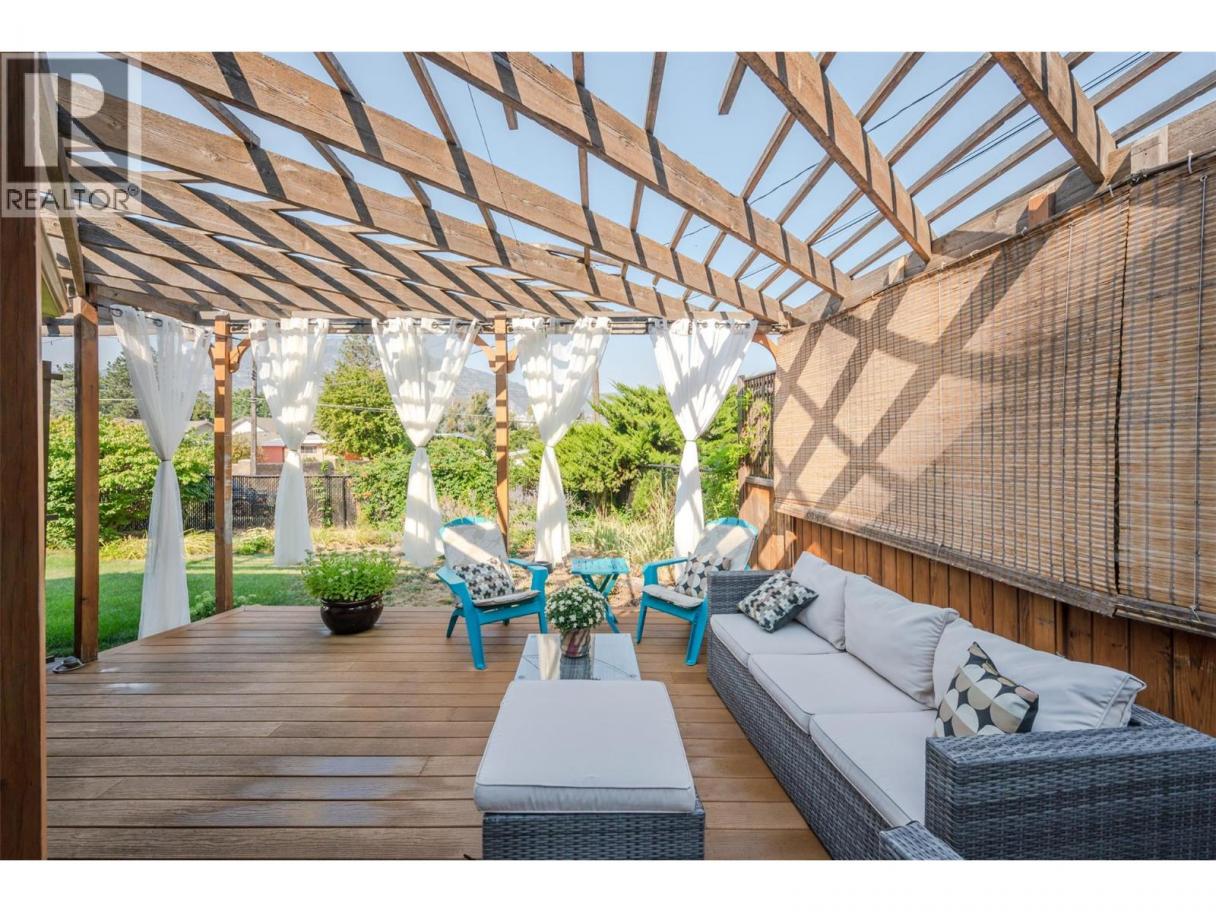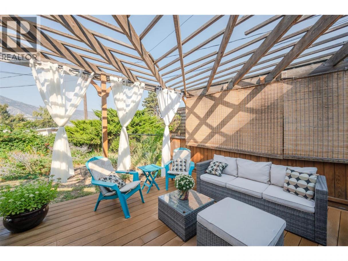 Welcome to your private oasis on 0.54 acres just steps from Skaha Lake! Only minutes from town and a short stroll to the water, this meticulously maintained rancher with a brand new furnace offers 2 bedrooms and 2 bathrooms, showcasing true pride of ownership! Inside, you’ll love the gorgeous, vaulted ceilings and a wall of windows that flood the home with natural light. The large kitchen and dining area with stainless steel appliances is perfect for hosting family and friends. While the gas fireplace and hardwood parquet floors add warmth and charm throughout the home. The spacious primary suite features a 3-piece ensuite, and the second bedroom is a perfect flex space, complete with a murphy bed for guests or a home office. Outside is a private oasis with a gorgeous pergola providing privacy and shade to the large composite deck, creating an inviting setting for gatherings or quiet evenings! The front and side yards are the perfect space to play or have a large garden! Ample driveway space provides easy parking for vehicles, guests, and summer toys. BONUS: Lake access is right across the road—launch your paddleboard or kayak in under a minute! This one-of-a-kind home combines comfort, privacy, and an unbeatable location near Skaha Lake—truly a rare find! (id:6769)