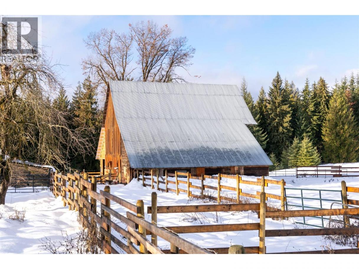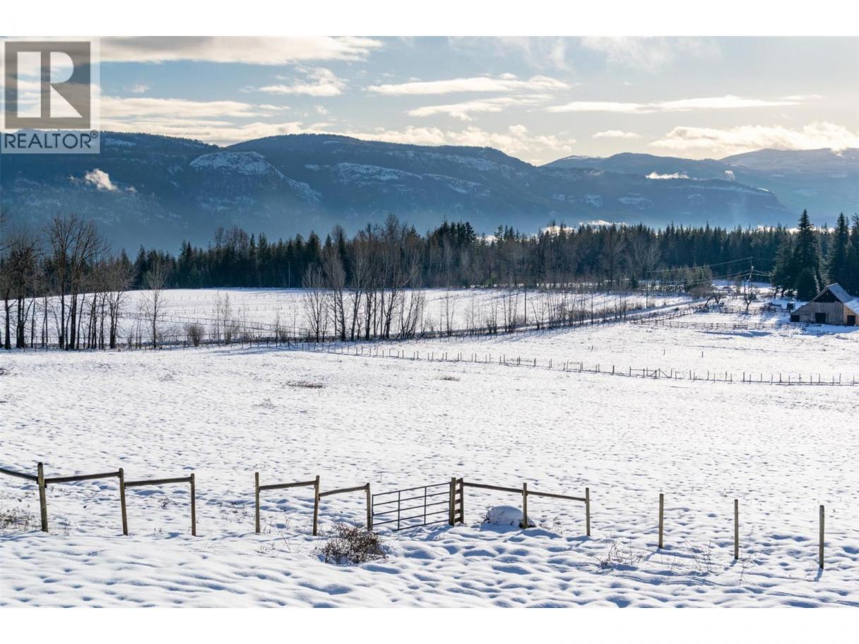 SIMPLY STUNNING! This Bavarian-style custom home and farm on 160 acres with magnificent views of the Enderby Cliffs, will appeal to discerning buyers who value luxury, privacy and nature. The 4900 sq. ft. 5 bed/6 bath home (fully renovated 2023-24) is a perfect blend of European craftsmanship & modern design. Interior upgrades include: walk-out basement finished for future legal suite; main floor kitchen w/ butler pantry & built in Wolf/SubZero appliances; main floor bedroom w/ ensuite & large WI shower; second floor primary bedroom w/ gorgeous dressing room & ensuite; upper floor great room ( w/ 4 pc bath) for a studio, office, library, bedroom, exercise ... Pause on each level to enjoy expansive views including from the south facing main deck & the 2nd floor wrap-around balcony. 2023-2024 renos include: 2 high efficiency gas furnaces; Caddy wood furnace; 2 ACs; HWT; drilled well (6 gpm); 200 AMP electrical; & septic system. A heated detached 1700 sq. ft. workshop/garage w/ commercial sink & wash basin is plumbed for a WC. Bring your livestock & pets. Approx. 60 ac. cleared, new fencing & cross fencing; 8 standpipes, 5 water bowls, water licence & well water, & vintage barn w/ 100 amp. And a 2nd residence may be possible. Huge recreation/ equestrian centre/ snowmobile & ATV potential w/ many trails on the property & direct access to Crown land to connect with the extensive South Canoe/Larch Hills Nordic trails (shuswaptrails.com). Book a showing & bring your hiking shoes! (id:6769)