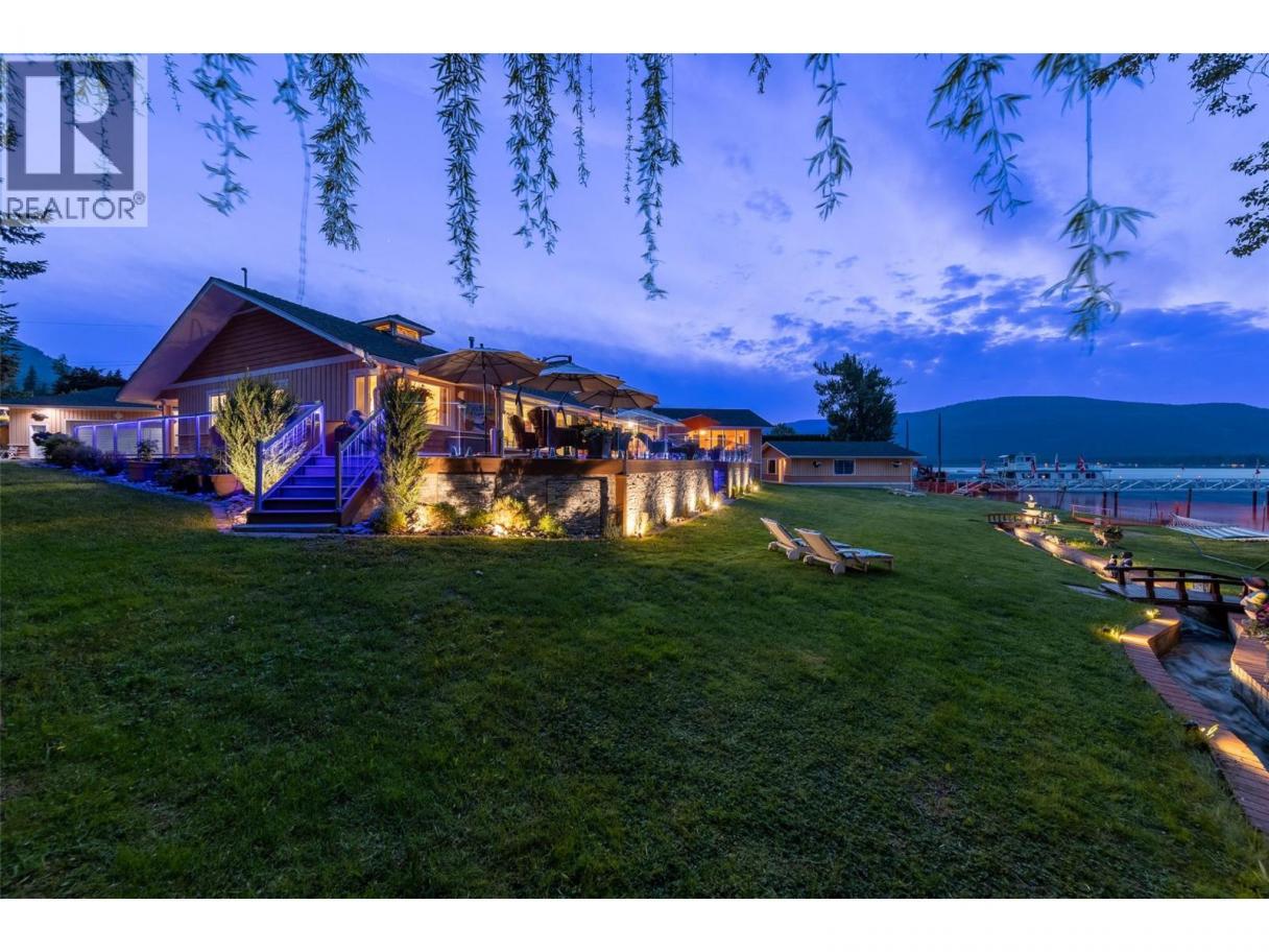 Shuswap Lakefront Gem. Family-owned for 25 years. Rare 4-season private lakefront family estate. 1+ acre w/150' of shoreline with current foreshore lease and a top-of-the-line 90' custom marine quality dock that can store a floatplane or helicopter. 34'x24' boathouse w/rail system. Updated 4000 sq ft 4 bdrm home with new chefs kitchen, pantry, and cold storage room. 80'x23' garage with room for a car collection + RV parking. Many updates in 2025 including new flooring, counters, and bathrooms. Very private primary suite located in its own wing with endless lake views. Smart layout for guests or visiting family. Fun games room w/bar and cozy sunken living room with a stone double-sided fireplace. The ultimate landscaped family yard with your own creek and gorgeous new deck with custom glass/decking/lighting, ideal for lazy summer nights or cozy up around the outdoor fire table. Lock and leave with cameras/security, irrigation, fenced, and gated. A turnkey property manager could stay on and work with the new owners. Updated furnaces (2024), heat pump (2024), sump pump, and a/c (2024). Lake fed water with UV filtration system. Good septic with a lift pump. 2016 roof. Minutes to amenities, school, town, and everything the laid-back Shuswap is known for. Move-in ready for Spring/Summer 2026. (id:6769)