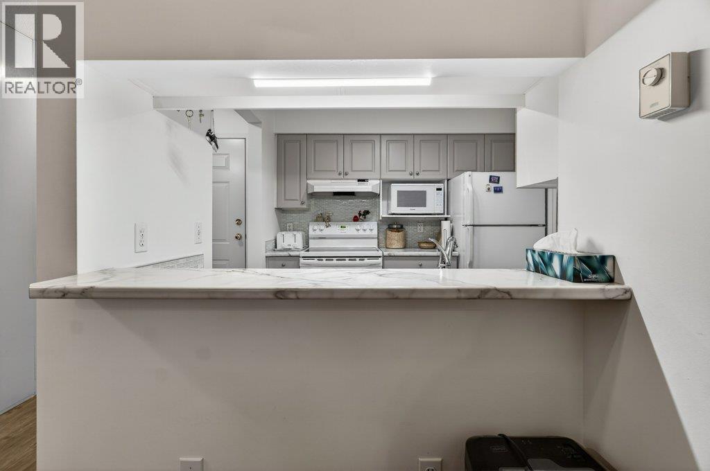 MOVE IN READY ONE BEDROOM CONDO - Tired of renting? This is your opportunity for an affordable option or the perfect investment property. South facing balcony with view of Mount Ida. Updated kitchen, some newer appliances, paint, flooring, insuite laundry, updated bathroom, built-in in the dining area, new baseboards, new screen door, new A/C unit, etc. Walking distance to downtown, shopping, parks, restaurants. Storage locker and covered parking. (id:6769)