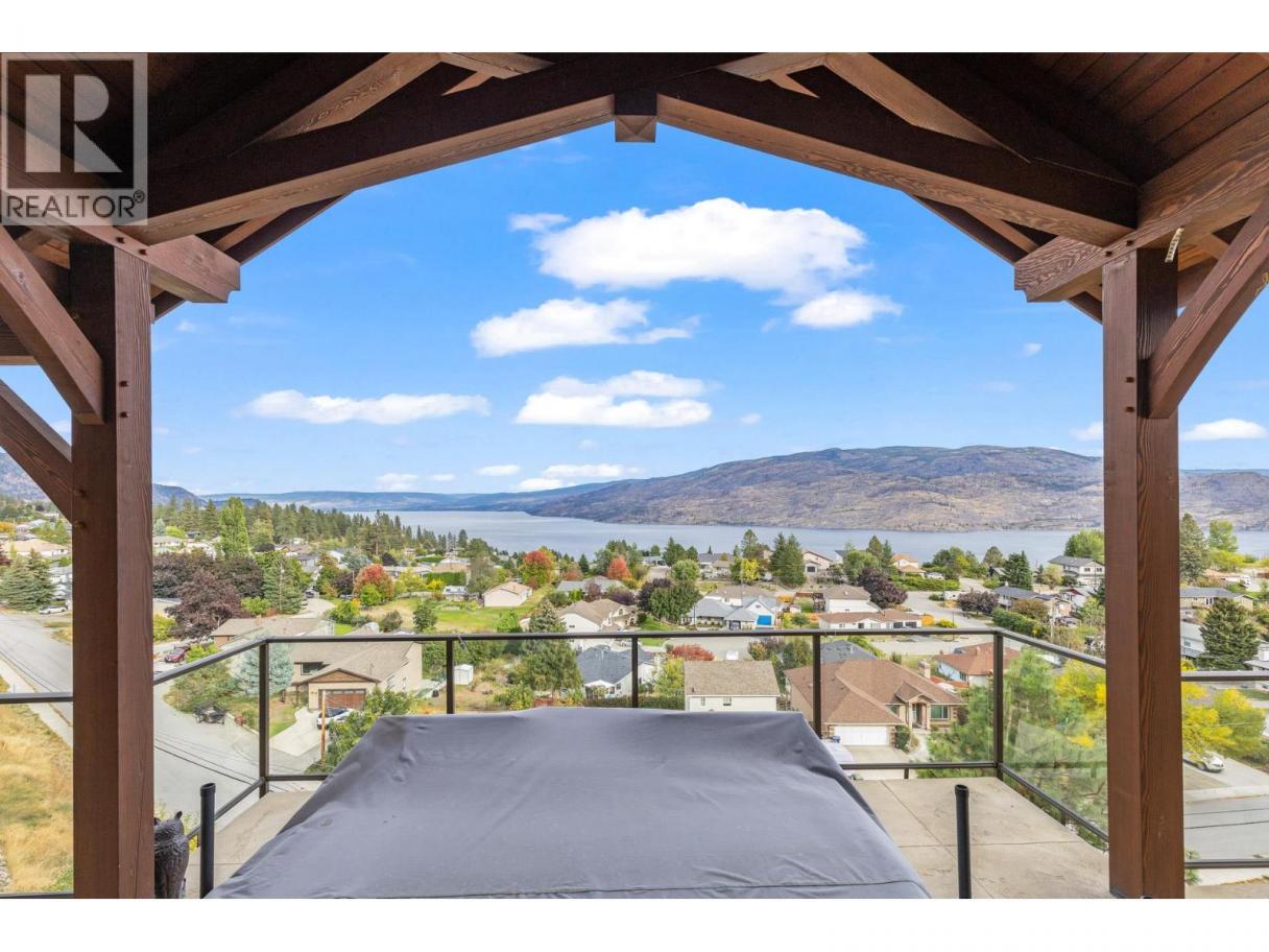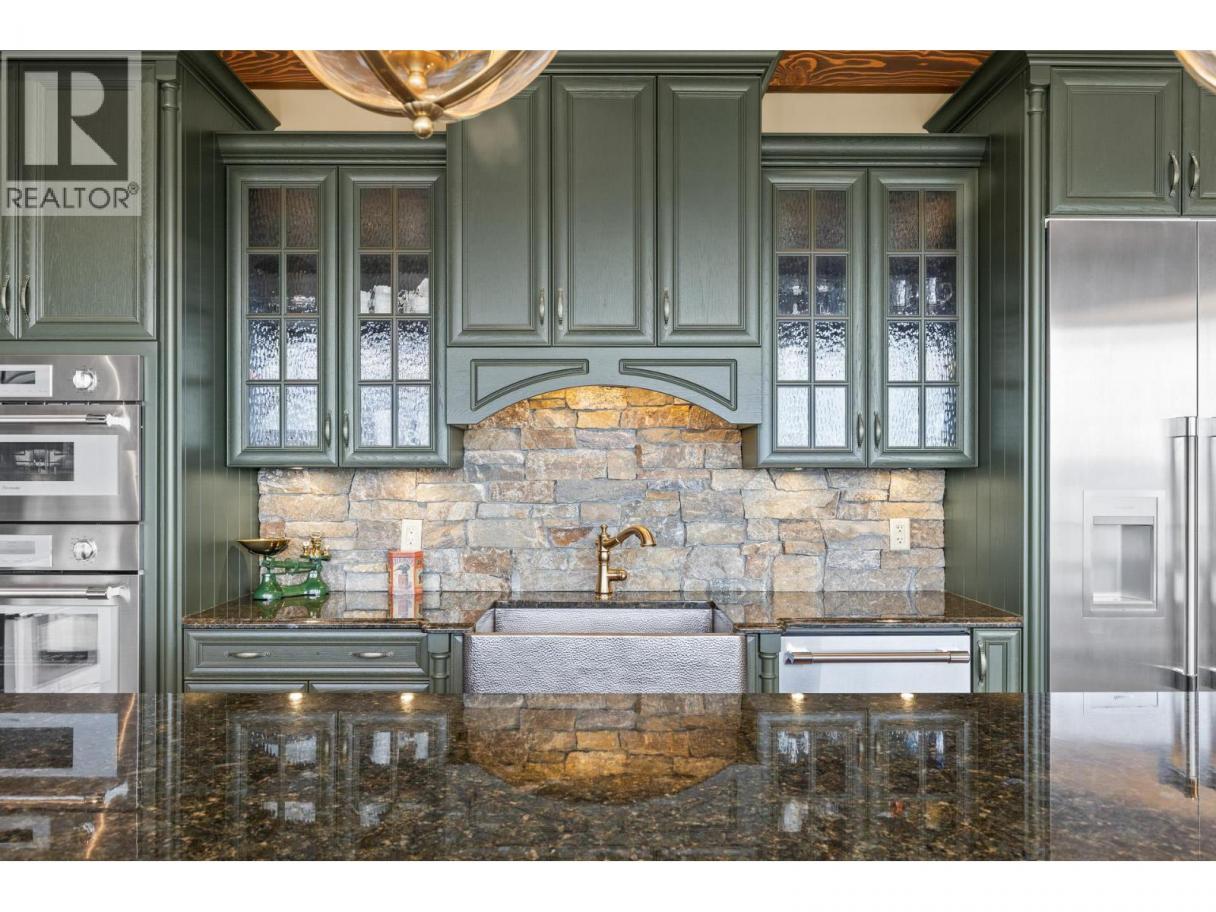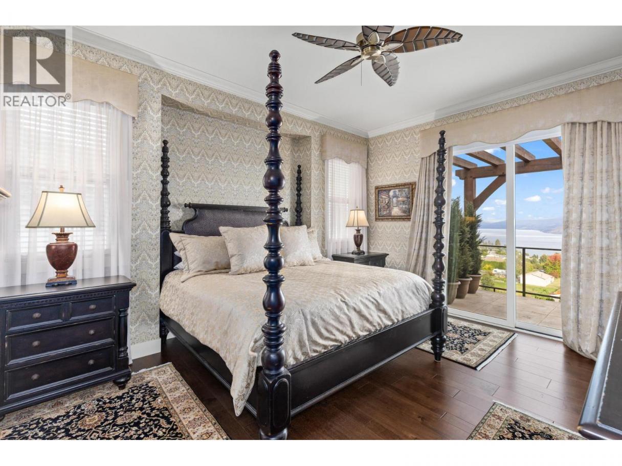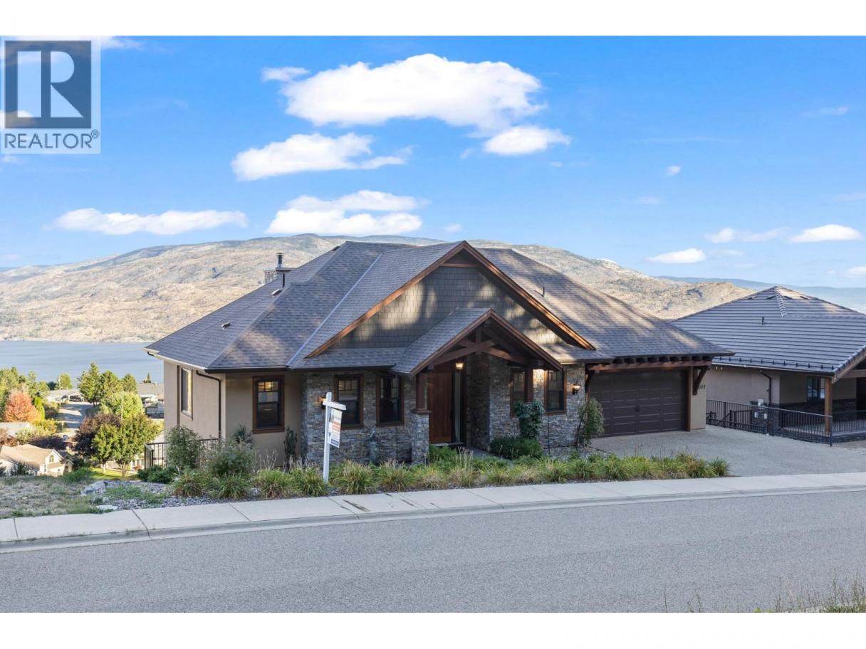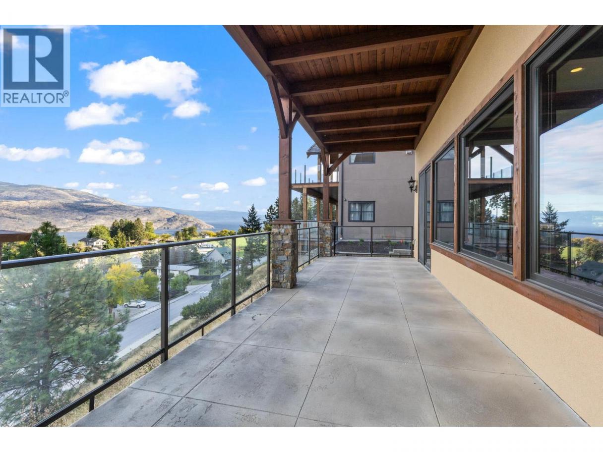 TODAYS pricing!! Over the top build quality with class, rich decor, soaring cedar beam ceilings and lavish finishings and elevator! Extremely rare and unobstructed views from Summerland to Kelowna on a peaceful cul de sac street. At over 4000 sq. ft. this home shows skilled craftsmanship and quality design. Maple hardwood floors, Kettle Valley Granite feature walls up and down and luxuriously decorated throughout. Enter into the main floor through an impressive 8 ft. solid hardwood door and be welcomed by the stunning lake views from the wall of wood windows in every room. Soaring 15 ft vaulted ceilings, Gourmet custom kitchen off the dining room is complete with never used and WIFI controlled S/S Thermador appliance package including gas range with pot filler, granite counters, corner pantry, soft close cabinets and numerous windows for picturesque mountain and lake views. Ease of access from the living room & kitchen to the massive concrete stamped deck with natural gas BBQ hookups. Primary suite and second bedroom/office on main floor, 5-piece ensuite and spacious walk-in closet. Take the elevator downstairs to be greeted with unobstructed views, massive deck, another primary bedroom suite, full kitchen/wet bar (minus range), 2nd laundry set, high ceilings, spacious recreation room with stone wall huge gas fireplace. Canada's best waterfront strip and shops/dining is minutes away and with suite, there's room for the whole family. Suspended slab, 24"" concrete build quality. (id:6769)