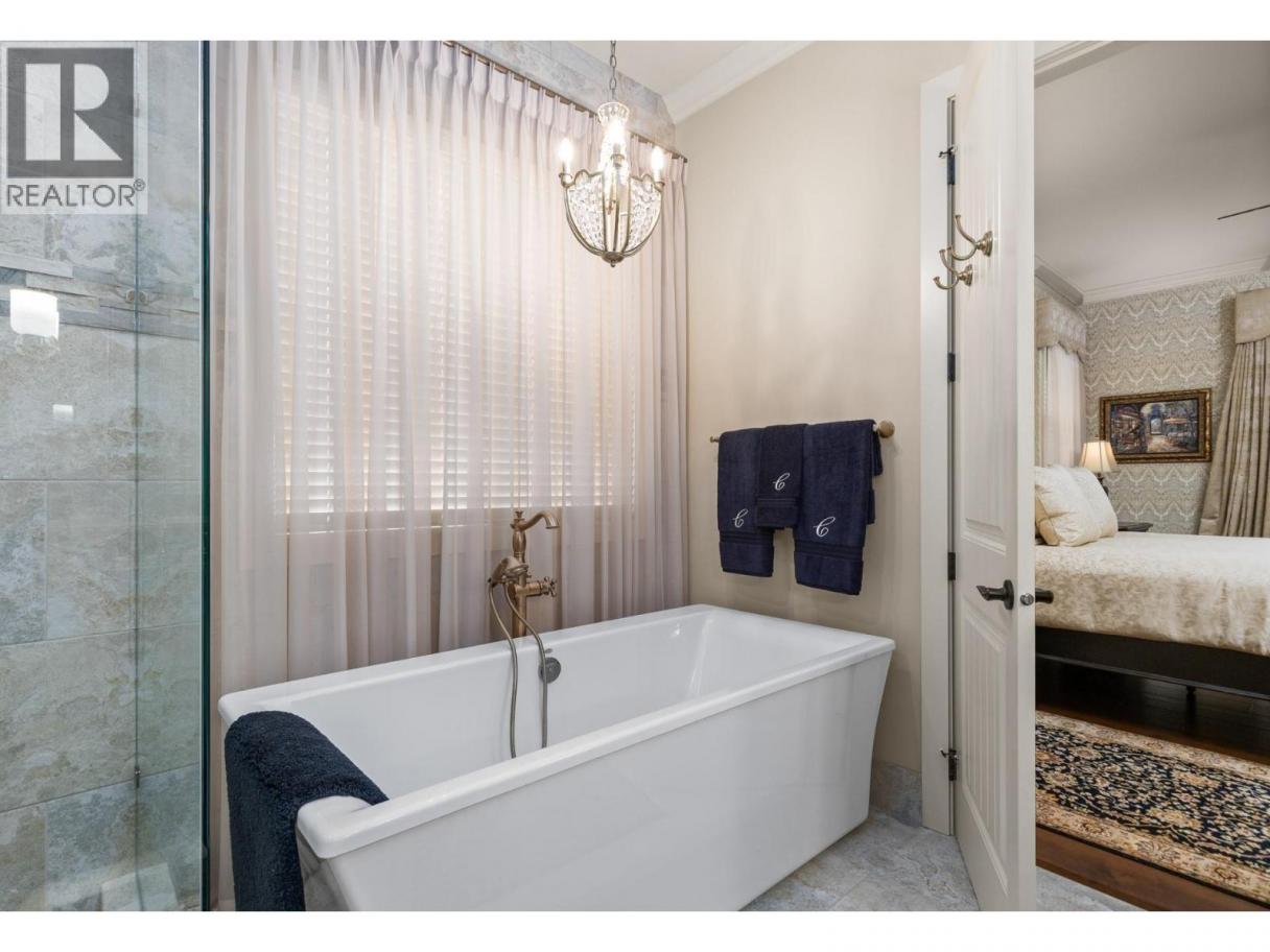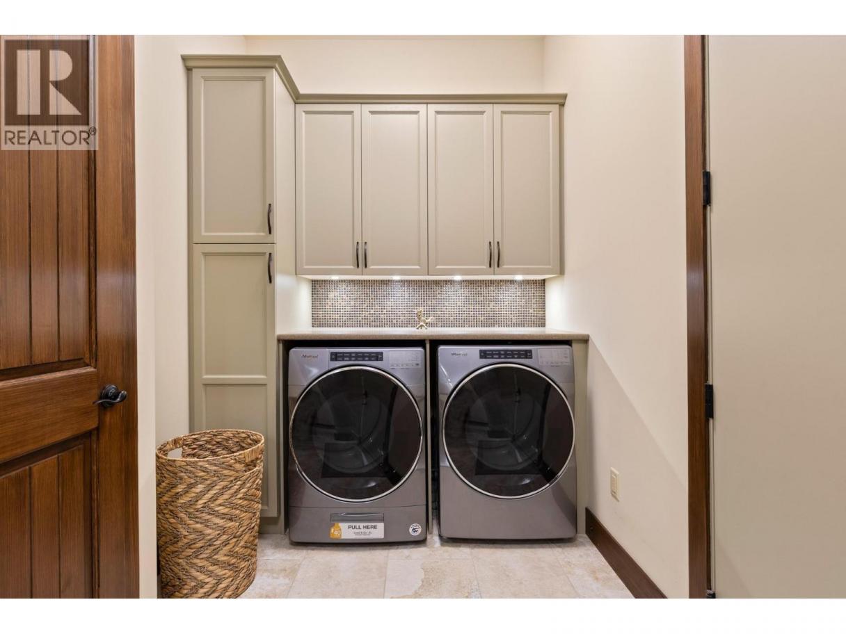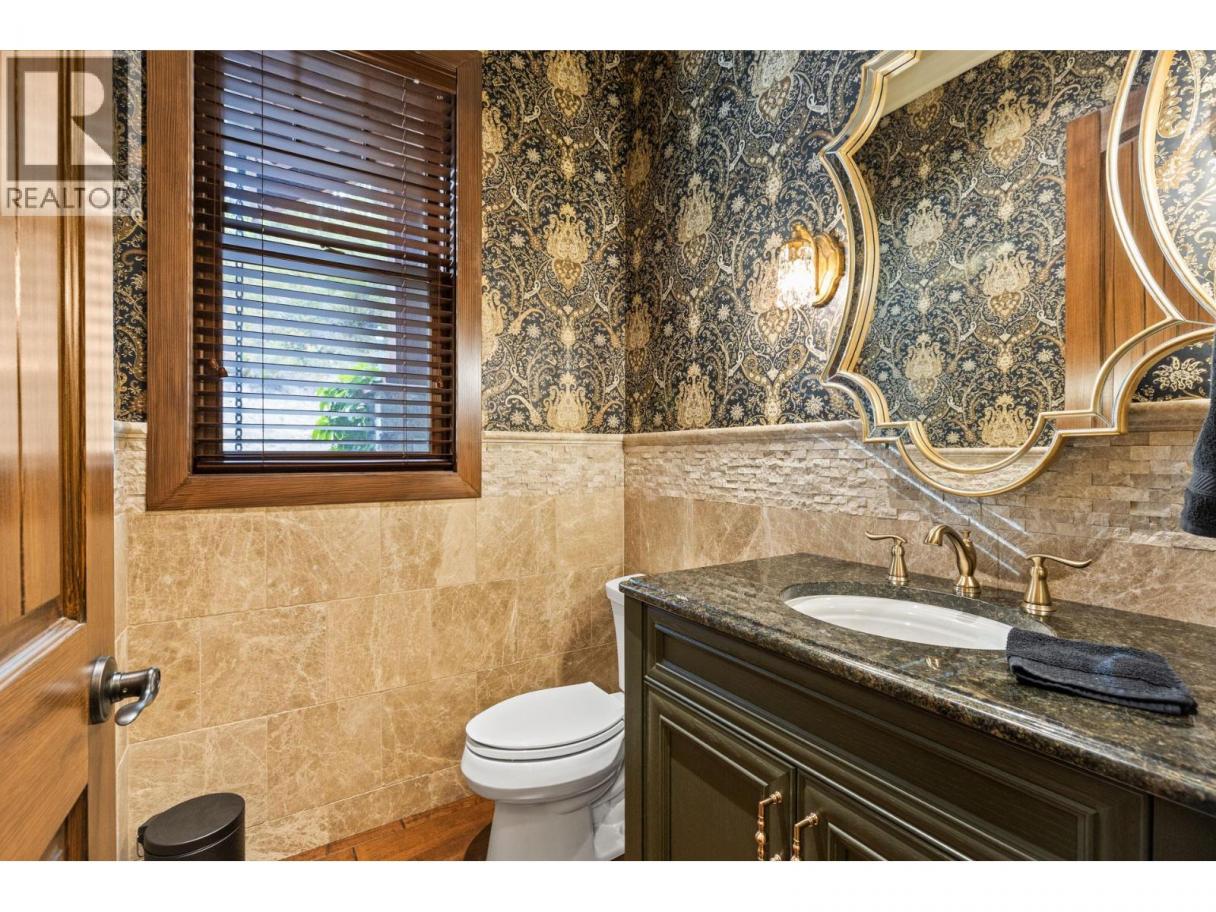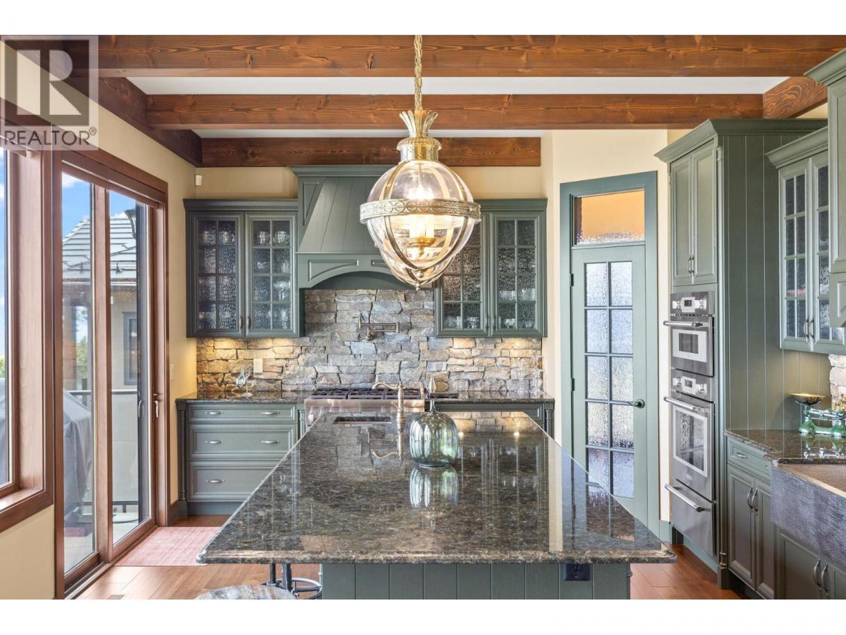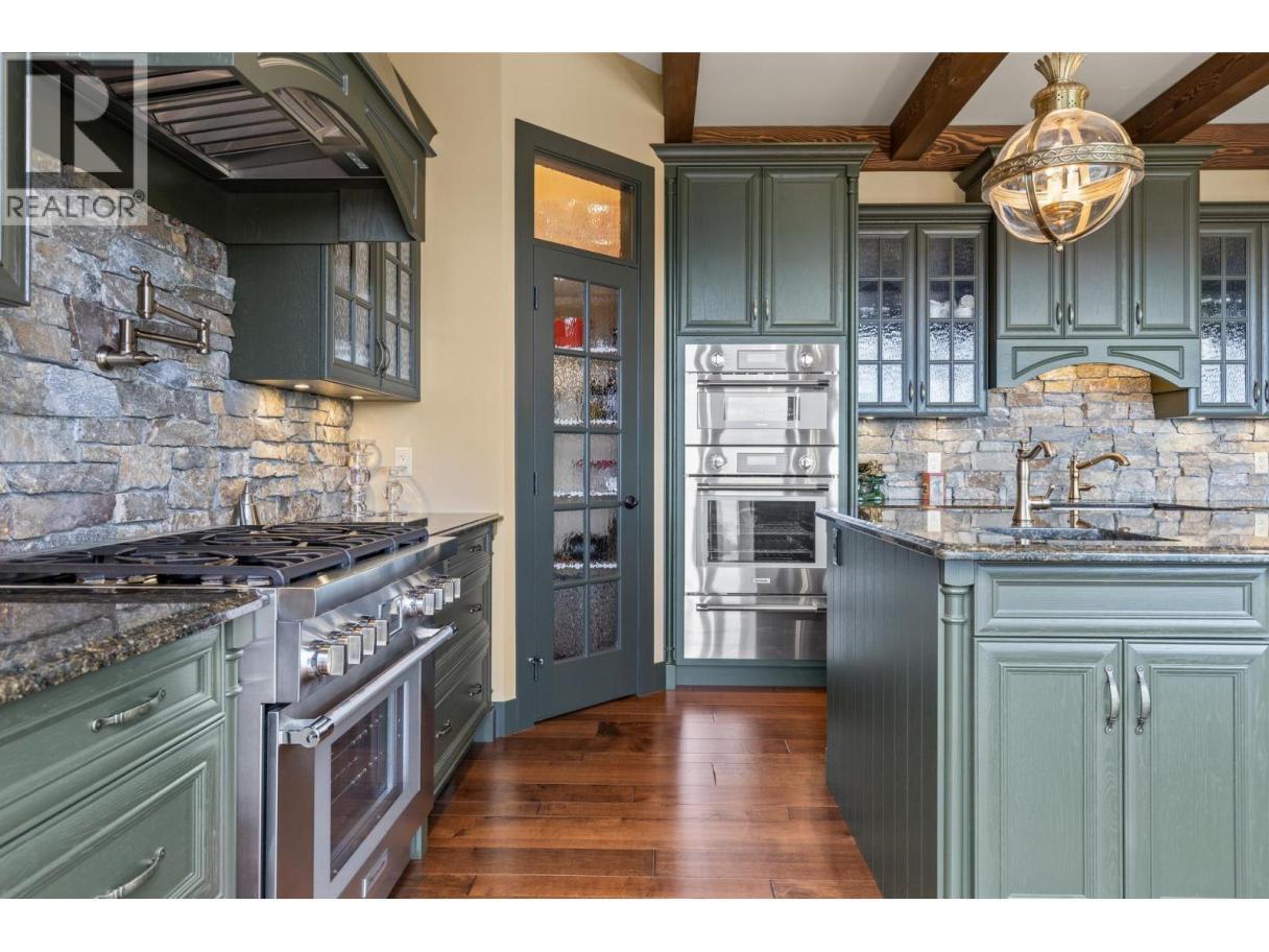 TODAYS pricing!! Over the top build quality with class, rich decor, soaring cedar beam ceilings and lavish finishings and elevator! Extremely rare and unobstructed views from Summerland to Kelowna on a peaceful cul de sac street. At over 4000 sq. ft. this home shows skilled craftsmanship and quality design. Maple hardwood floors, Kettle Valley Granite feature walls up and down and luxuriously decorated throughout. Enter into the main floor through an impressive 8 ft. solid hardwood door and be welcomed by the stunning lake views from the wall of wood windows in every room. Soaring 15 ft vaulted ceilings, Gourmet custom kitchen off the dining room is complete with never used and WIFI controlled S/S Thermador appliance package including gas range with pot filler, granite counters, corner pantry, soft close cabinets and numerous windows for picturesque mountain and lake views. Ease of access from the living room & kitchen to the massive concrete stamped deck with natural gas BBQ hookups. Primary suite and second bedroom/office on main floor, 5-piece ensuite and spacious walk-in closet. Take the elevator downstairs to be greeted with unobstructed views, massive deck, another primary bedroom suite, full kitchen/wet bar (minus range), 2nd laundry set, high ceilings, spacious recreation room with stone wall huge gas fireplace. Canada's best waterfront strip and shops/dining is minutes away and with suite, there's room for the whole family. Suspended slab, 24"" concrete build quality. (id:6769)