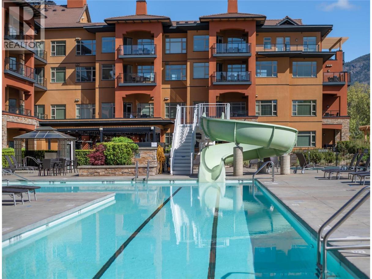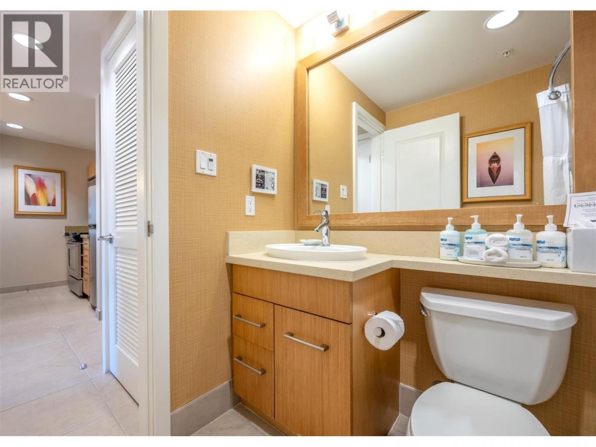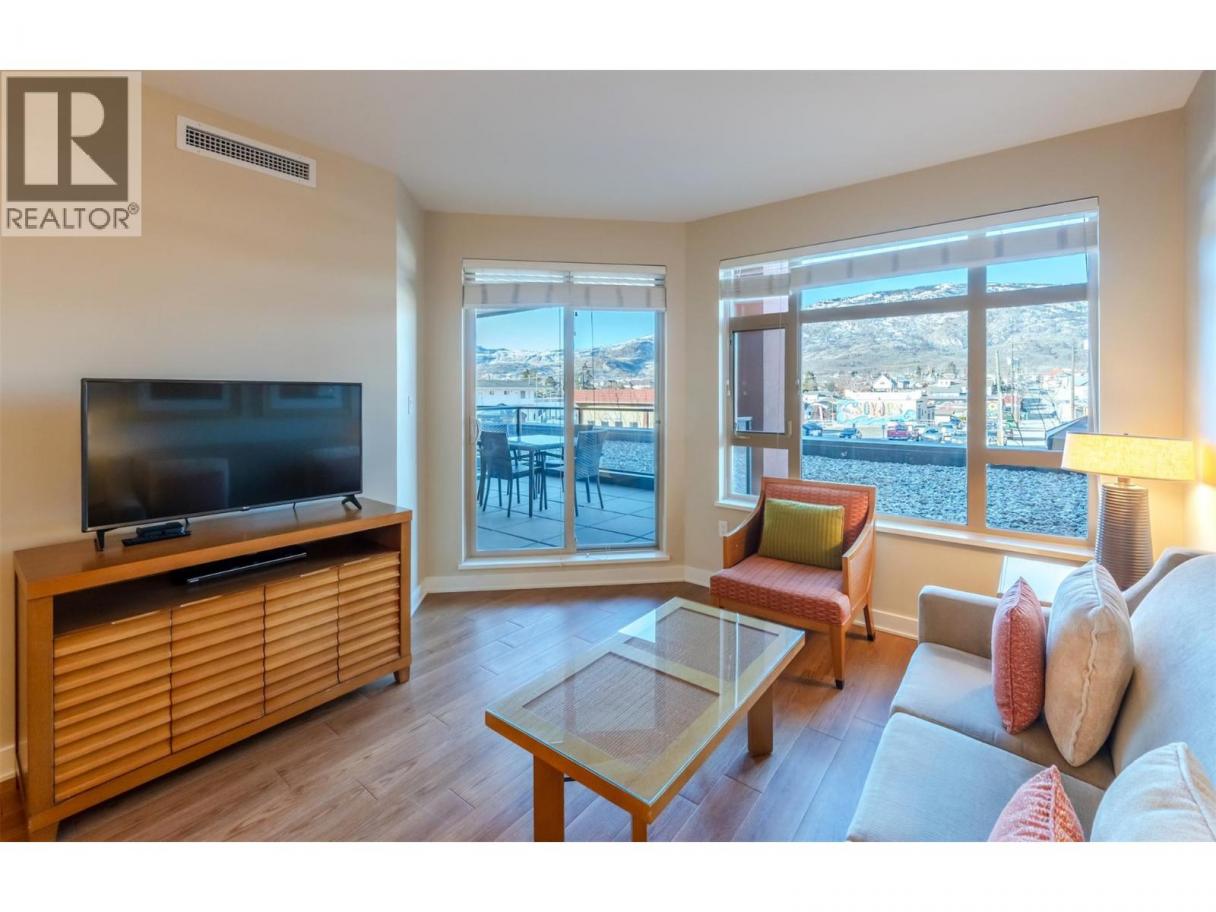Welcome to affordable vacation ownership in Canada's desert paradise! This 1/12th fractional interest allows stress-free, lock and leave vacation property ownership, with exclusive access four weeks per year, one in each season. On the quiet, west facing side of the resort with town and mountain views, this 600 square foot unit has loads of natural light, and a sliding door walk-out to your spacious, sheltered terrace ideal for alfresco dining and stunning sunset views. The well appointed kitchen overlooks your open concept living/dining area, ideal for entertaining. The spacious bedroom is luxuriously appointed with a king sized bed to ensure restful sleep, and the bathroom features a deep soaker tub/shower combo and generous vanity . Close proximity to elevator and stairs ensures quick access to the beach, pool deck, and secure, indoor parking. Watermark resort amenities include pool, hot tubs (one year round), gym, spa, and beautiful function rooms. Onsite dining options include 15 Park Bistro (with seasonal patio and grill), Boston Pizza, Backroads Brewery, ands Roberto's Gelato. Located just steps to all the vibrant shops, services and amazing dining options Osoyoos has to offer; world class wineries, dining, golf, skiing, watersports and cultural experiences are all in close proximity. Enrollment in professionally managed rental pool can offset ownership costs with rental income when not in use. Subject to GST. Sq ft per builder plans. Buyer to verify if important. (id:6769)