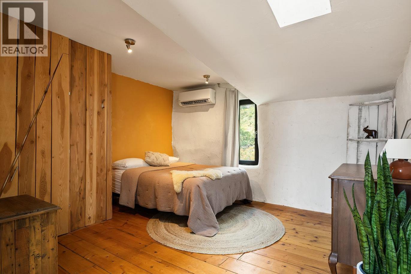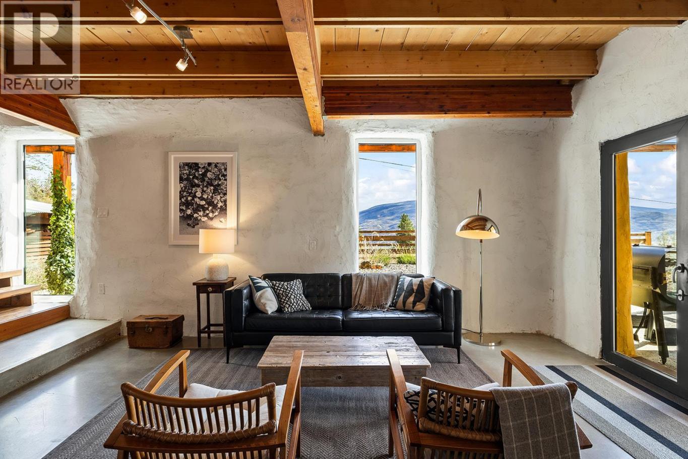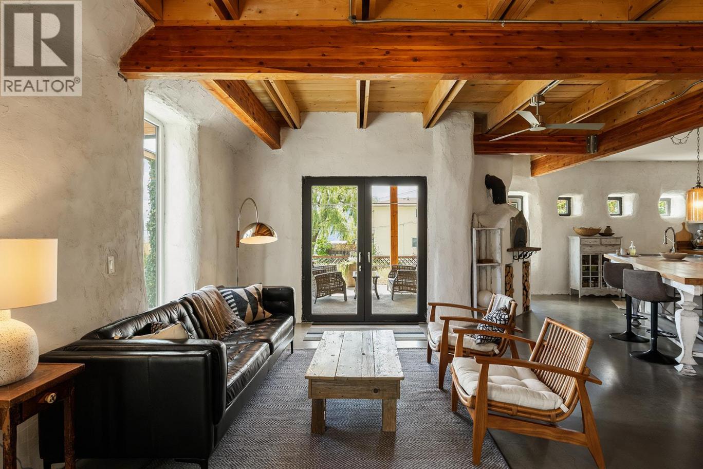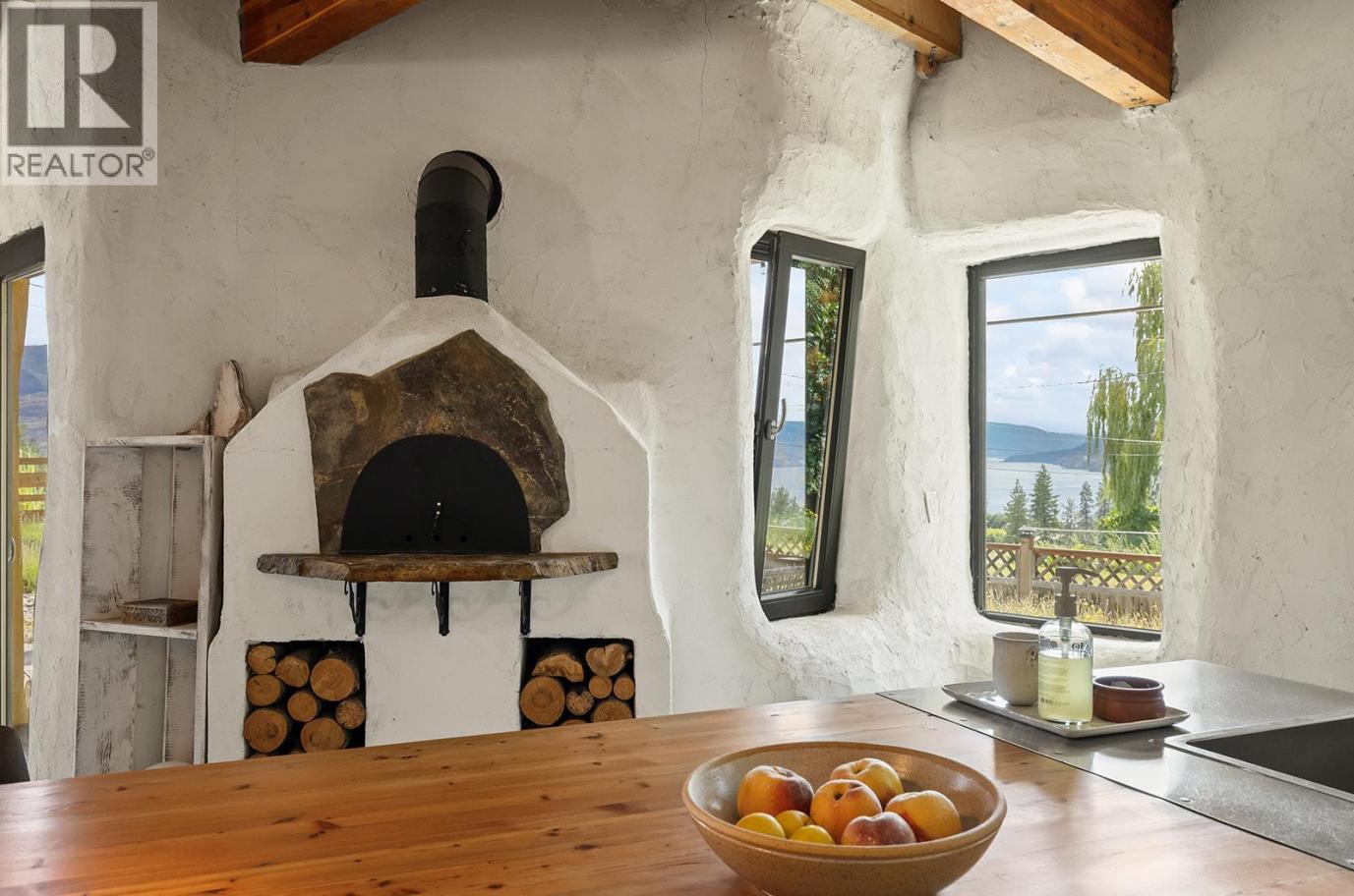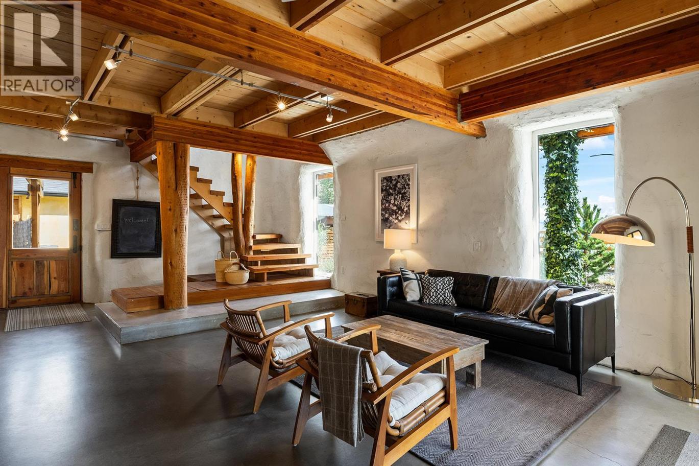 This one of a kind timber-frame straw-bale home blends architectural beauty with exceptional energy efficiency. Thoughtfully designed and extensively upgraded, this residence delivers remarkable heat retention and year round comfort with extremely low operating costs, averaging just three cords of wood annually for heating. The home features a Blaze King wood stove with long burn times, hydronic in floor heating on the main level, dual heat pumps for heating and cooling, and high performance tilt turn Innotech windows and doors. The ICF concrete slab, 18 inch straw bale walls, and reclaimed wood flooring naturally regulate temperature throughout the home, with upper level floors back beveled to allow warm air circulation. The kitchen showcases a wood fired Forno pizza oven, massive eat up island and apron sink, while the spa inspired main bathroom offers a 2025 tiled walk in shower, bidet, and in floor heat. Outdoors you will find a large covered patio, solar heated saltwater lap pool, veranda, newer fencing with custom metal caps, and a durable metal accented exterior. Major updates include a 2018 roof and eavestroughs, 2019 Duradeck upper deck, 2024 heat pump, and sewer brought onto the property with connection at the lot line. The property may support a future double garage with carriage house, buyer to verify. Built by the original owner with a passion for sustainable living, this is a rare opportunity to own a highly efficient and beautifully crafted home. (id:6769)