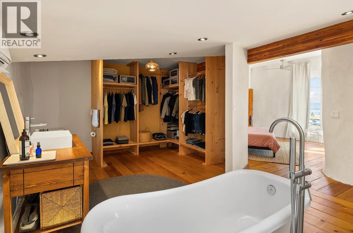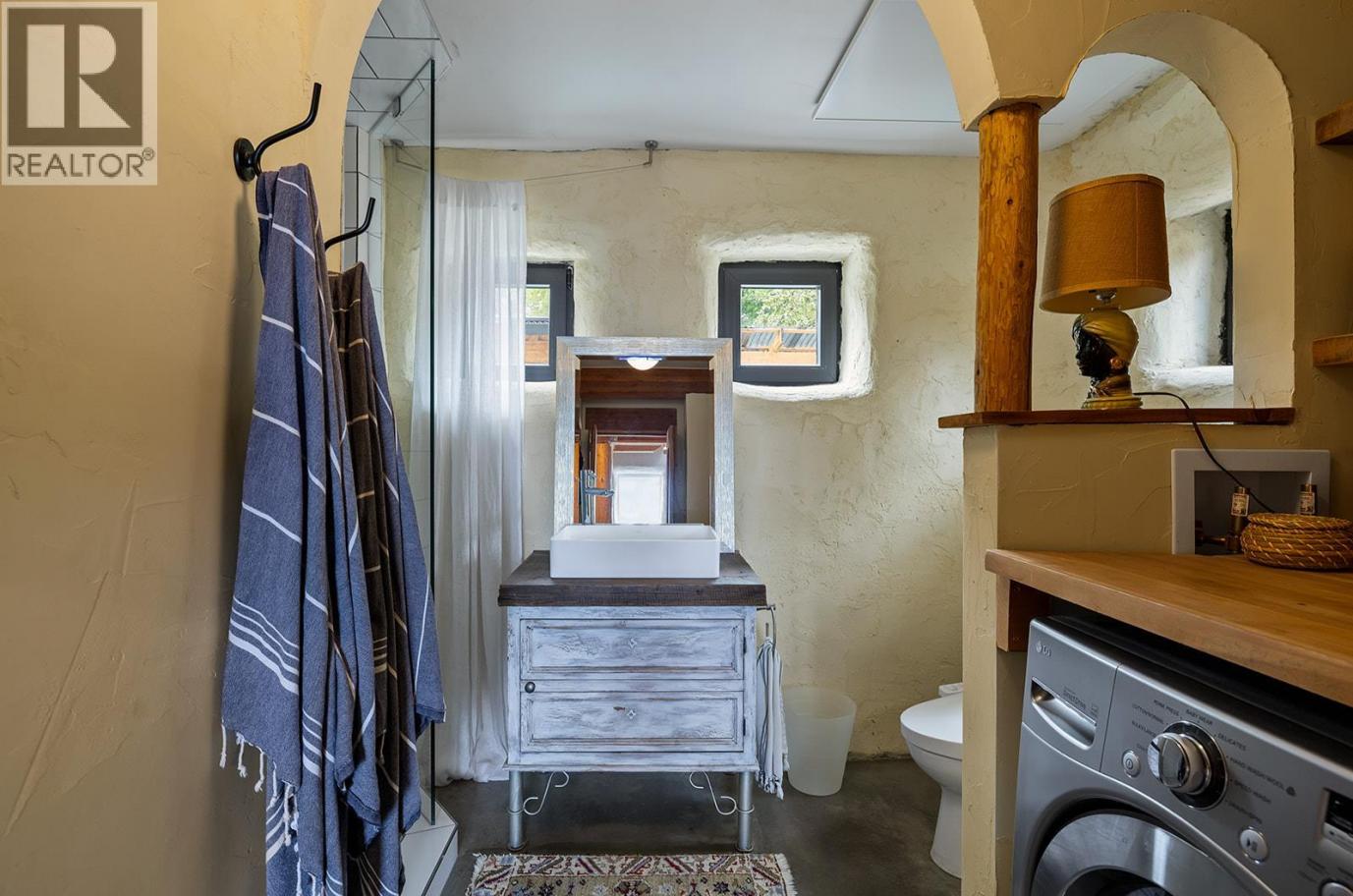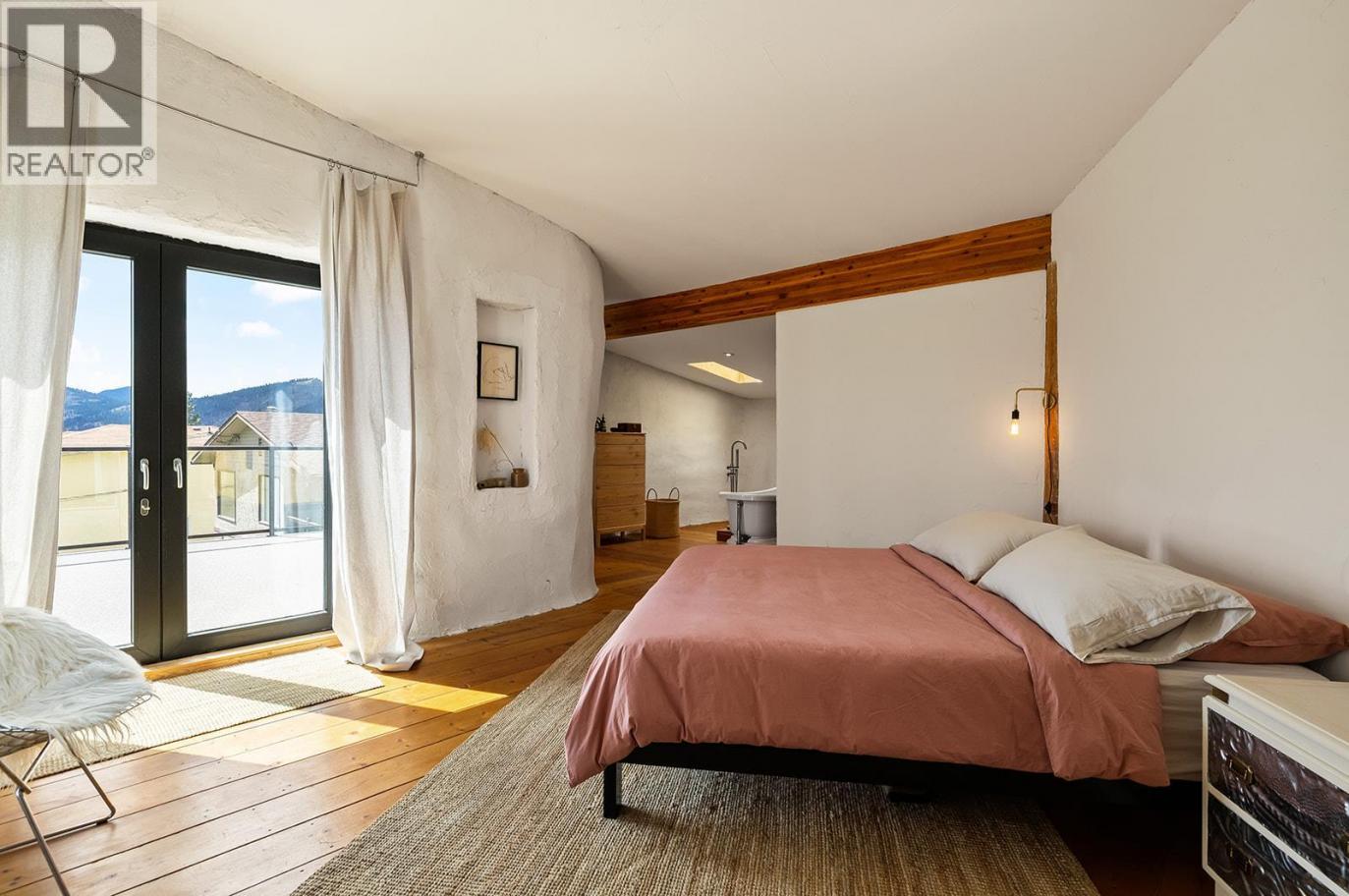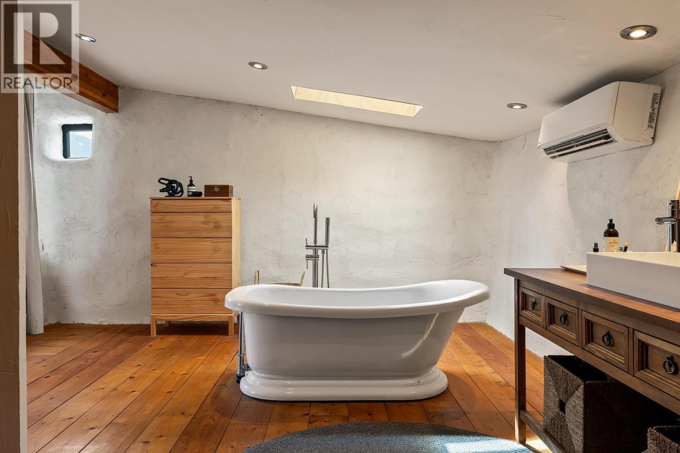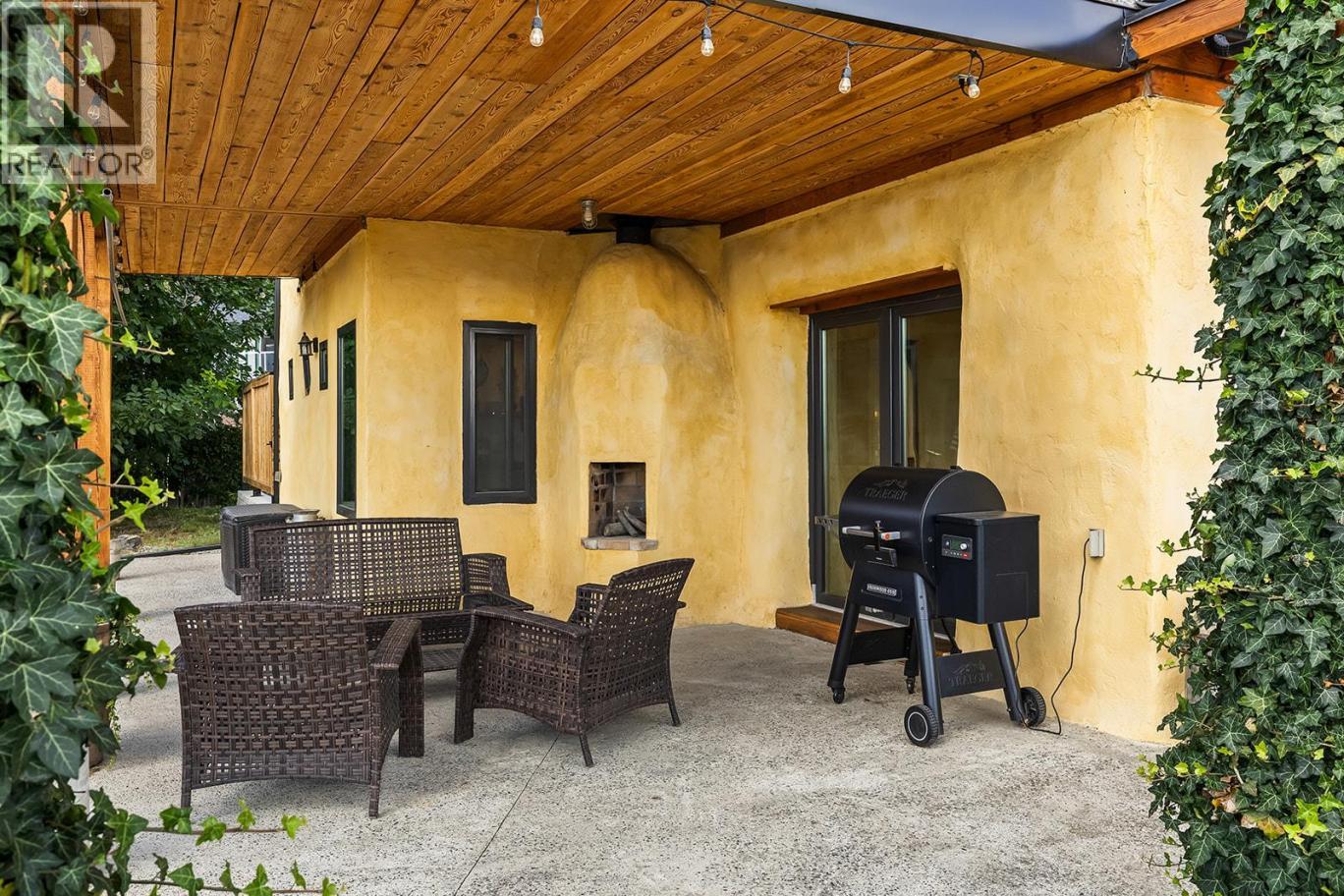 This one of a kind timber-frame straw-bale home blends architectural beauty with exceptional energy efficiency. Thoughtfully designed and extensively upgraded, this residence delivers remarkable heat retention and year round comfort with extremely low operating costs, averaging just three cords of wood annually for heating. The home features a Blaze King wood stove with long burn times, hydronic in floor heating on the main level, dual heat pumps for heating and cooling, and high performance tilt turn Innotech windows and doors. The ICF concrete slab, 18 inch straw bale walls, and reclaimed wood flooring naturally regulate temperature throughout the home, with upper level floors back beveled to allow warm air circulation. The kitchen showcases a wood fired Forno pizza oven, massive eat up island and apron sink, while the spa inspired main bathroom offers a 2025 tiled walk in shower, bidet, and in floor heat. Outdoors you will find a large covered patio, solar heated saltwater lap pool, veranda, newer fencing with custom metal caps, and a durable metal accented exterior. Major updates include a 2018 roof and eavestroughs, 2019 Duradeck upper deck, 2024 heat pump, and sewer brought onto the property with connection at the lot line. The property may support a future double garage with carriage house, buyer to verify. Built by the original owner with a passion for sustainable living, this is a rare opportunity to own a highly efficient and beautifully crafted home. (id:6769)
