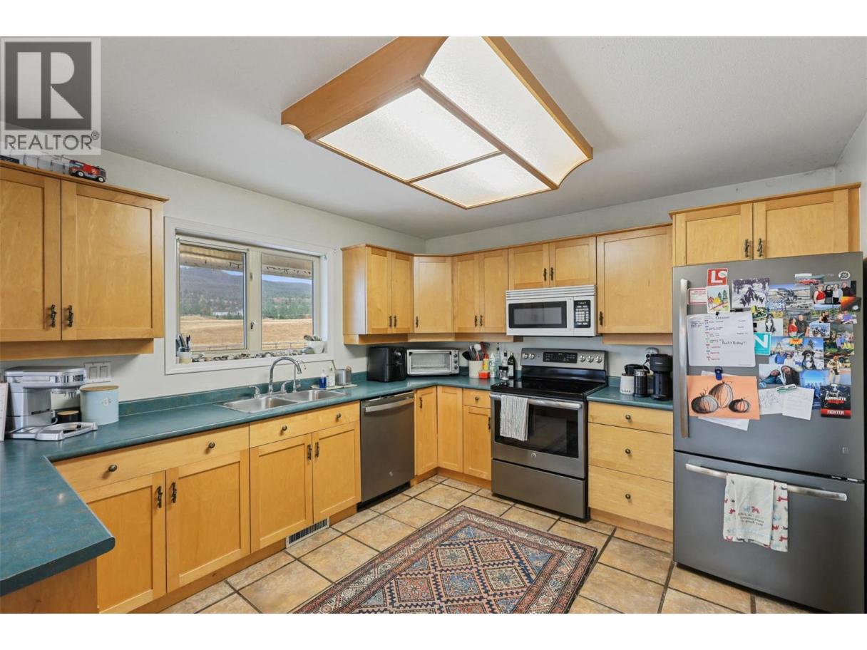 Watch stunning sunsets with panoramic views from this private 20-acre Cherry Creek property. 3 bedroom and 2 bathroom home, inlaw suite on lower level. Large kitchen, open to living and dining area. Tile flooring throughout for easy maintenance. The spacious primary bedroom easily accommodates a full king suite and has direct access to a 3-piece bath with a walk-in glass shower. A front deck spans the full length of the home, overlooking Thurman Pond—perfect for watching local wildlife. Ideal for horse enthusiasts, the property includes fenced pastures with auto-waterers, a private riding arena, barn, gazebo, outbuildings. Irrigation under a water license, and a well for domestic use. Fenced area for pets or small kids next to house! 15 minute drive to Costco! A great opportunity to own acreage with incredible views and peaceful country living just minutes from Kamloops! (id:6769)