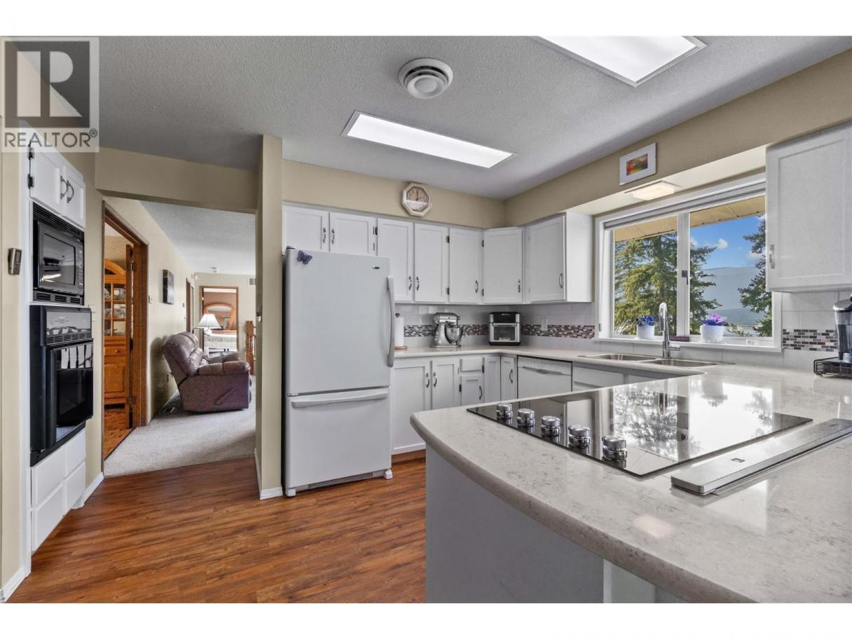 Lake & Mountain Views with Space for Everyone! Set on a private 0.36-acre lot at the end of a quiet no-thru road, this 3-bedroom, 3-bathroom home offers peace, space, and stunning views—ideal for families or those seeking flexibility. The main floor features a welcoming kitchen with a bright dining nook, a formal dining room, and a versatile den perfect for a home office or craft space. The spacious primary bedroom includes a full ensuite, walk-in closet, and its own balcony to take in breathtaking lake views and sunsets. A second bedroom and full bathroom complete the main level. Downstairs, the fully finished basement is perfect for extended family or guests, offering a living room, kitchen, bedroom, bathroom, rec room, and laundry with direct access to the heated double garage. With its layout, the lower level could easily be converted into a suite for added flexibility. Outside, enjoy a landscaped, mostly fenced yard with underground irrigation and ample parking—including room for an RV. Additional features include on-demand gas hot water, excellent storage, and an efficient, functional layout throughout. This home blends comfort, views, and versatility—ready for you to move in and enjoy. (id:6769)